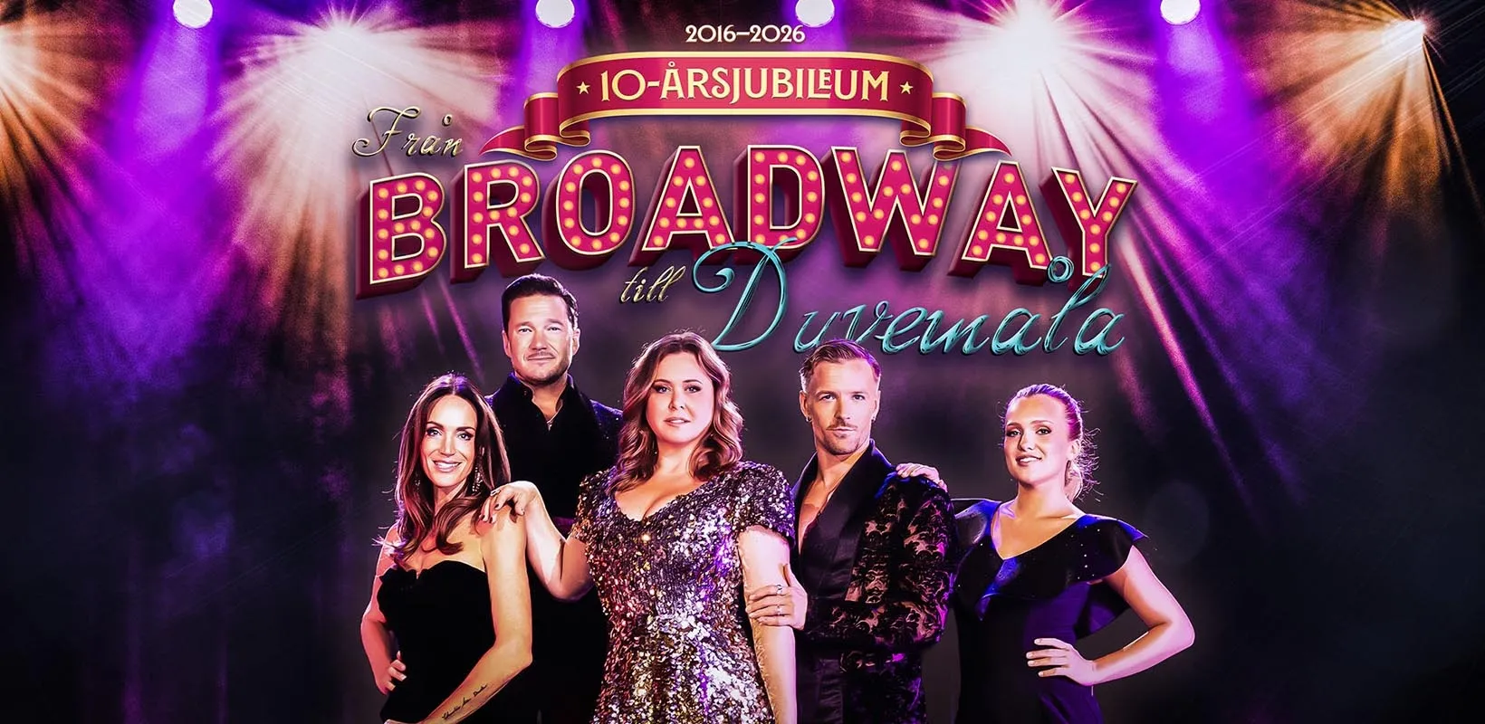 2026 är det äntligen dags för den älskade musikalkonserten Från Broadway till Duvemåla att åter ge sig ut på Sverigeturné. Denna säsong blir dessutom något alldeles extra då föreställningen firar 10 årsjubileum!