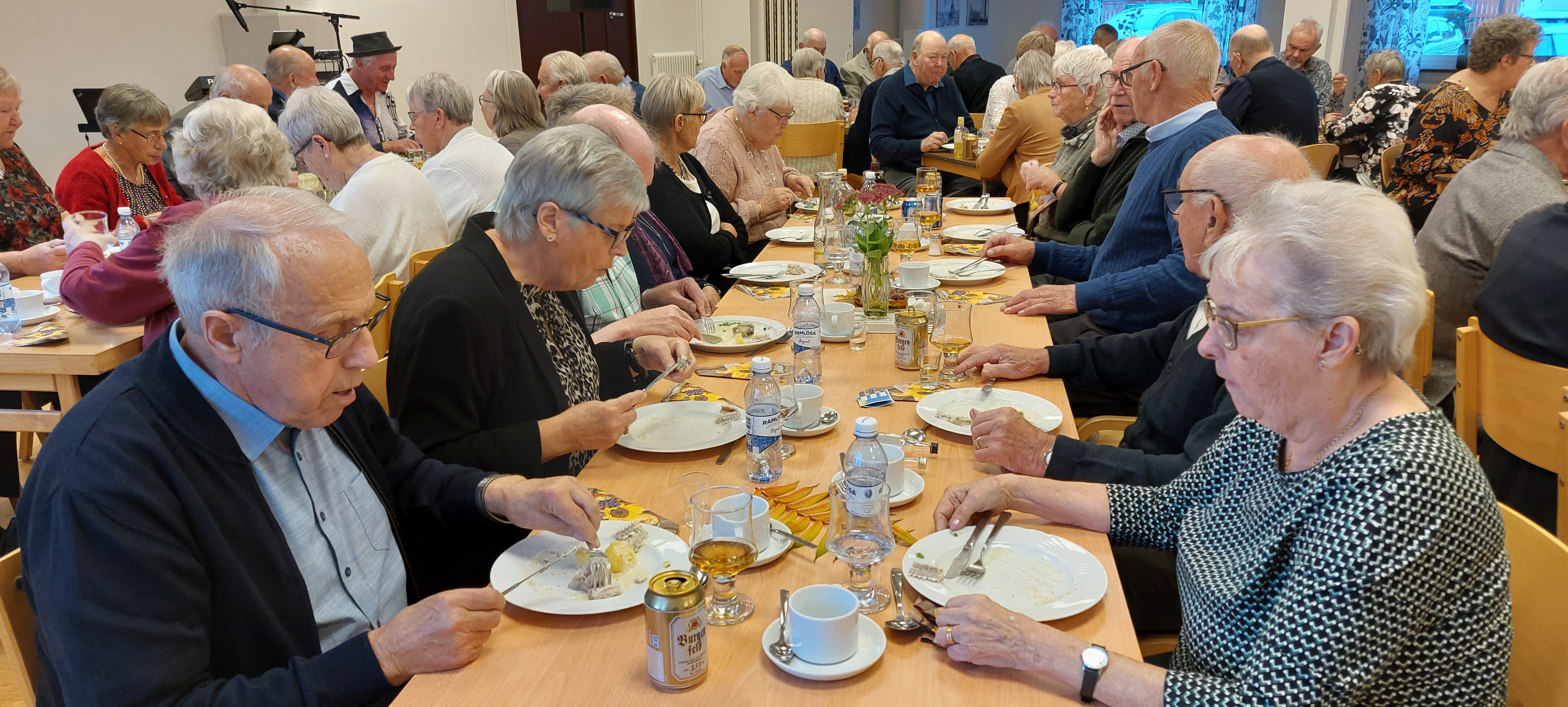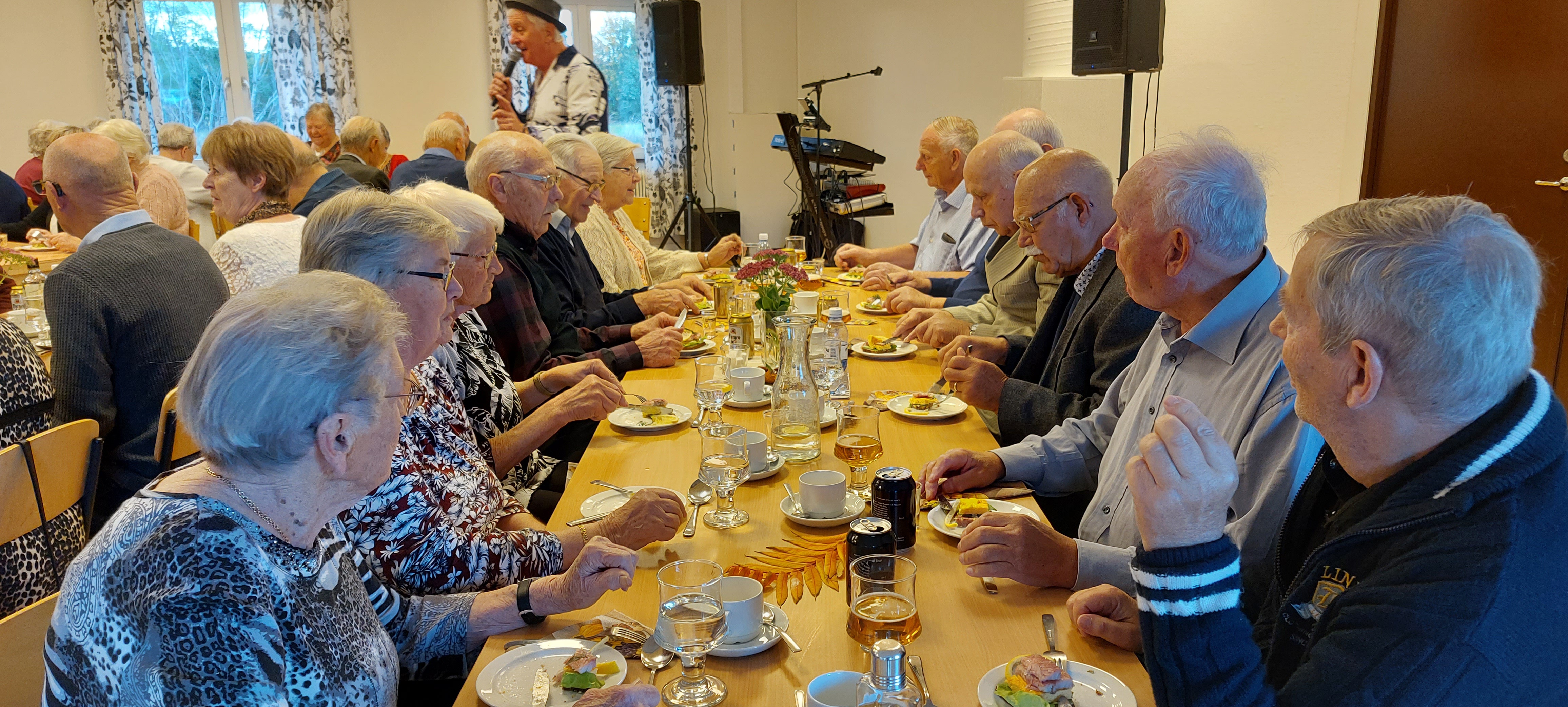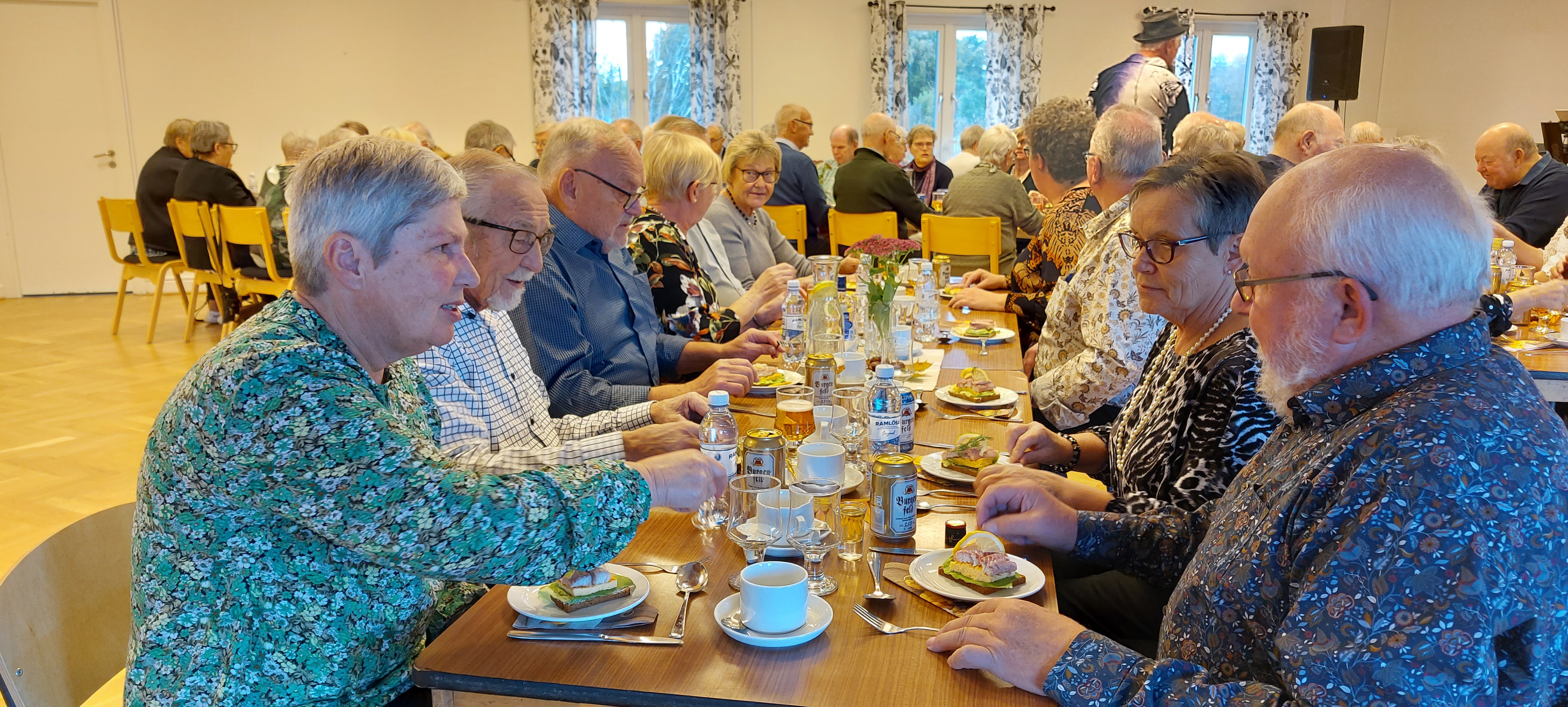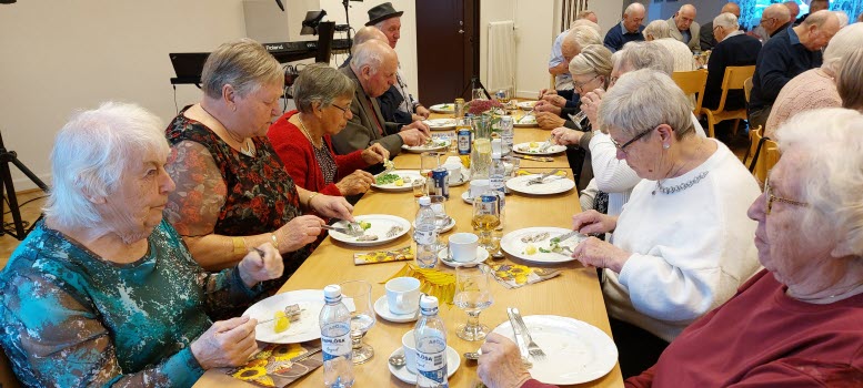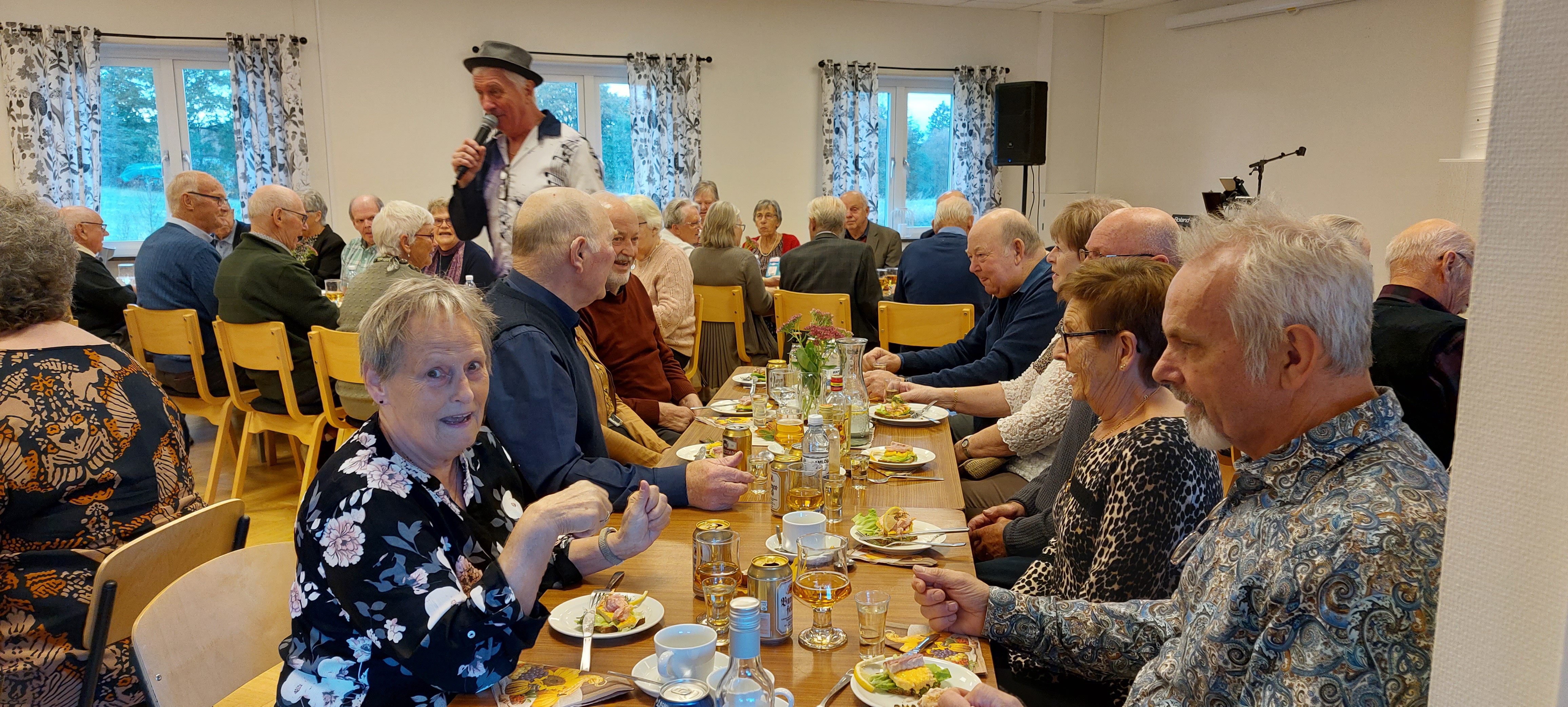 68 glada pensionärer kom till Kommungården, där det serverades rökt , kokt och stekt ål. Kaffe och äppelkaka. Lars Lindström sjöng och roade oss