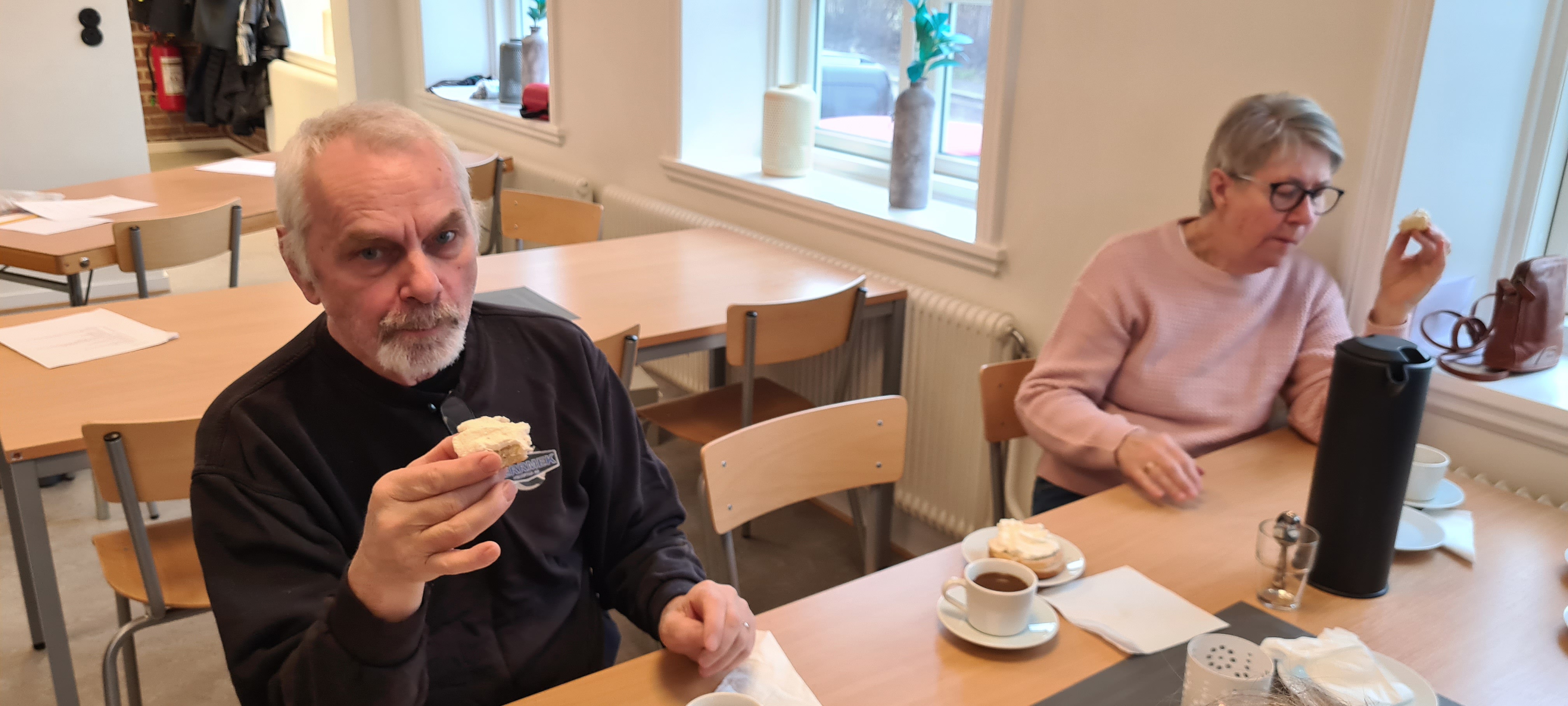 Sen åt vi fastlagsbullar, som damerna i styrelsen hade fixat ihop, som spisades med behag.