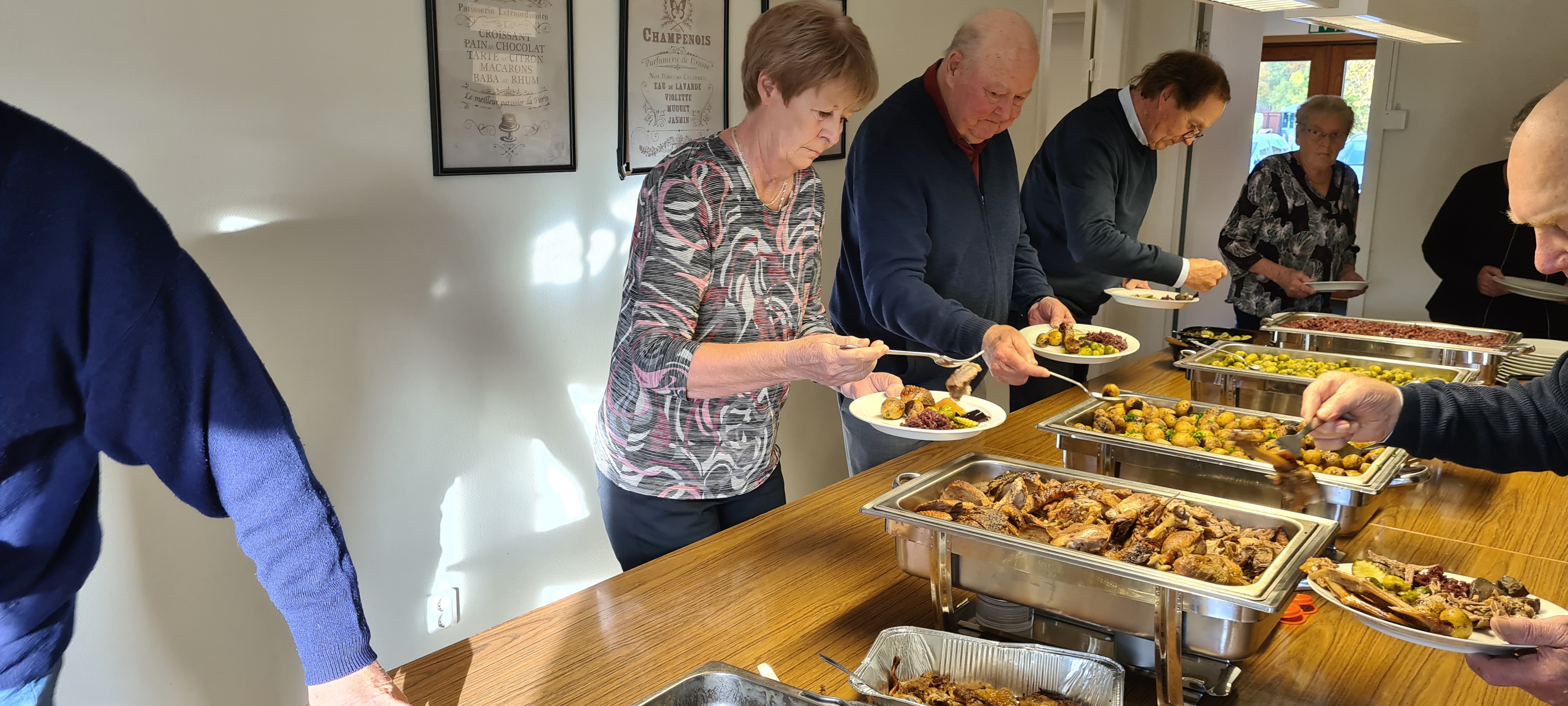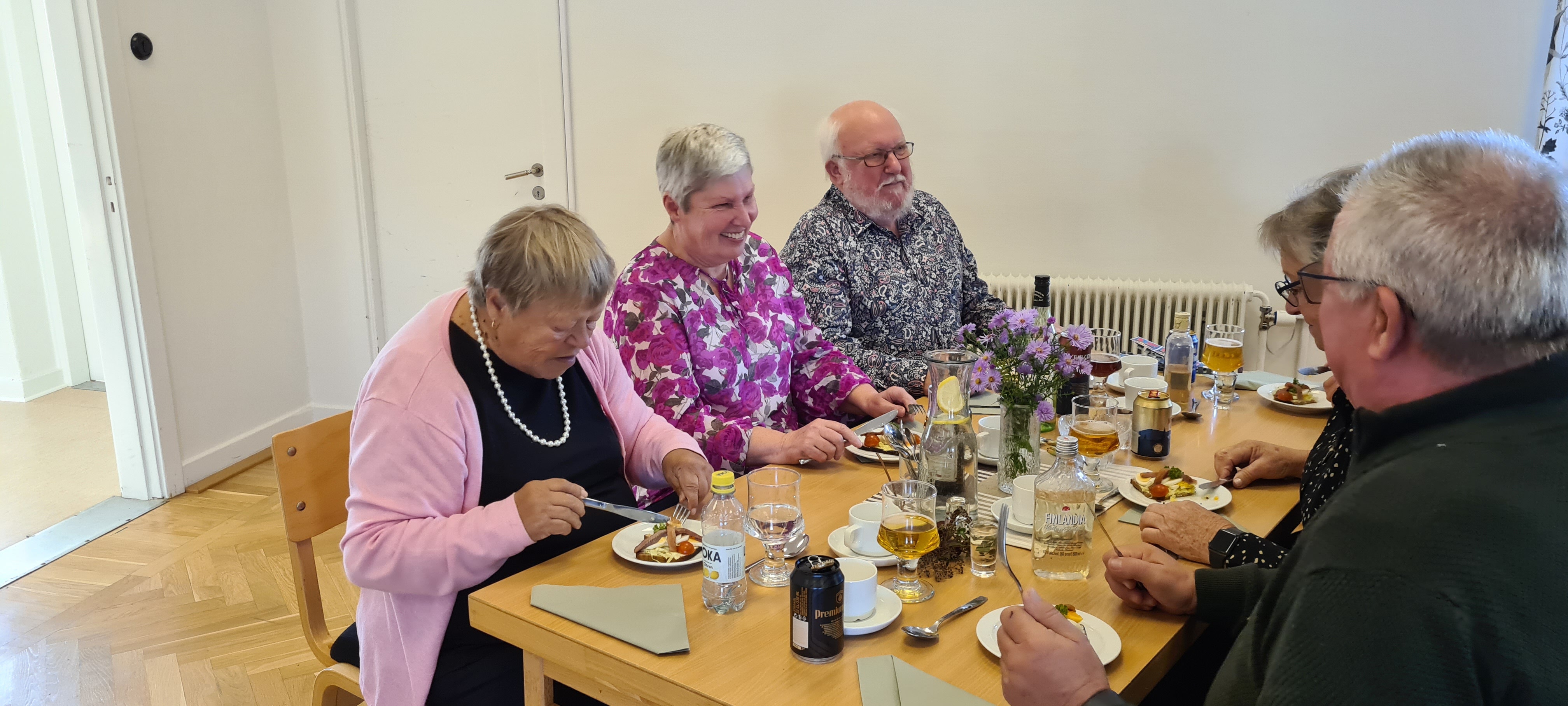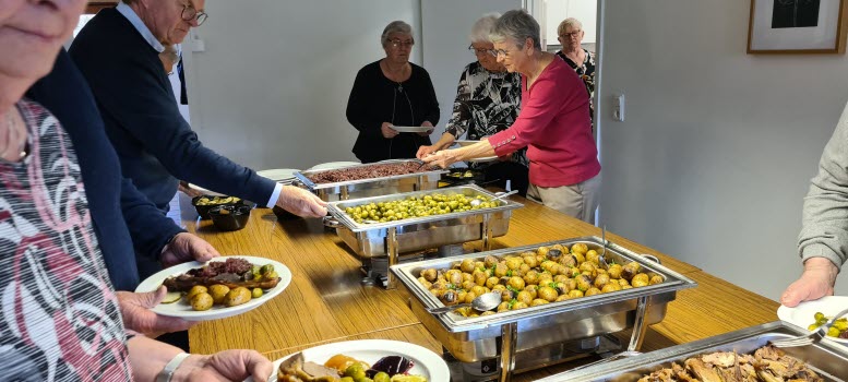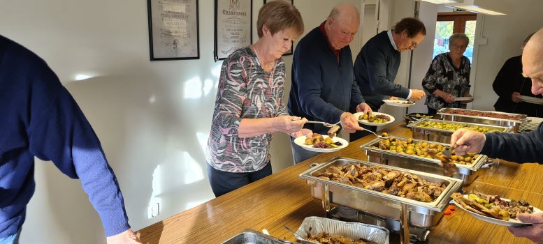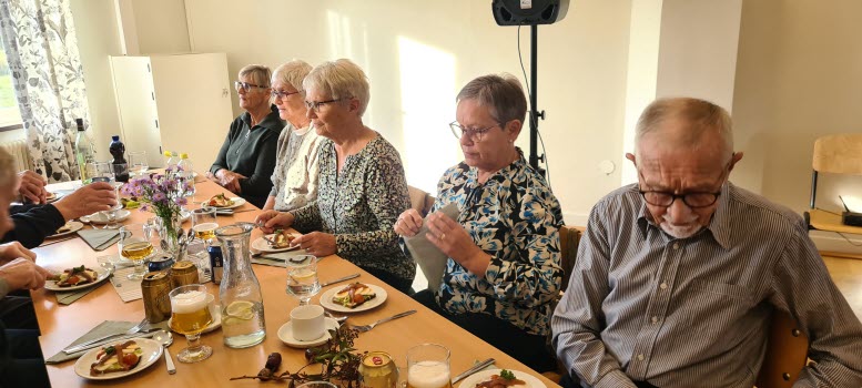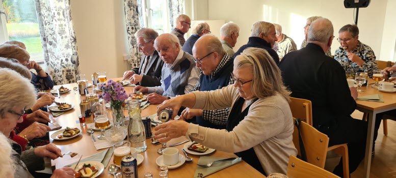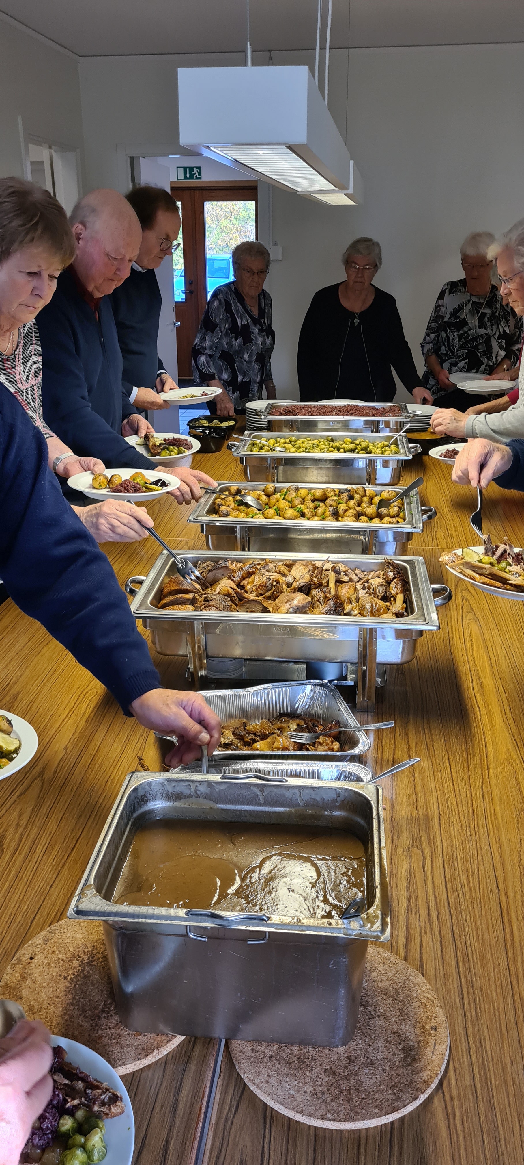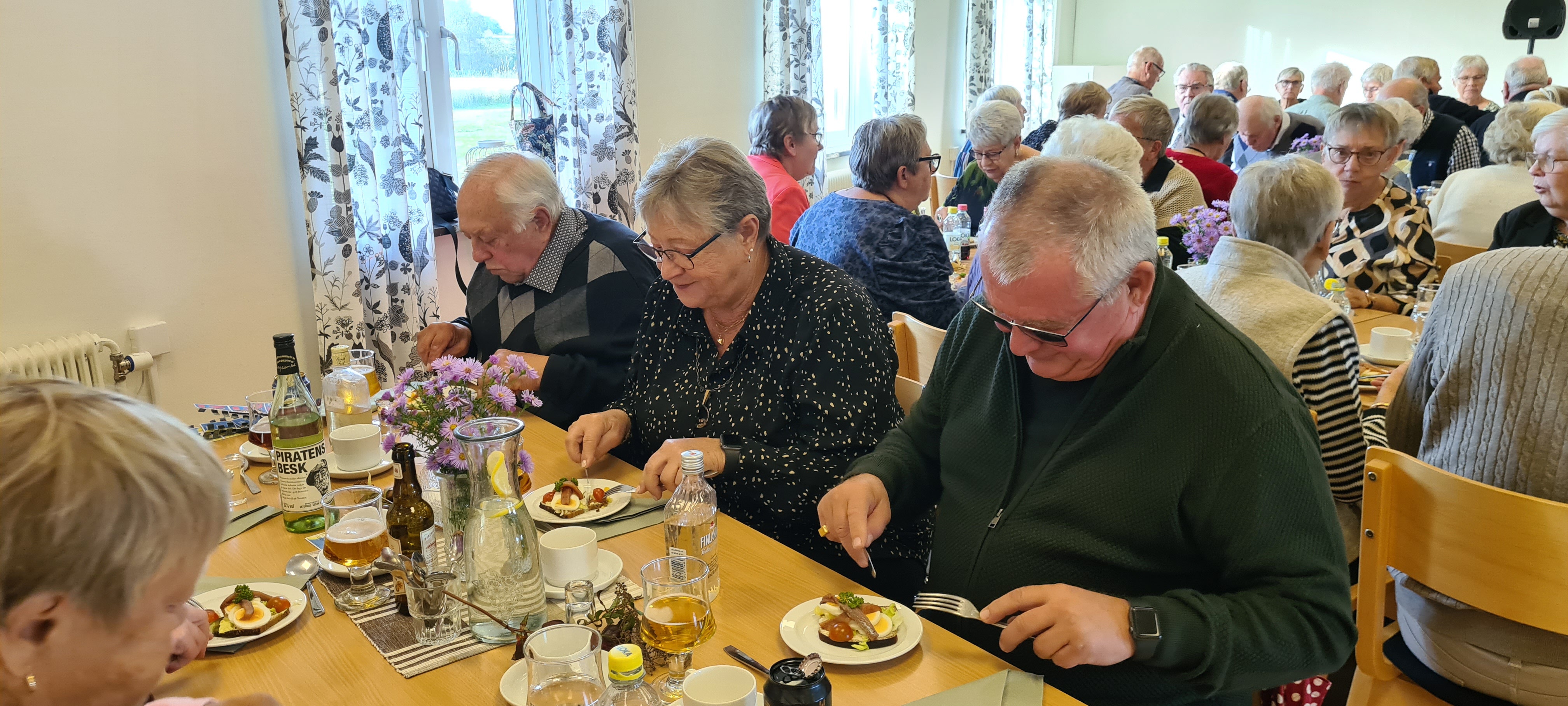 Cirka 60 medlemmar avnjöt till förrätt sillamacka, tillagad av styrelsens damer. Varmrätten var gås, levererad av Rönås Byakrog. Mycket vällagat och smakrik, alla blev mätta.
