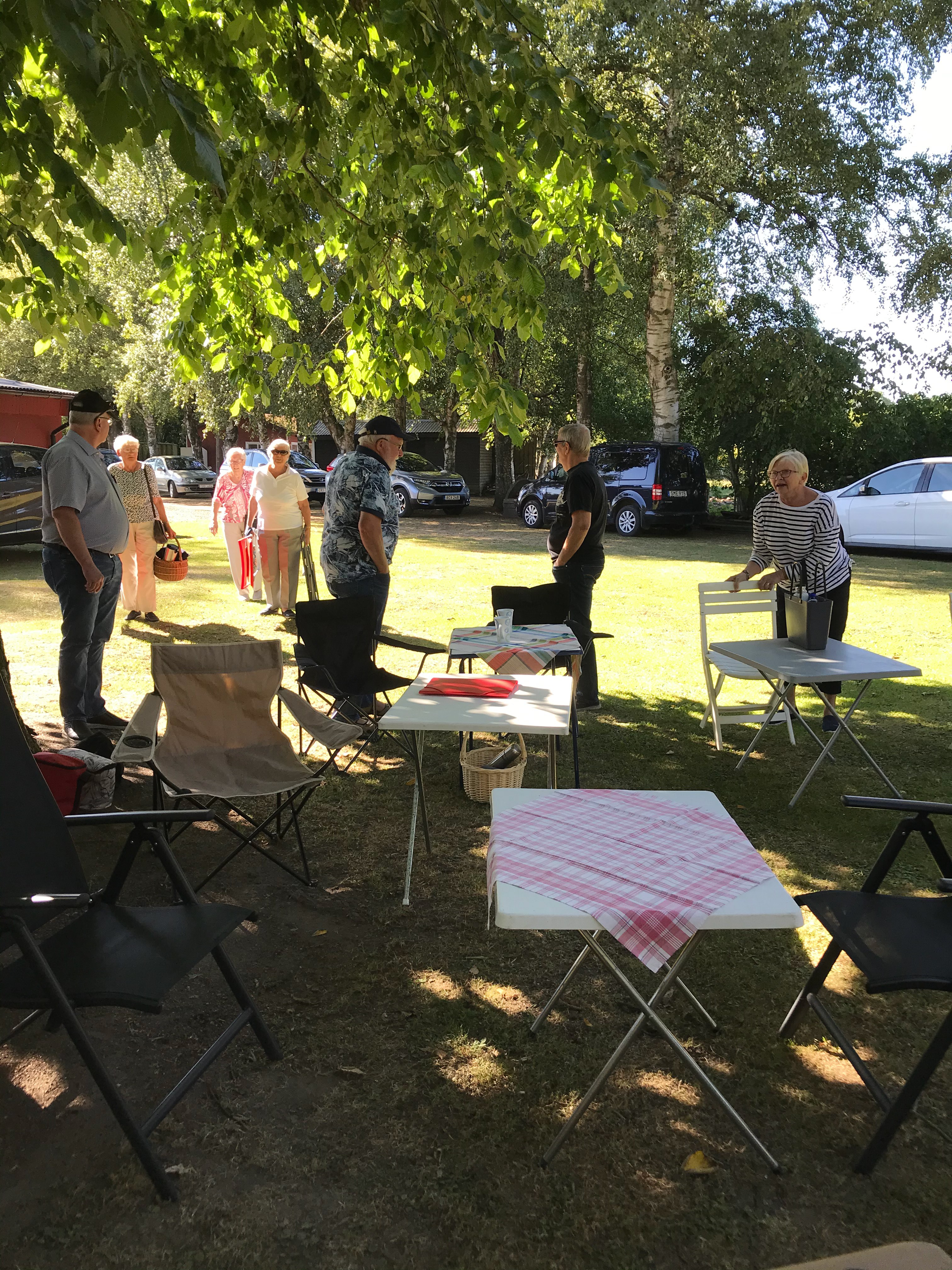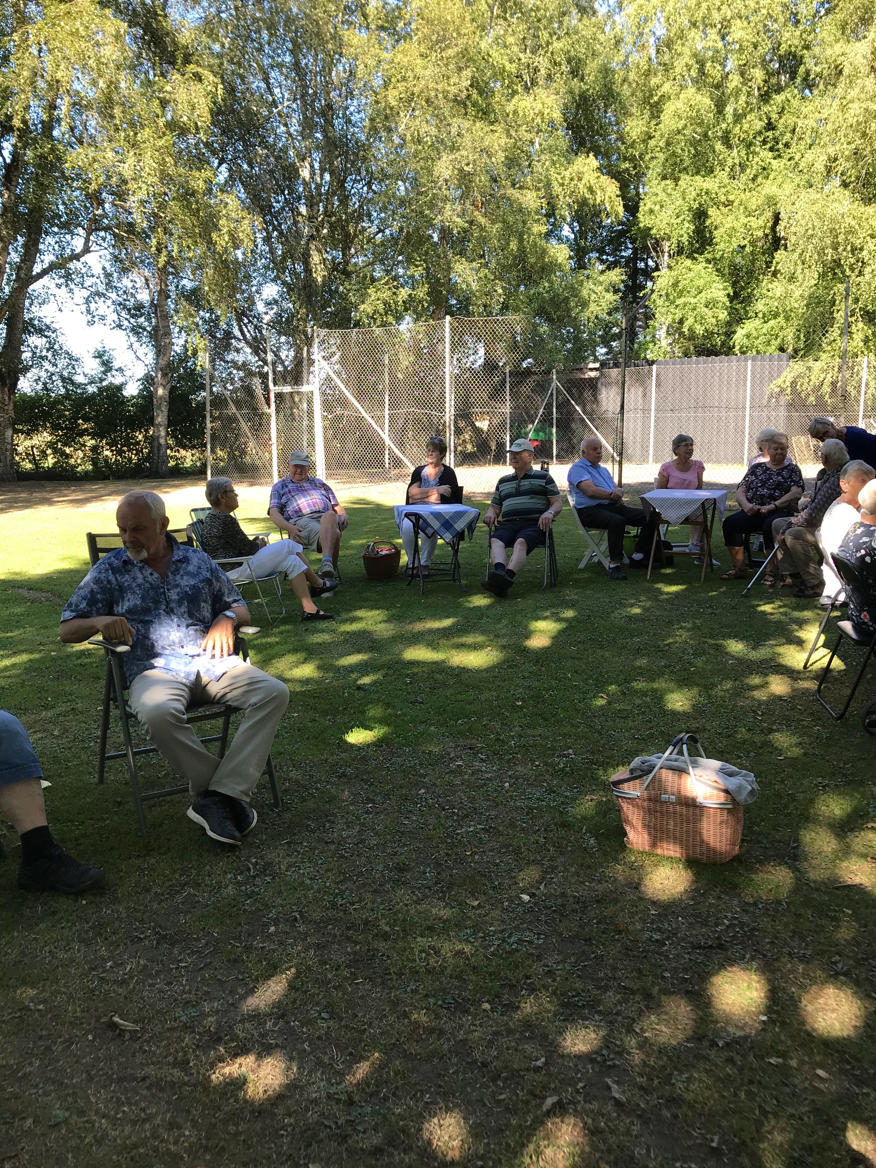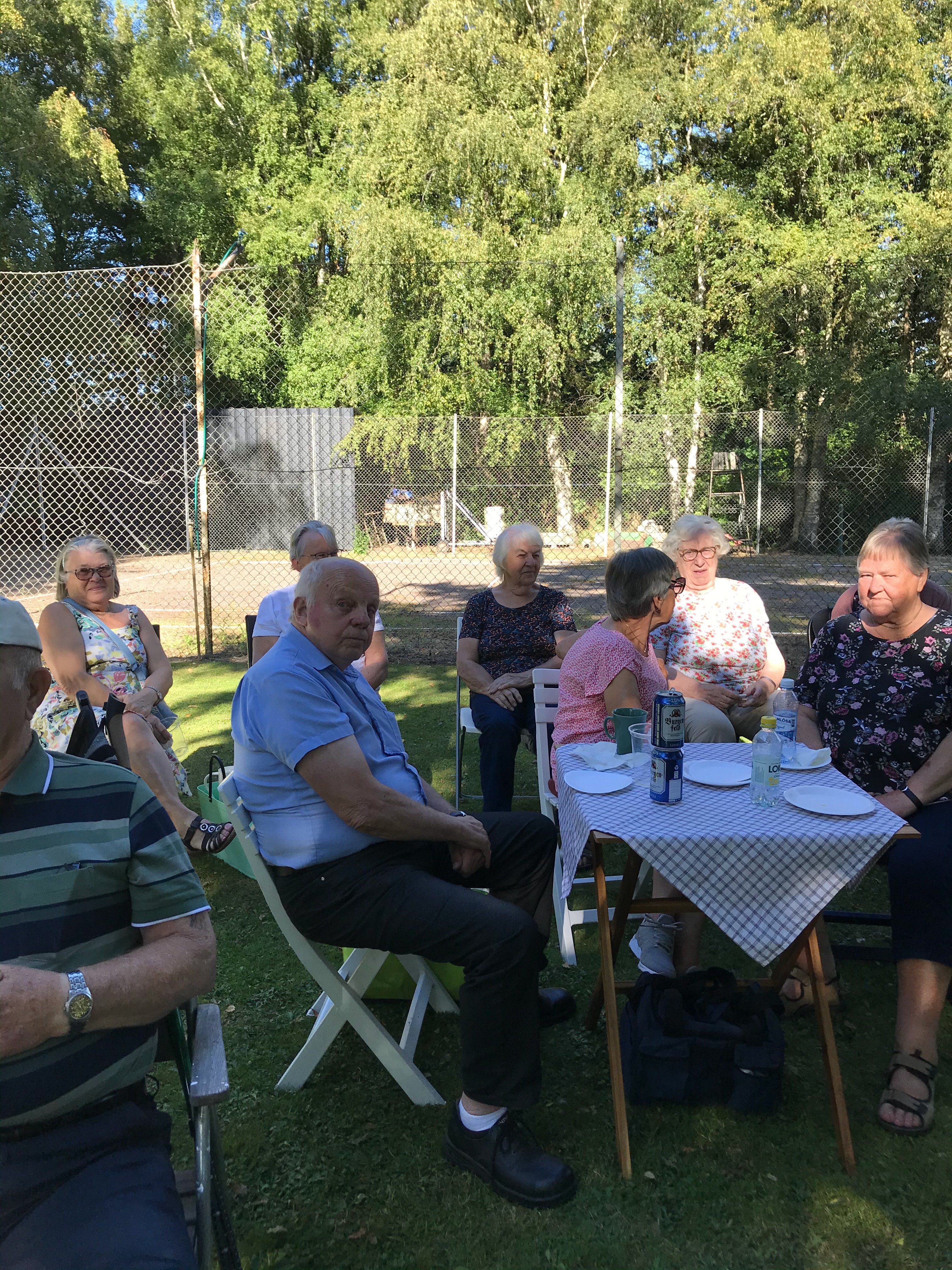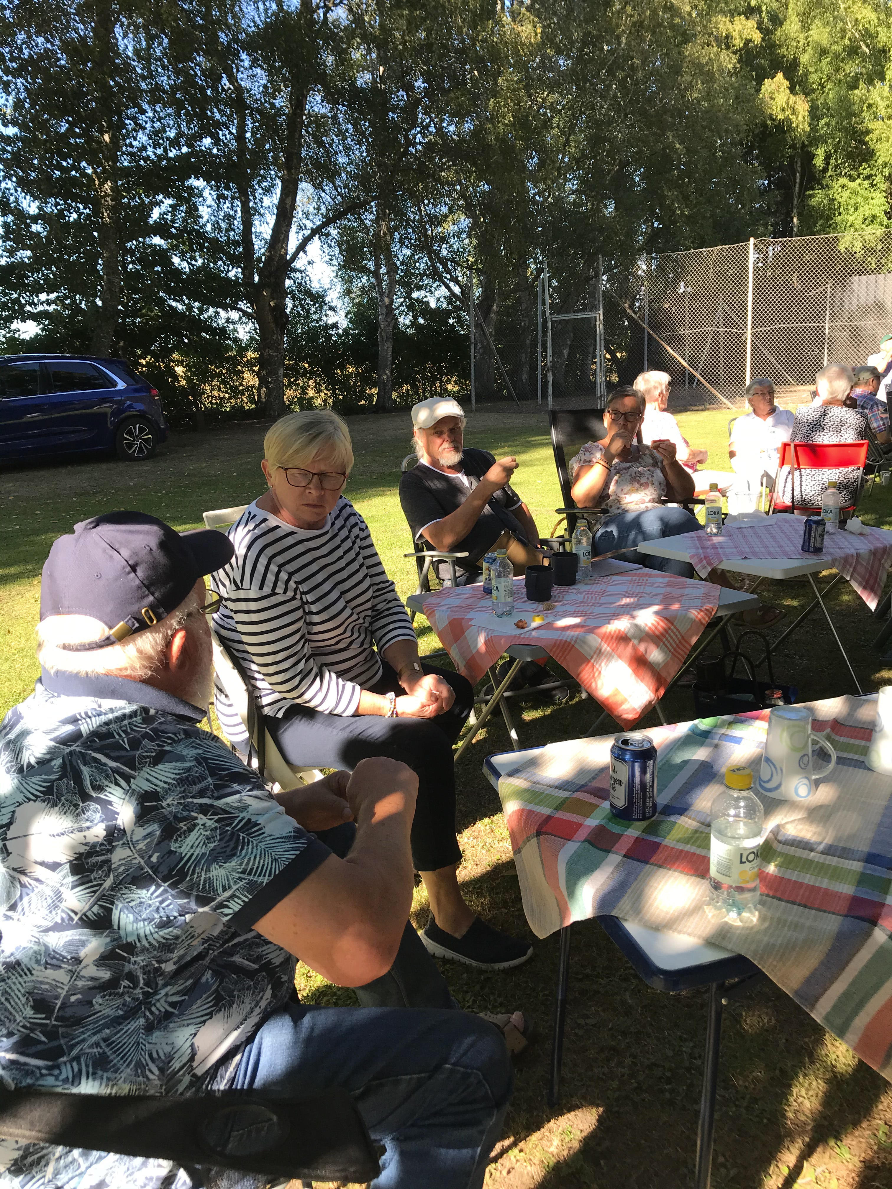 Ett 50-tal medlemmar deltog .Månadsmötet hölls i skuggan på Äsperöds idrottsplats Föreningen bjöd på grillad korv. Tipsrunda med kluriga frågor.