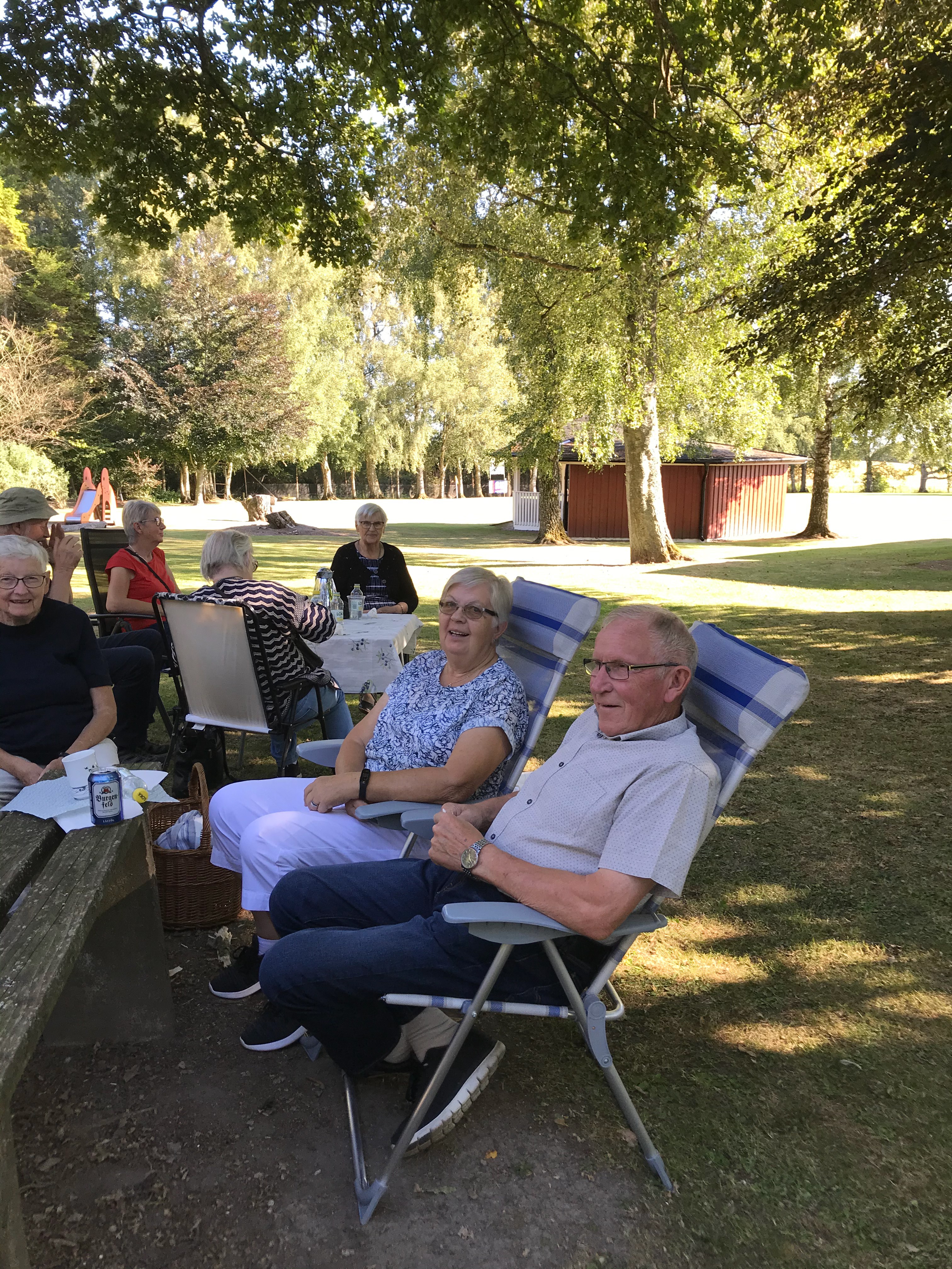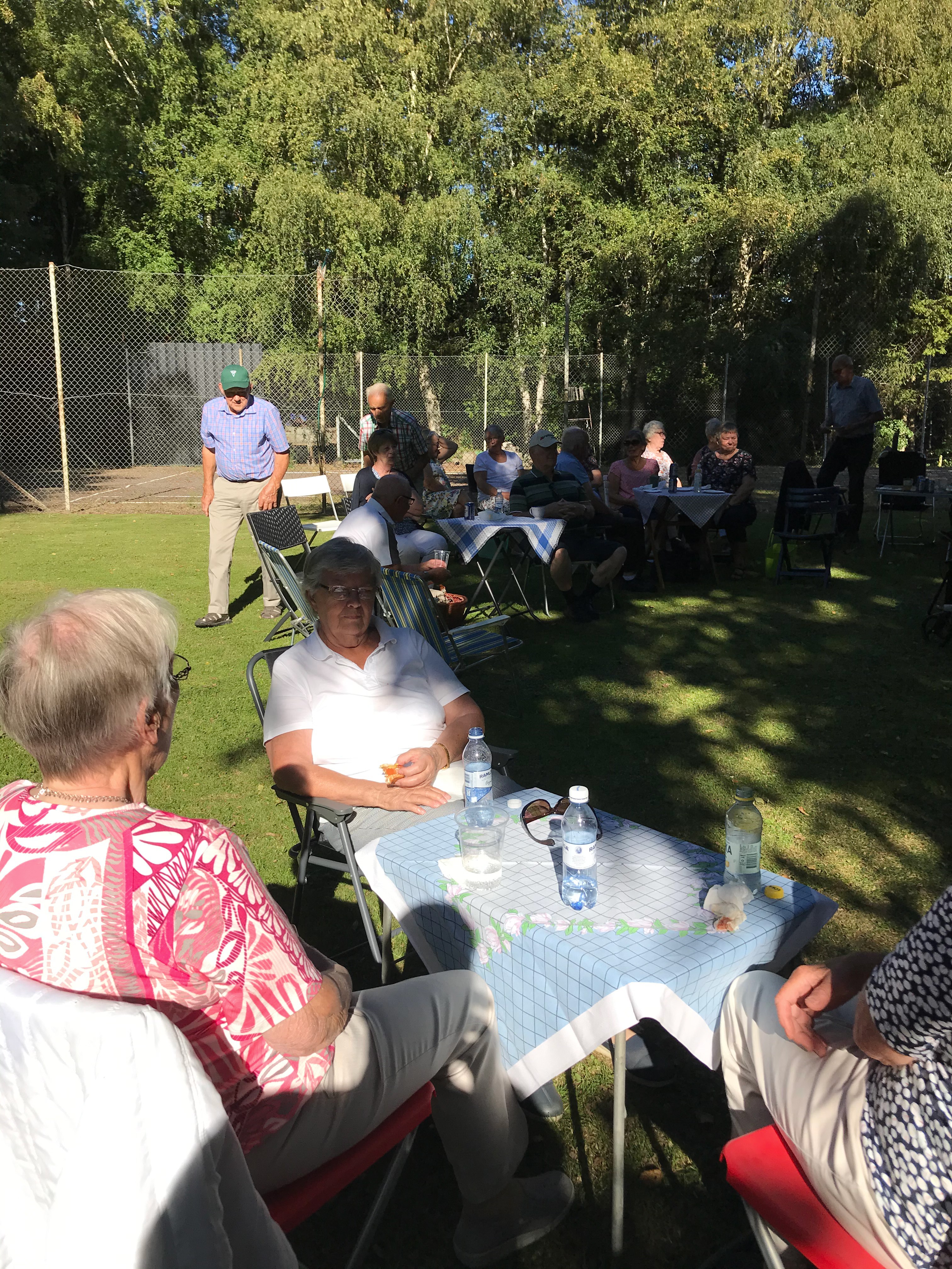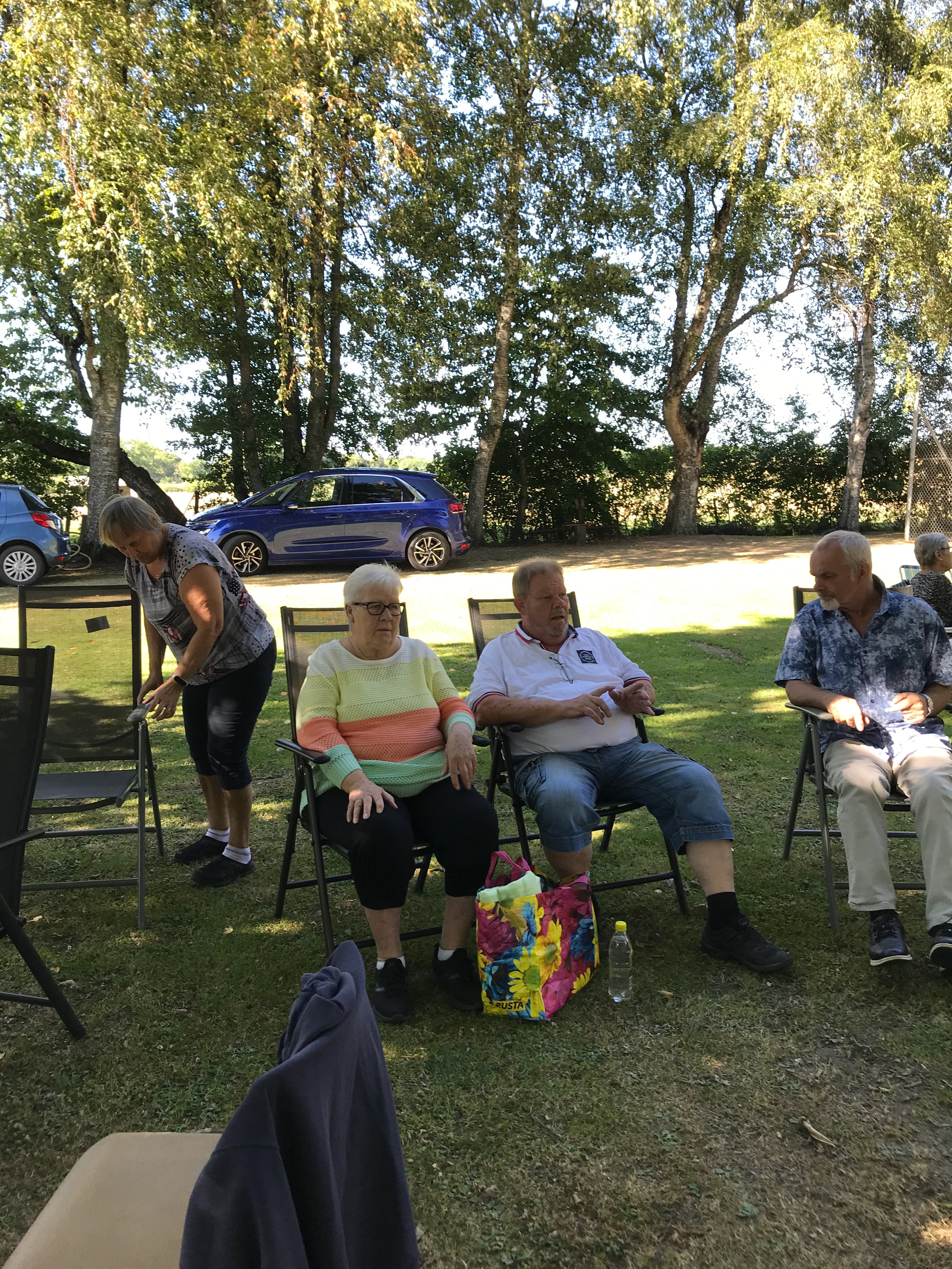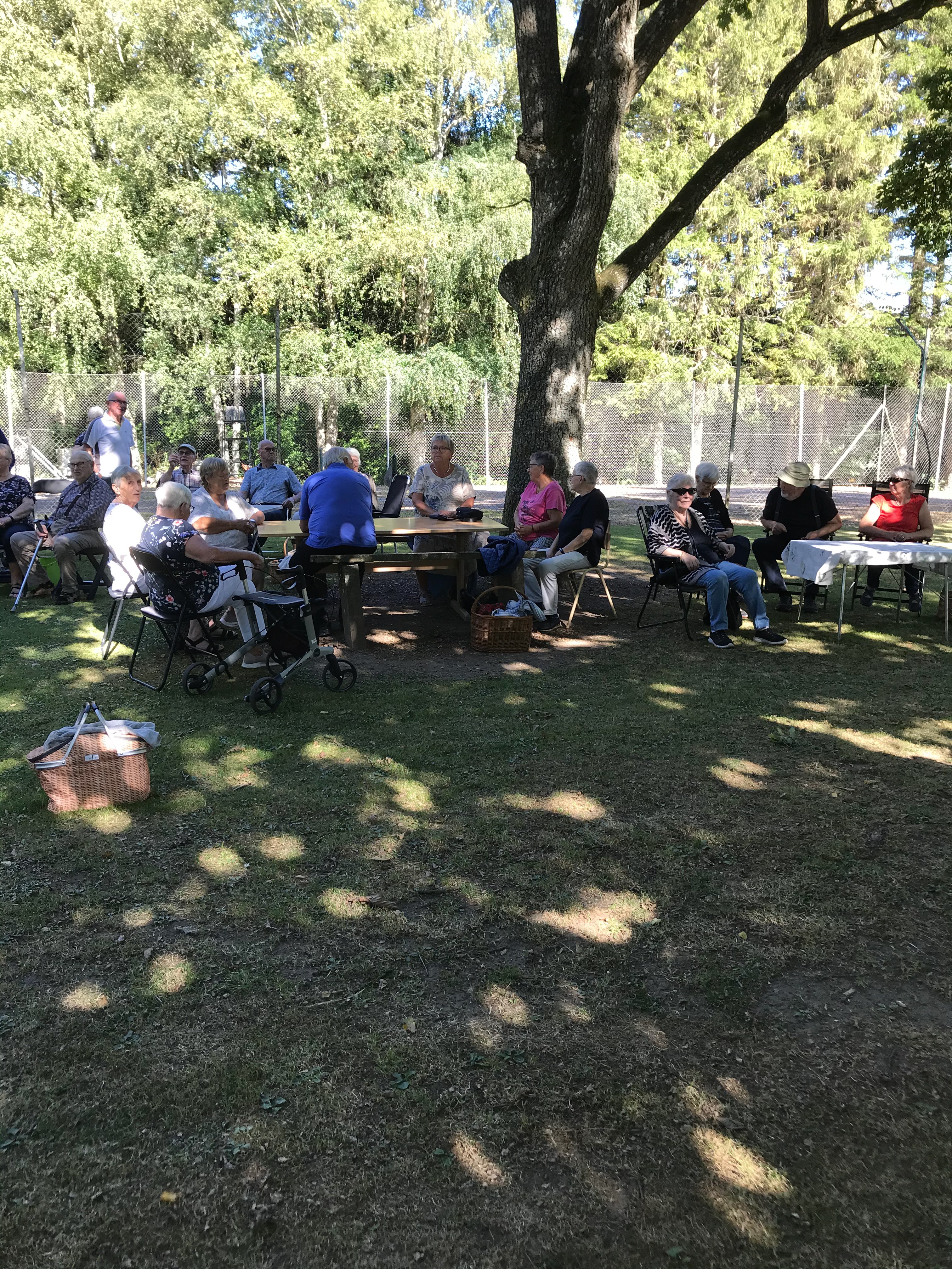 Ett 50-tal medlemmar deltog .Månadsmötet hölls i skuggan på Äsperöds idrottsplats Föreningen bjöd på grillad korv. Tipsrunda med kluriga frågor.