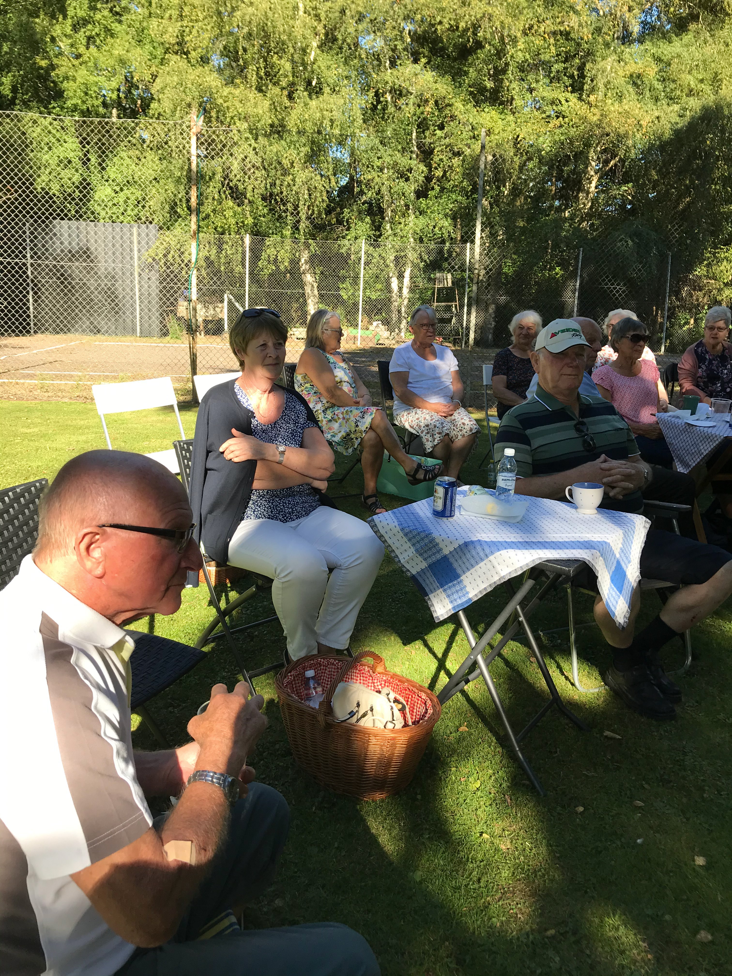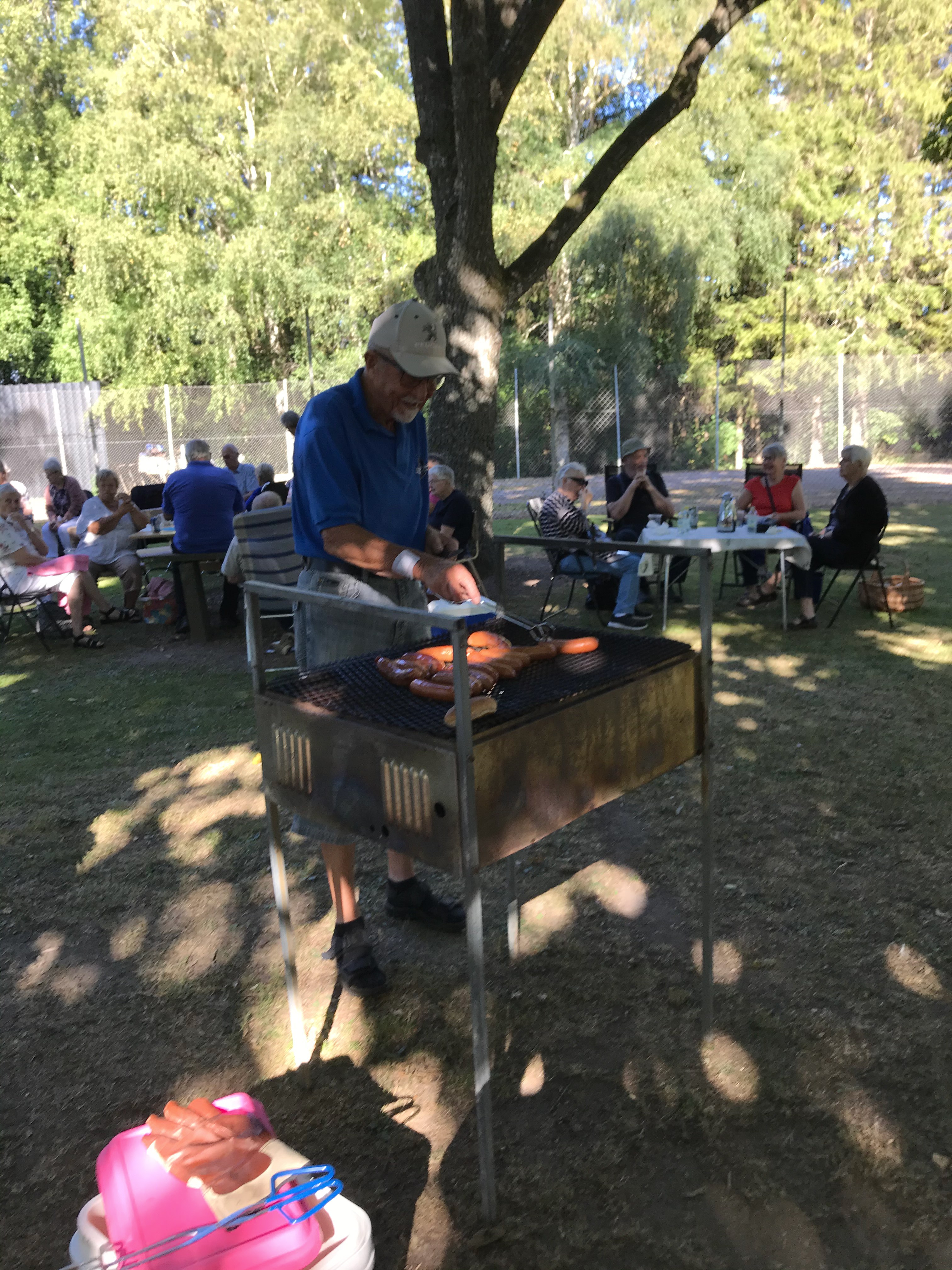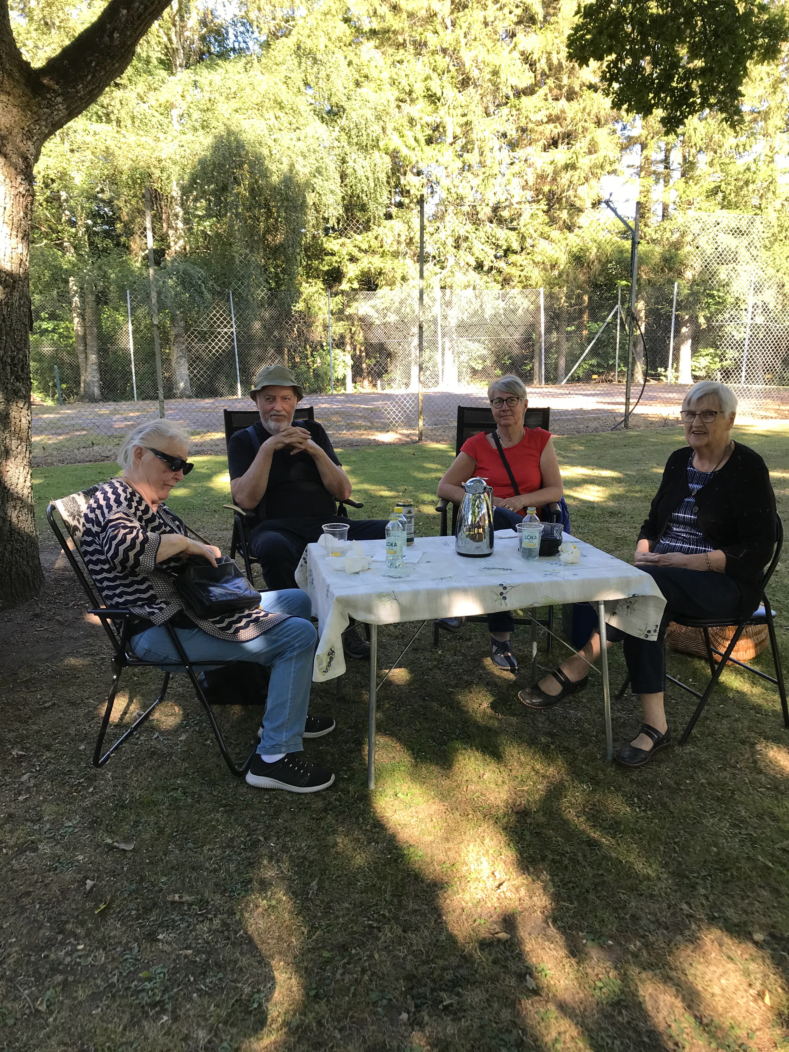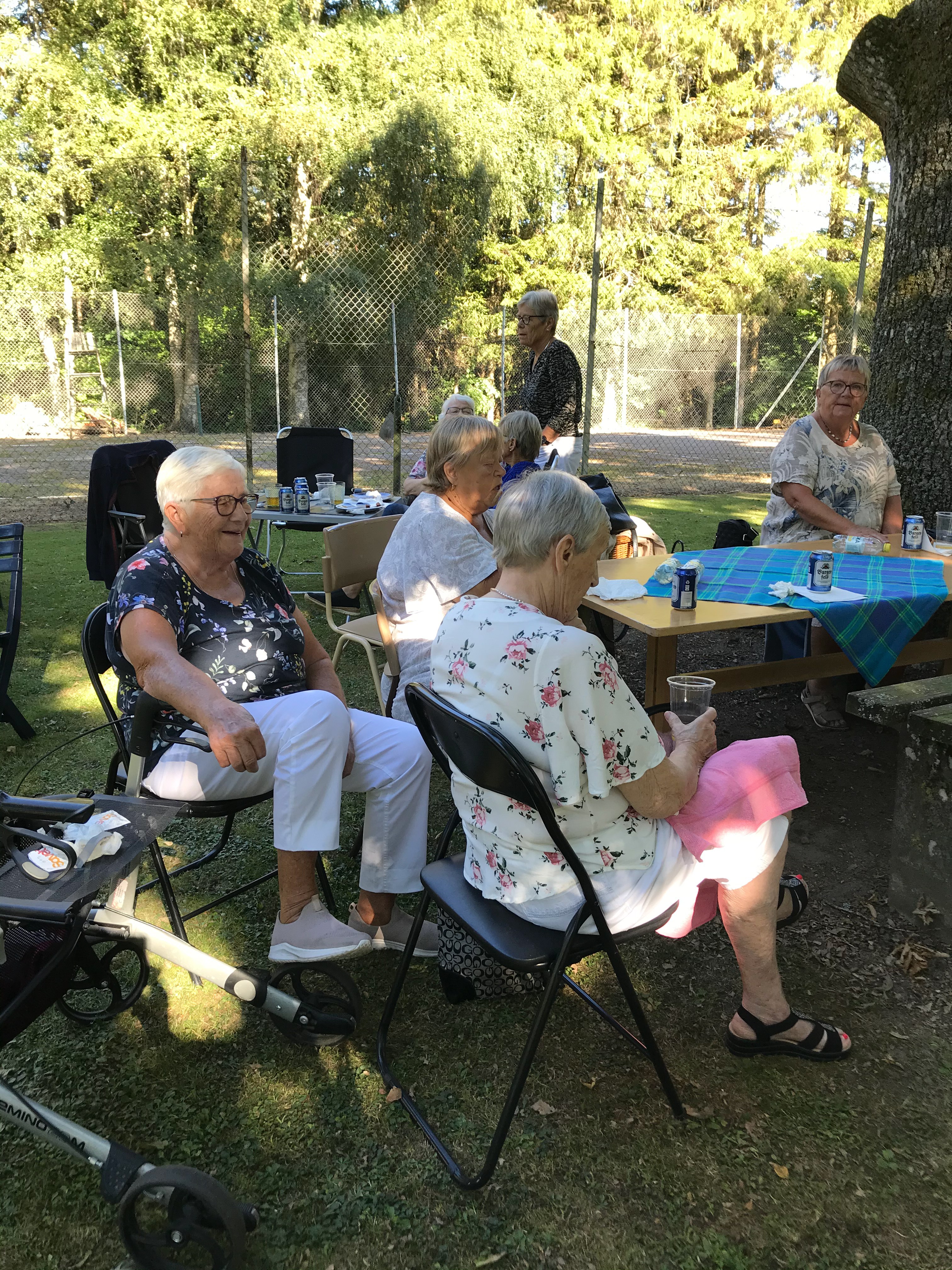 Ett 50-tal medlemmar deltog .Månadsmötet hölls i skuggan på Äsperöds idrottsplats Föreningen bjöd på grillad korv. Tipsrunda med kluriga frågor.