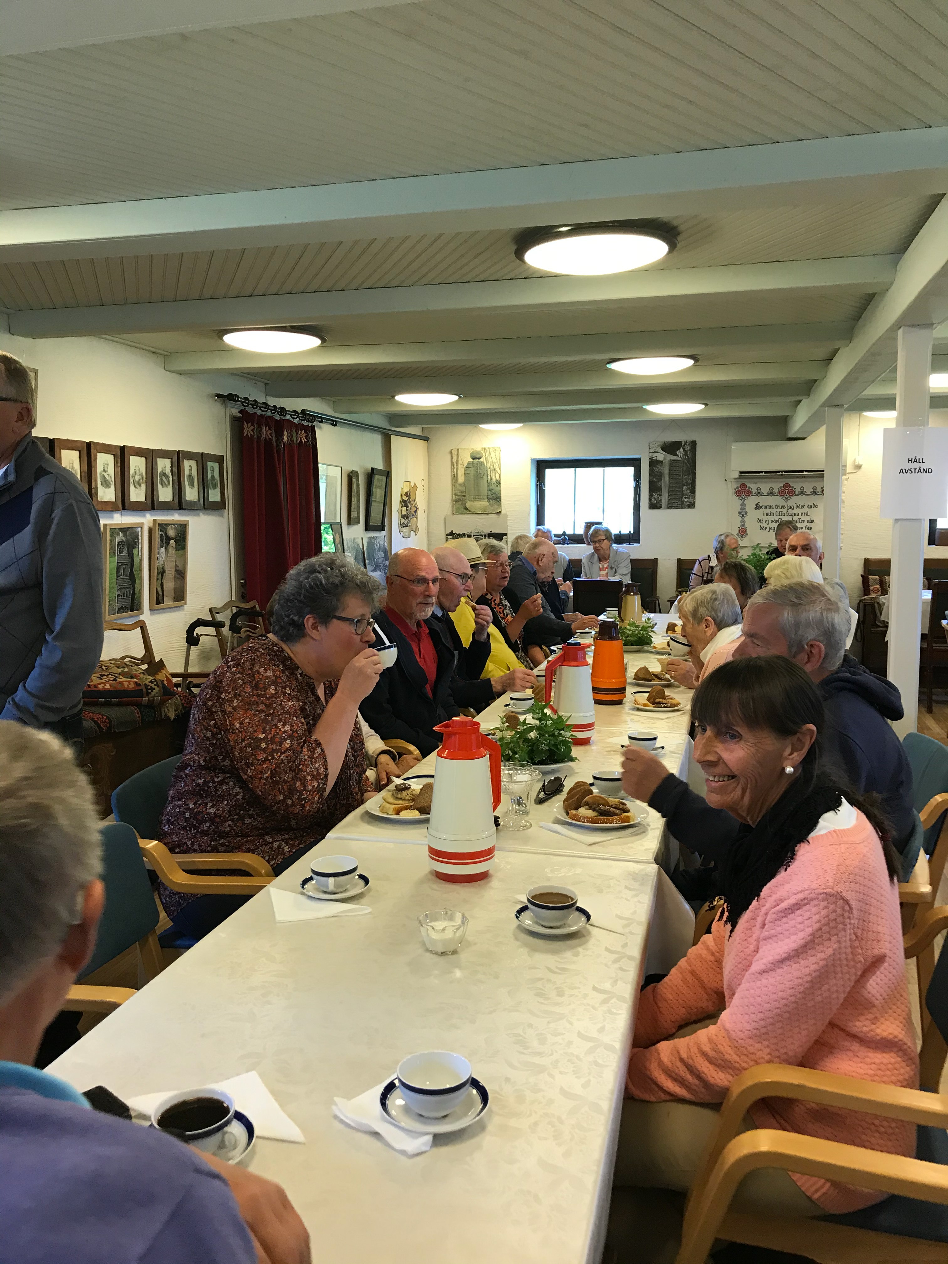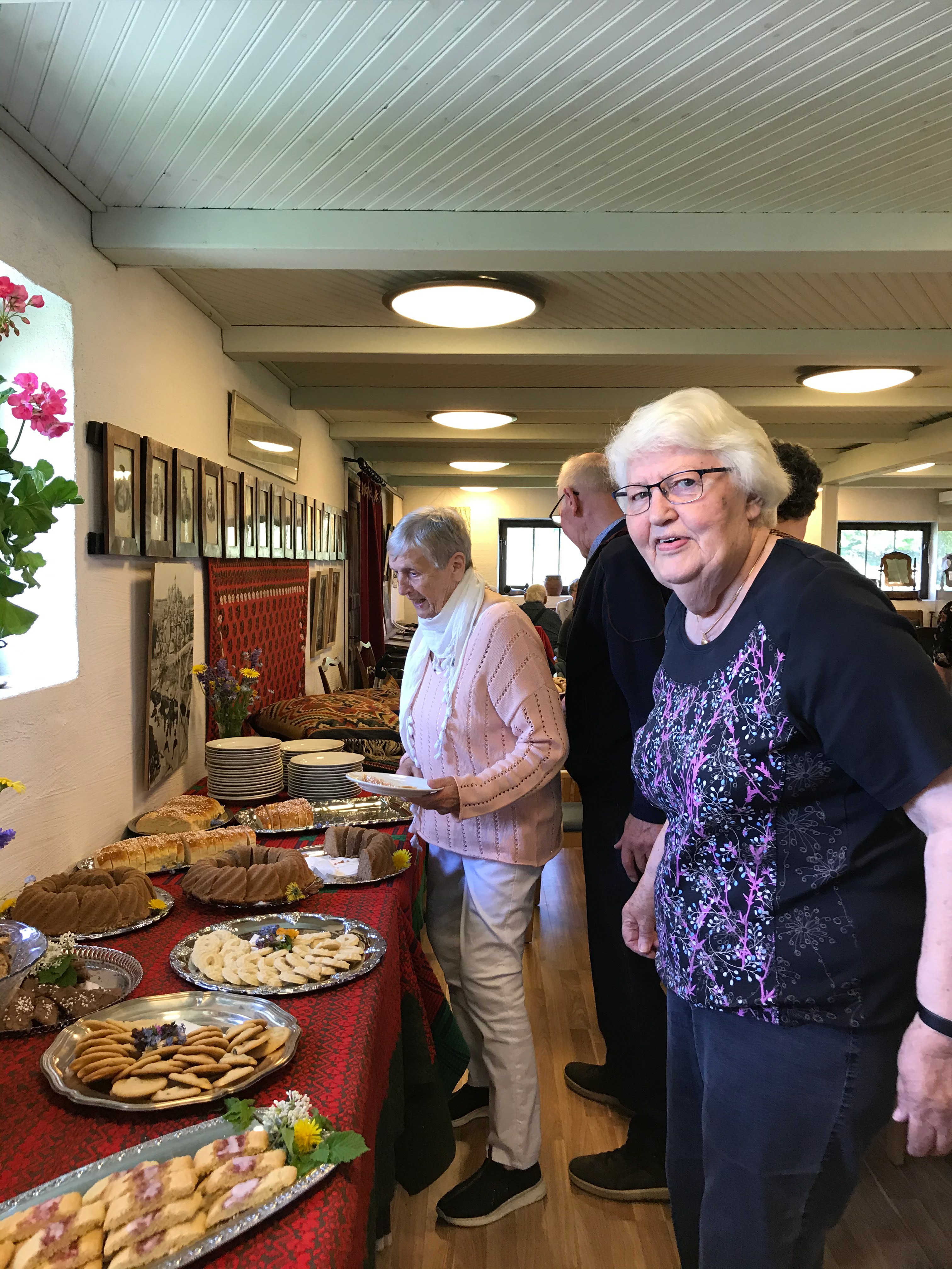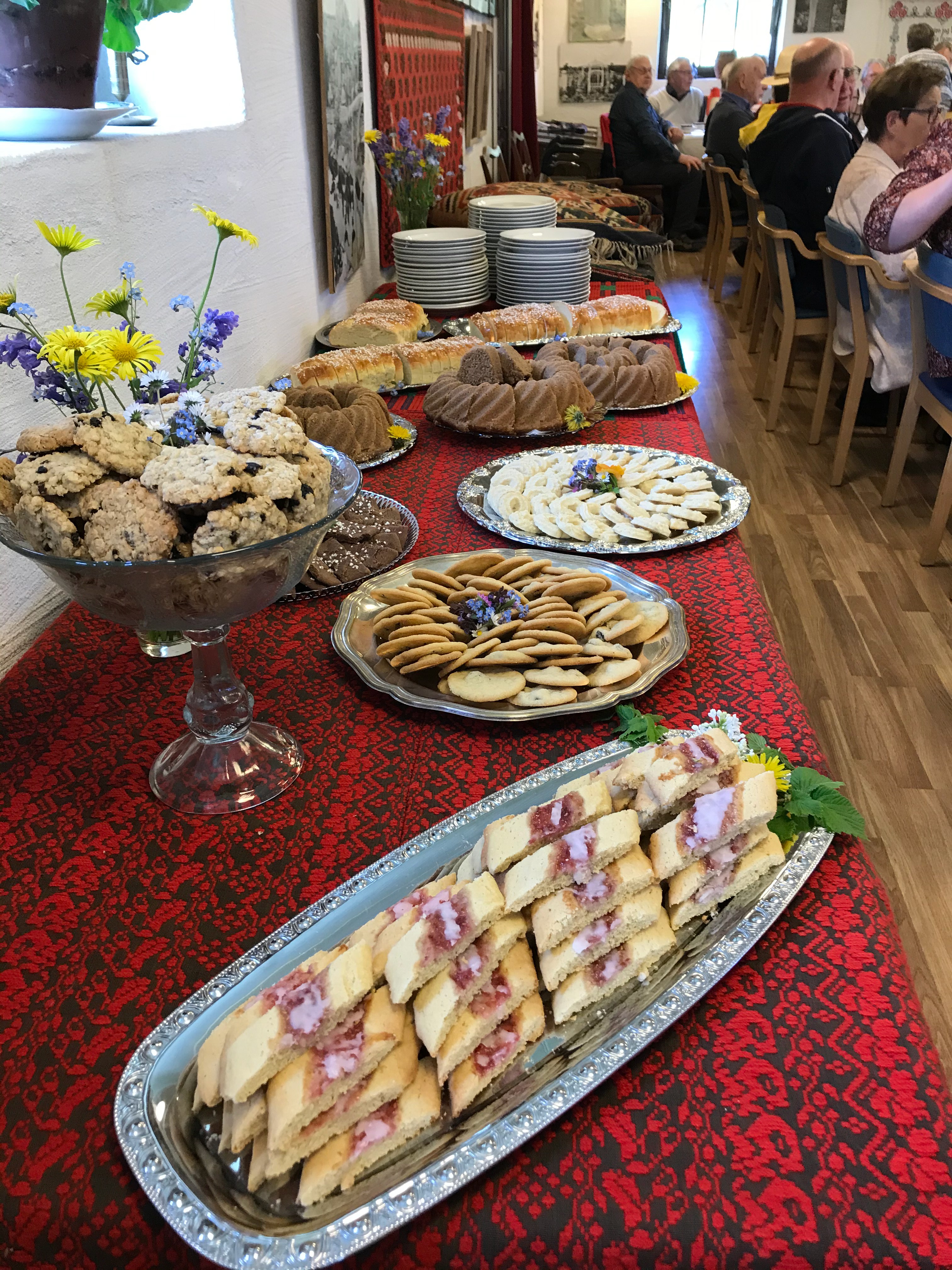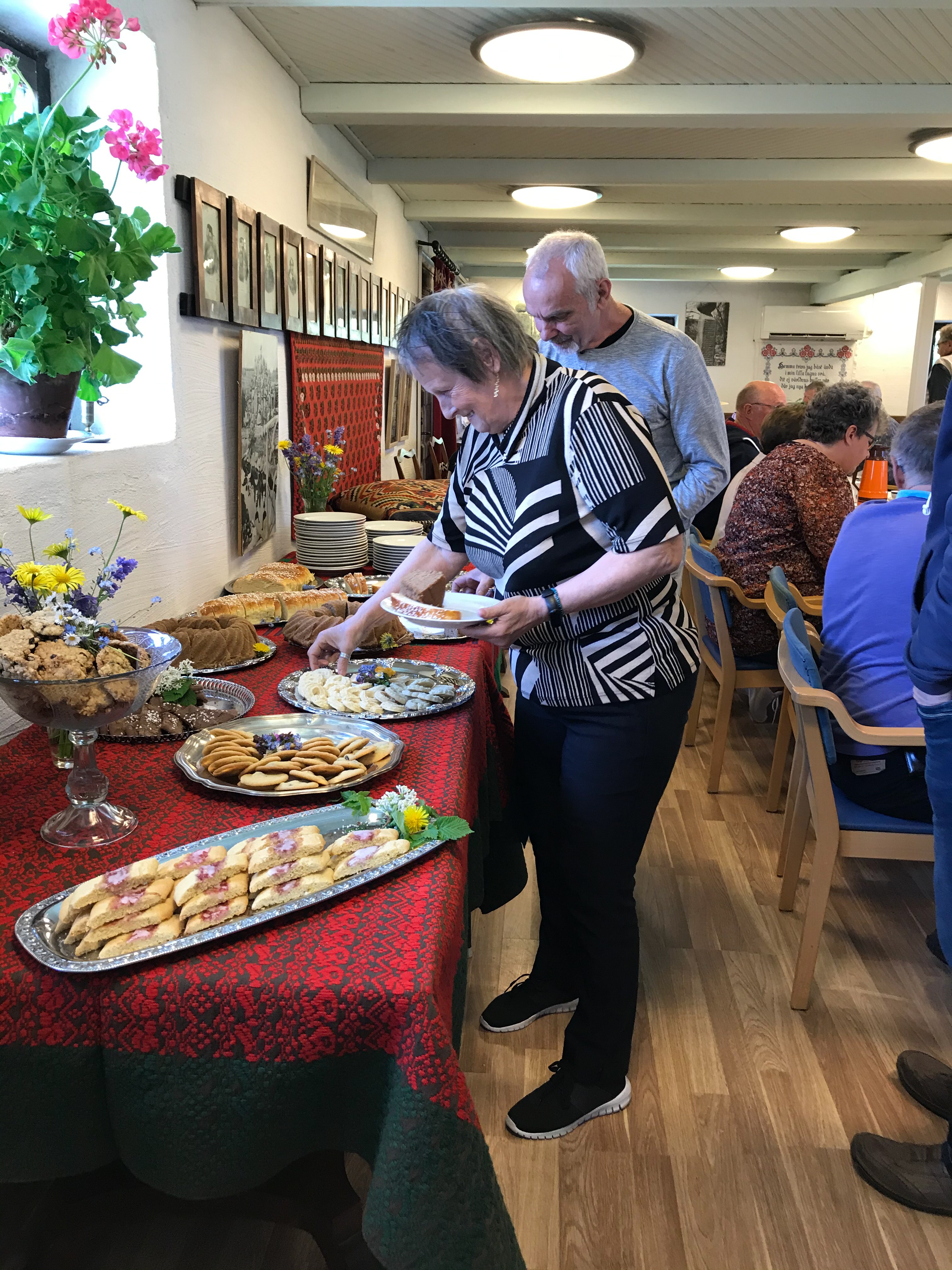 Kaffe och sju sorters kakor bakade efter Doroteas recept av några "damer" i föreningen serverades.