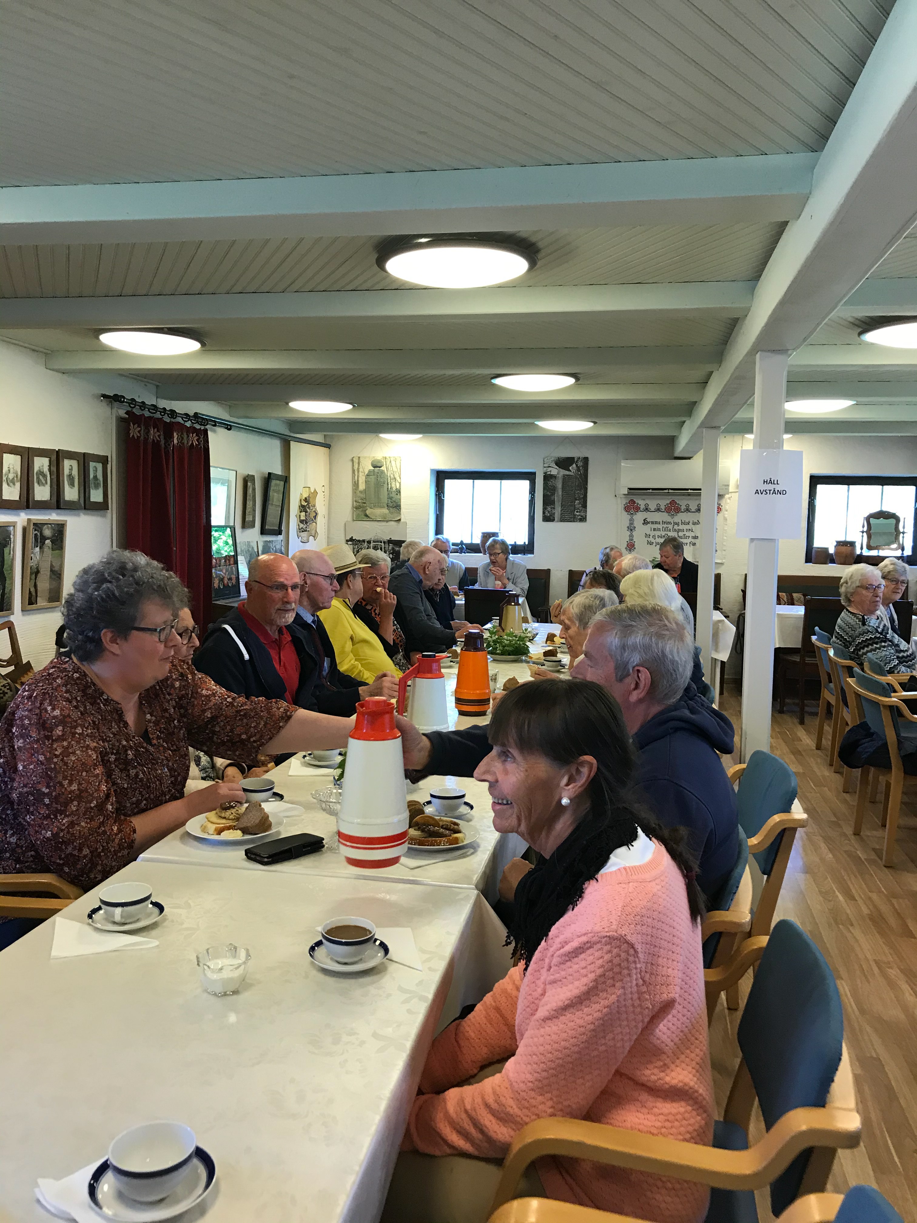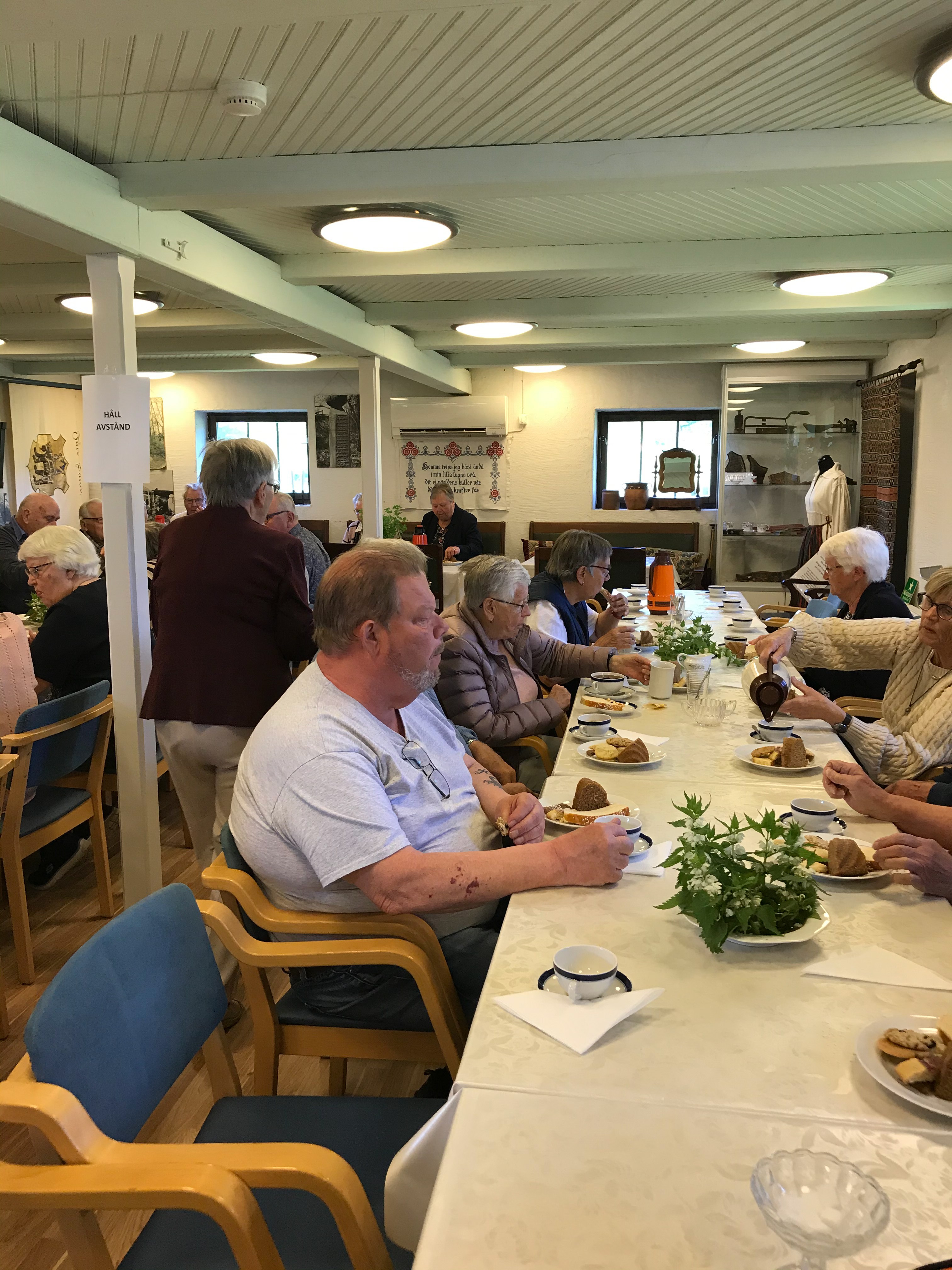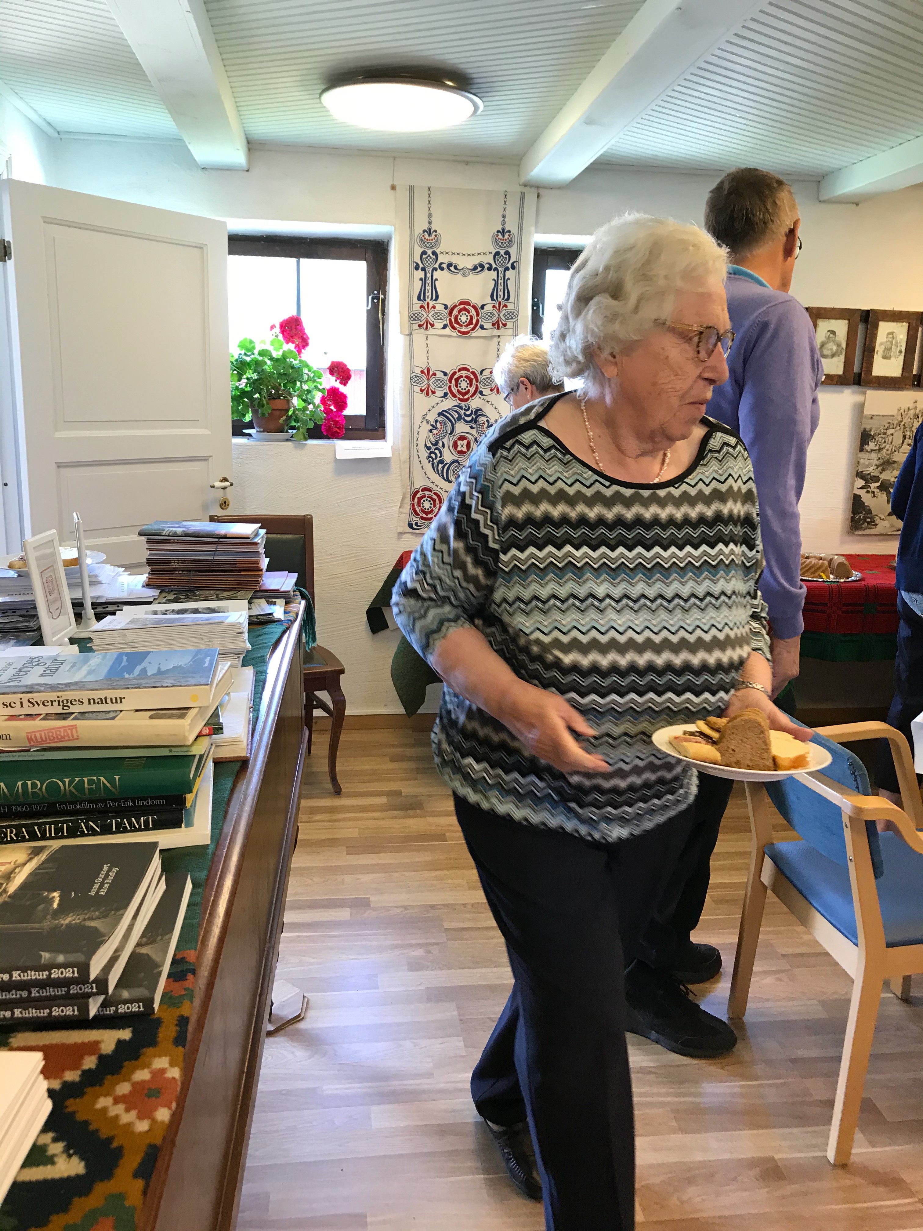Kaffe och sju sorters kakor bakade efter Doroteas recept av några "damer" i föreningen serverades.