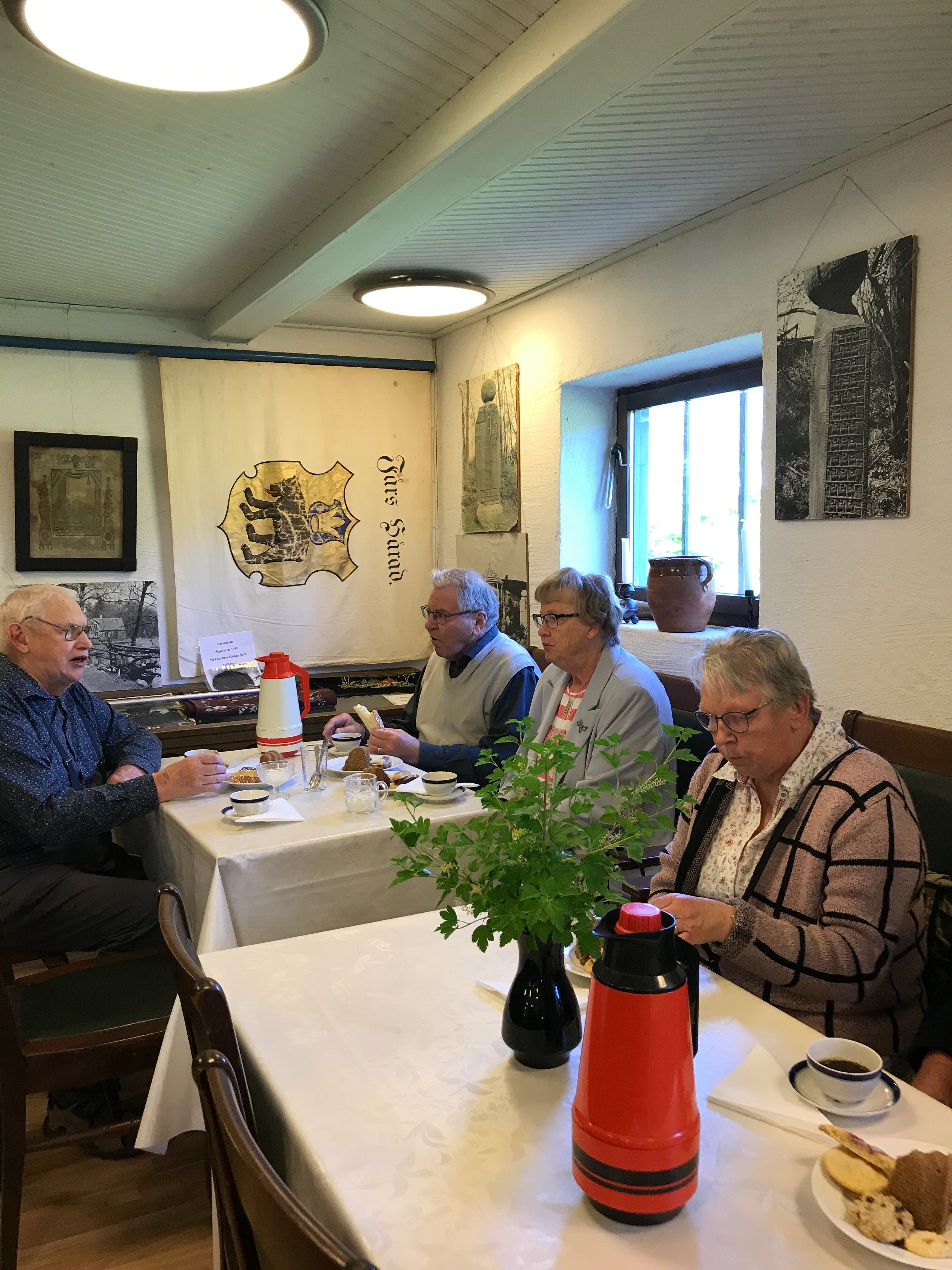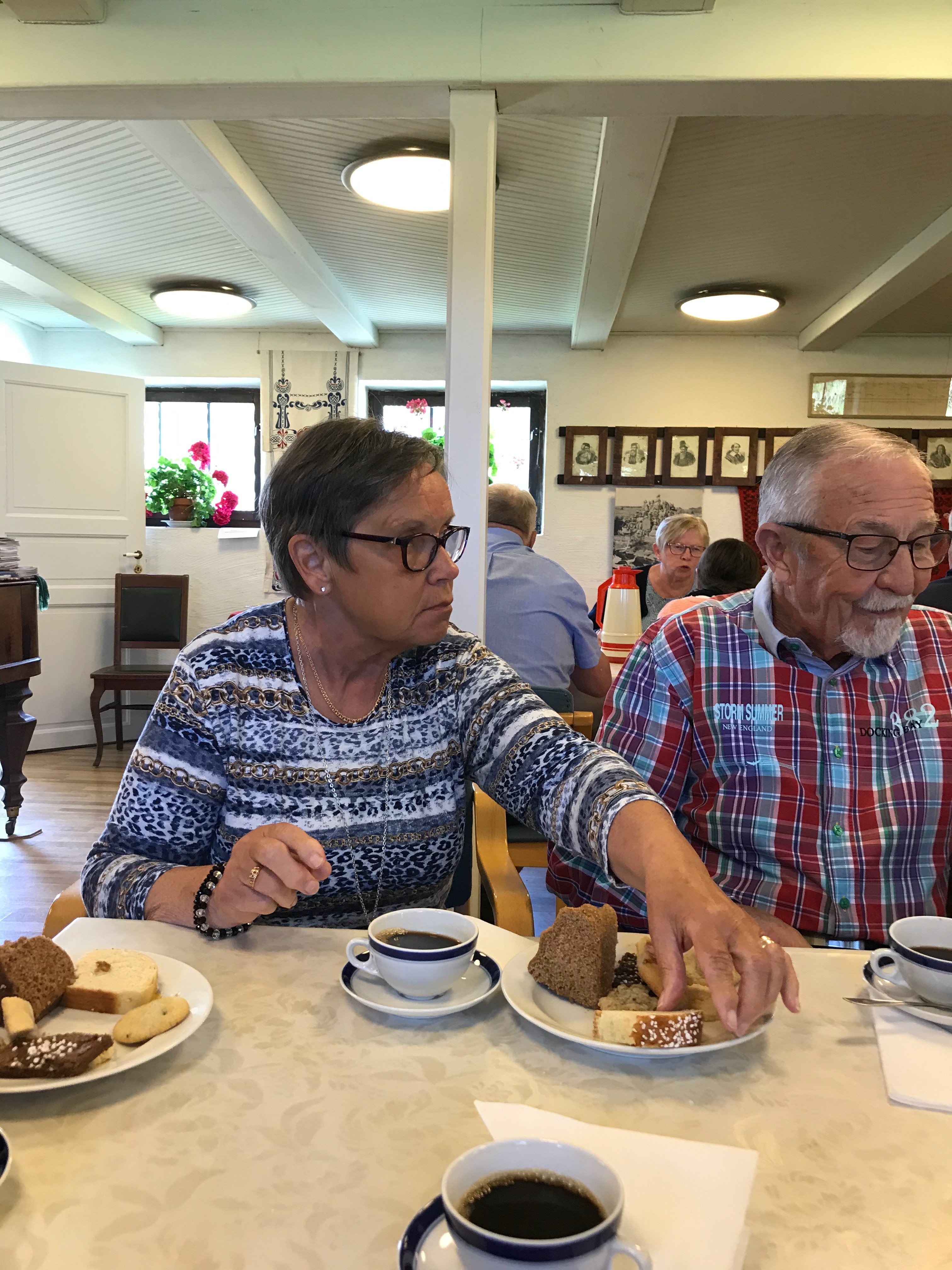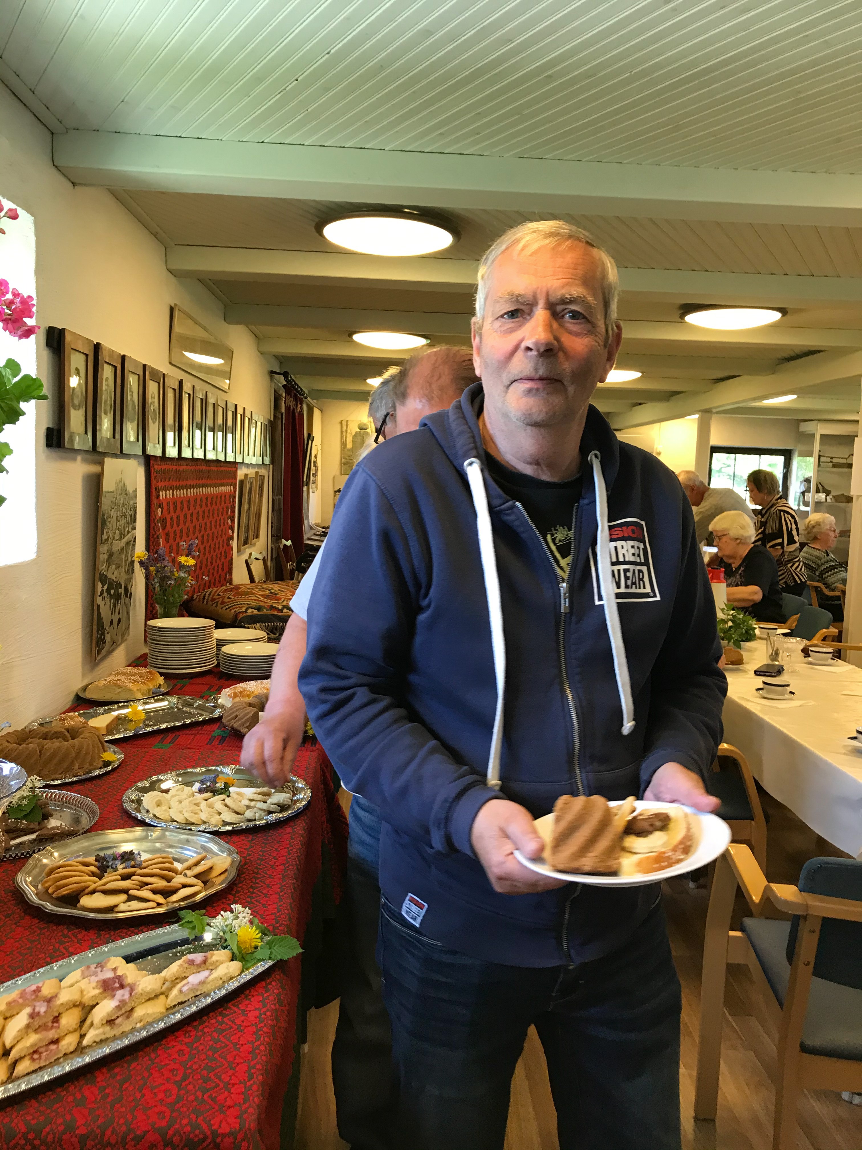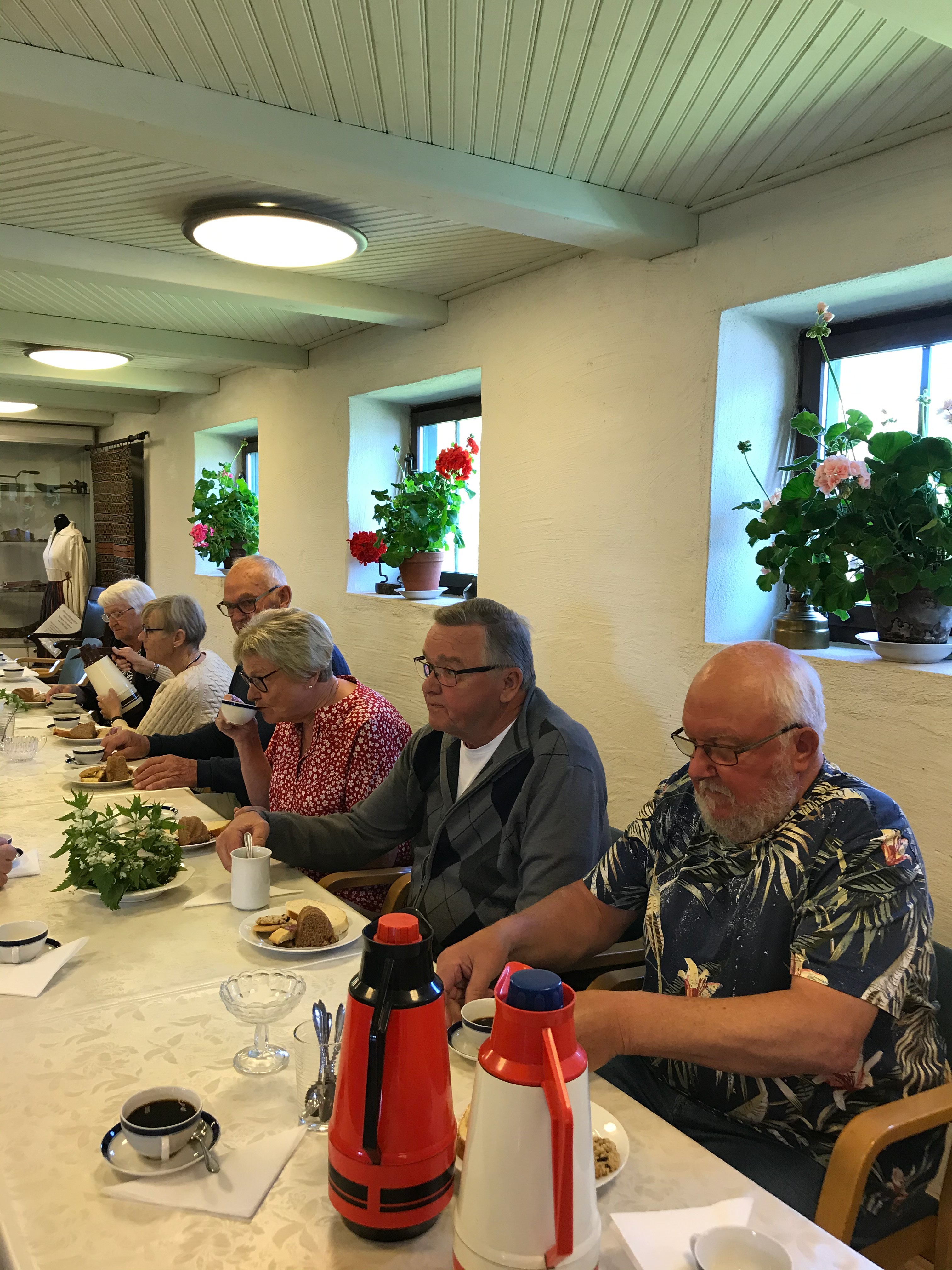 Kaffe och sju sorters kakor bakade efter Doroteas recept av några "damer" i föreningen serverades.