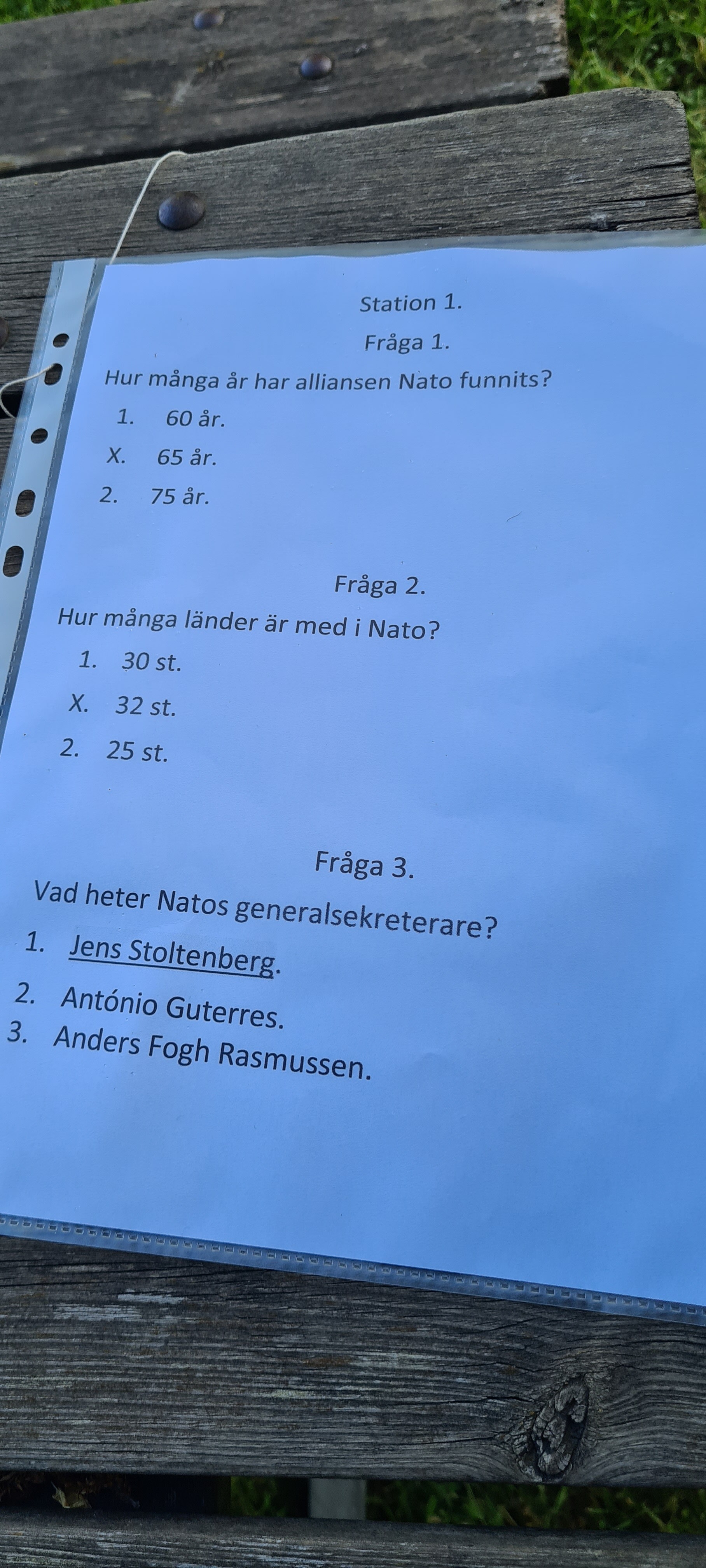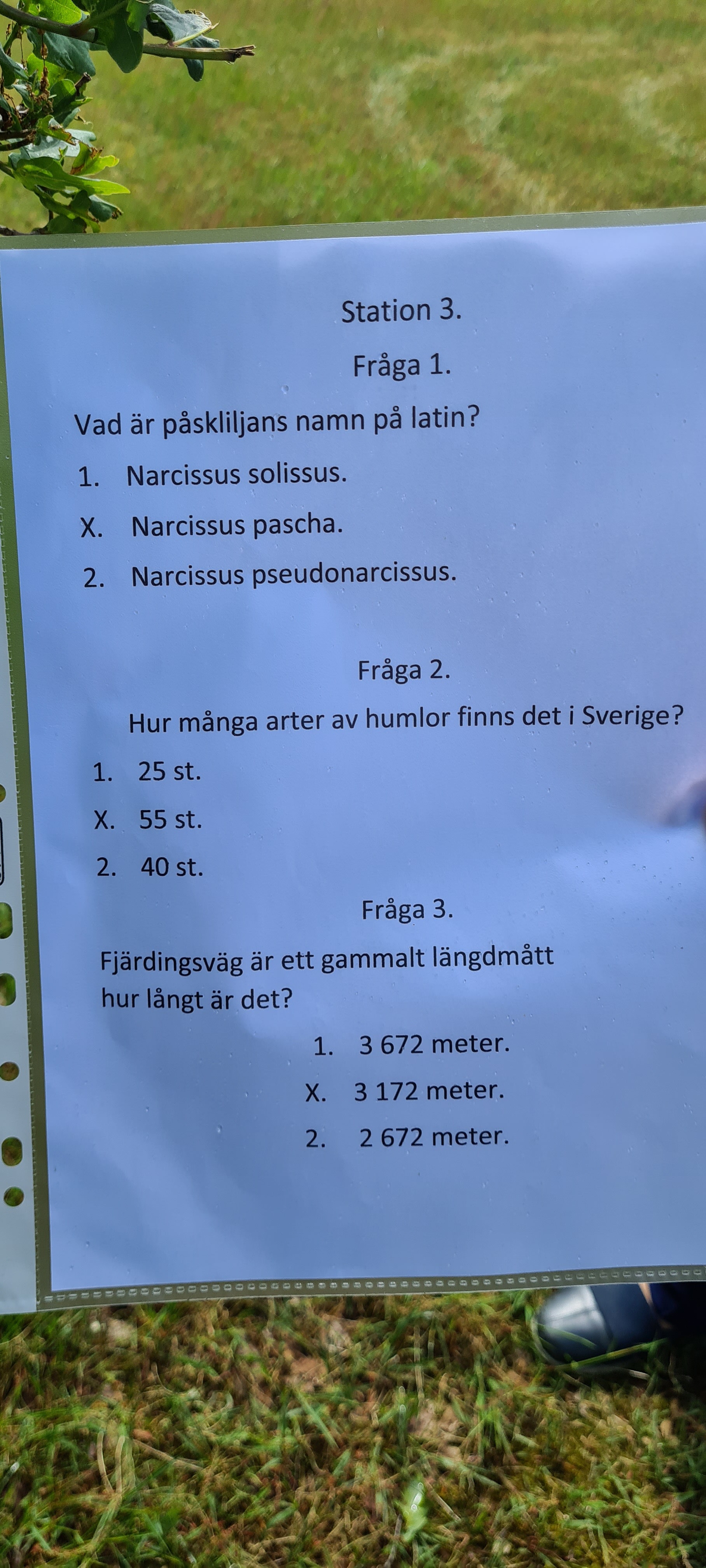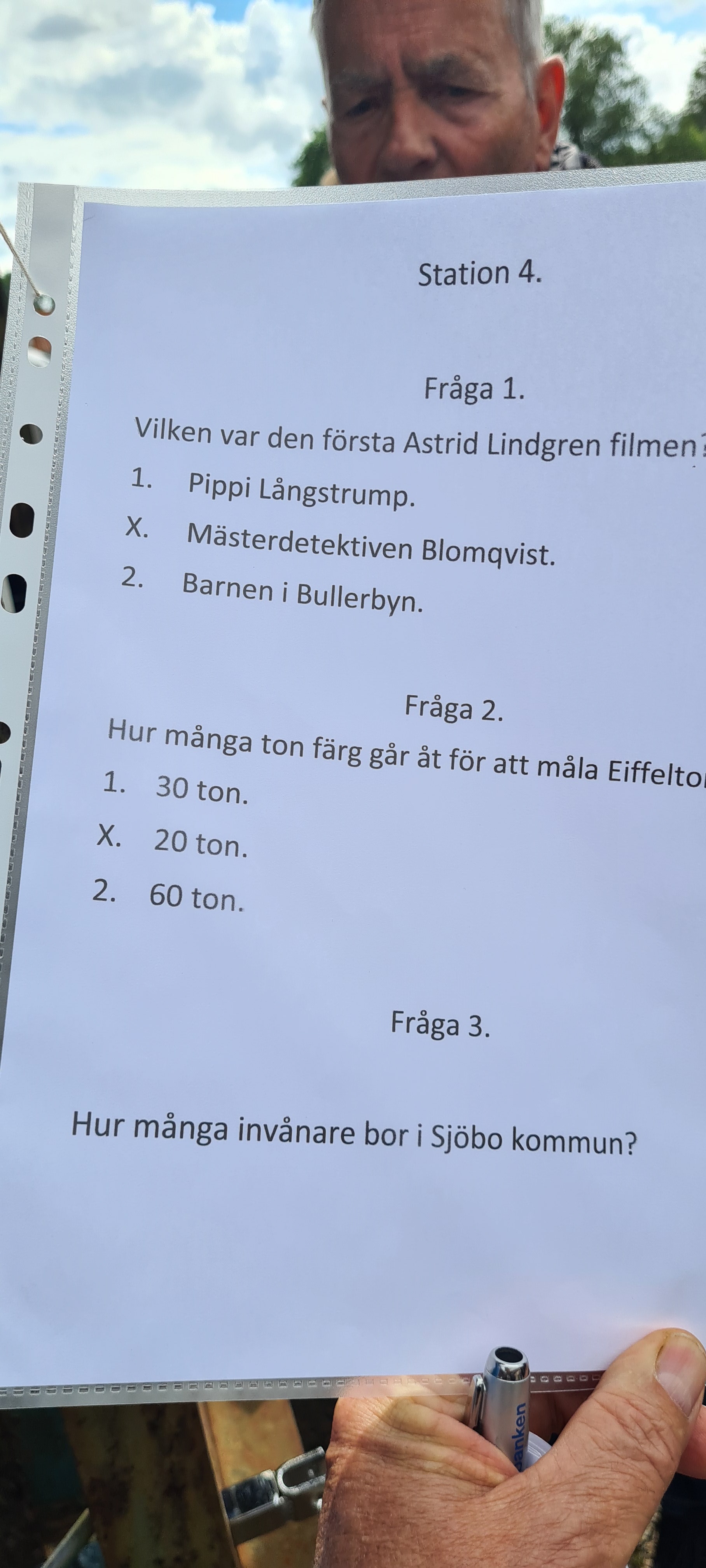 Lars och Eva rättade alla svar. Gunnar blev 1:a, Lars-Inge 2:a och Carolina 3:a, vilka fick varsin kasse med smått och gott.