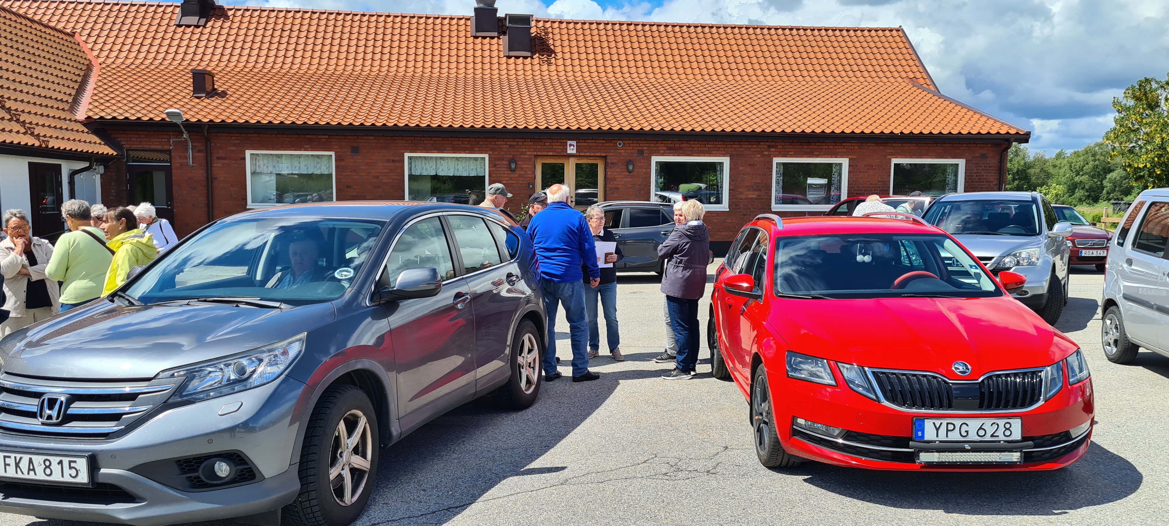 Träff med tipsrunda runt Färs Härad, Röddinge, Fyleverken, Eriksdal, Gydarp där det fikades. Vägen tillbaka gick genom Anklam, Tolånga, Eggelstad. När vi kom fram till Loppisladan stod Jörgen och Gertrud redo med grillad korv.