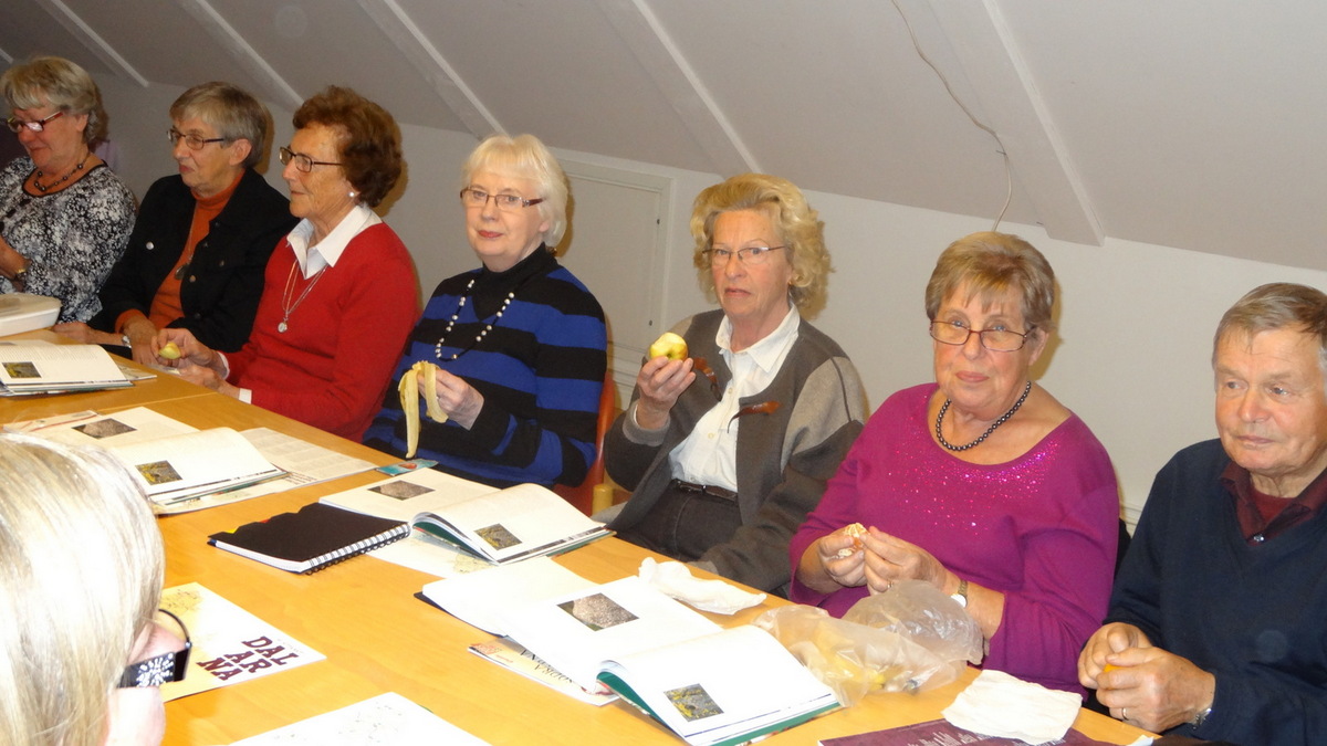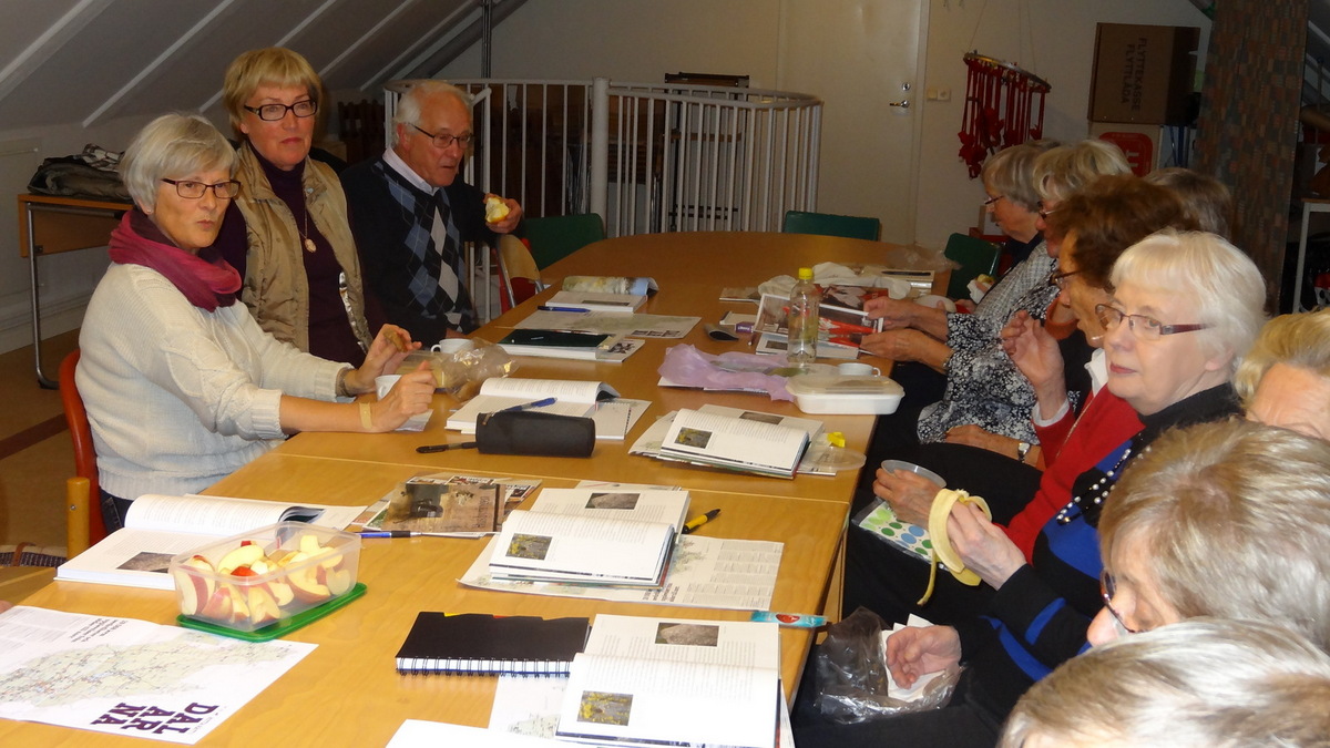 Studiecirkel: Gösta Lönnqvist avslutade studiecirkel om Bohuslän under våren. 15 deltagare. På hösten påbörjade han en ny cirkel om Dalarna. 19 deltagare. Bilderna är från hösten 2013.