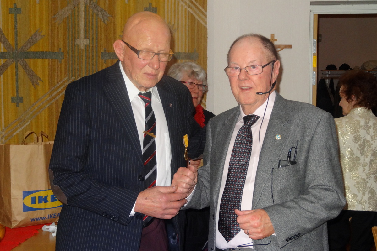 13 feb: Årsmöte. Gösta Lönnqvist (t.v.) avgick som sekreterare och Ove Åkesson tillträdde. 64 deltagare.