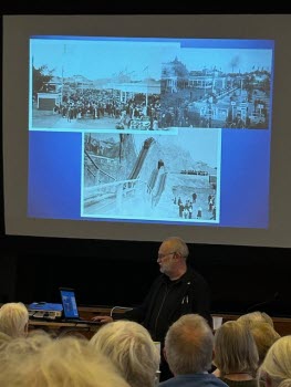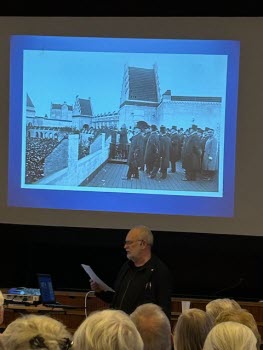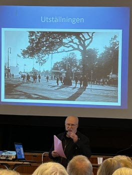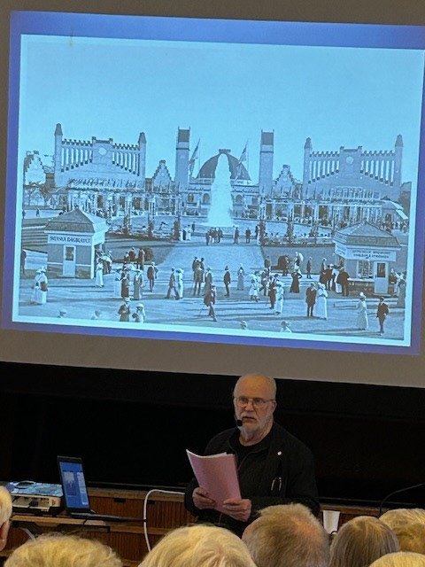 Anders Reisnert berättade om och visade bilder, från Baltiska utställningen 1914 i Malmö med paviljonger som bl a representerade europeiska stormakter som tsarriket Ryssland och kejsardömet Tyskland. En fantastisk utställning där byggnaderna inte är vad de ser ut att vara!