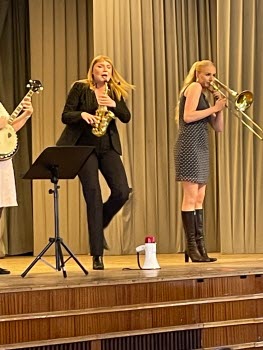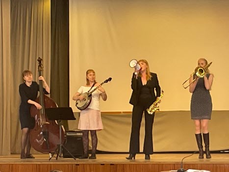 Det blev en härlig vårfest med inledning av vår egen sångkör och sedan blev det god mat och dryck innan festens huvudnummer "The Carling Sisters" höll igång på ett glammigt-jazzigt-energiskt - ja, helt underbart sätt som avslutades med stående ovationer.
