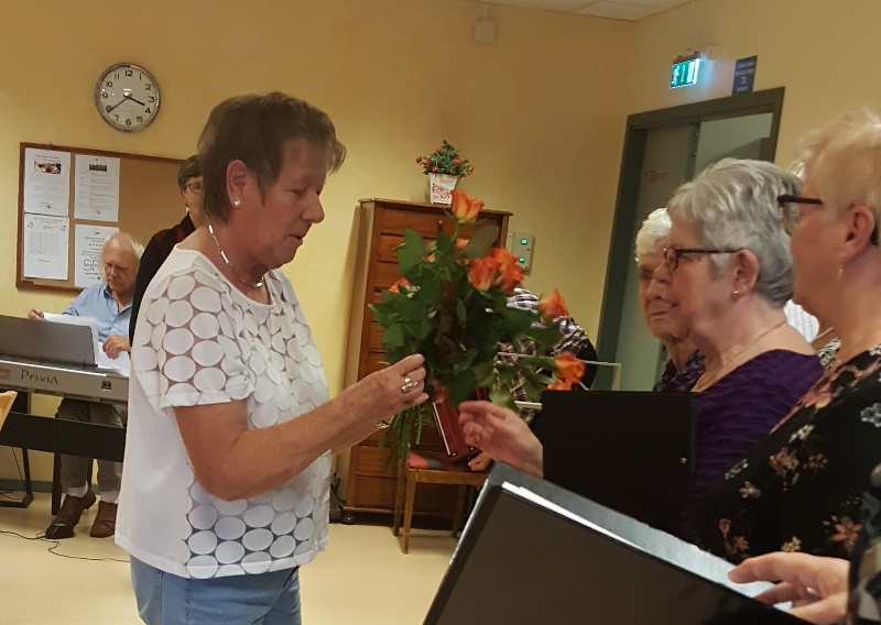 Eftermiddagen avslutades med överlämnande av en blomsteruppsats till vardera avdelning.