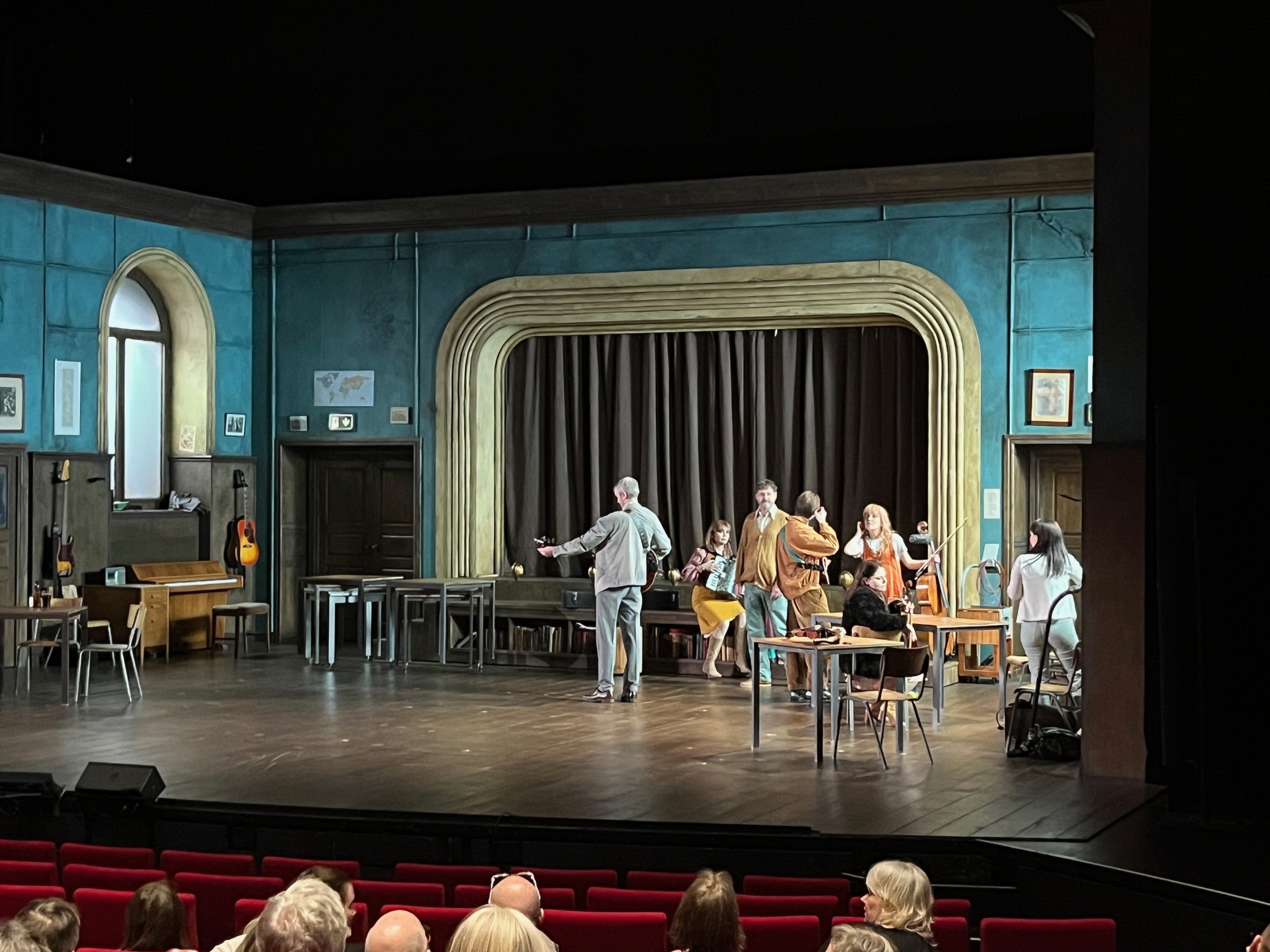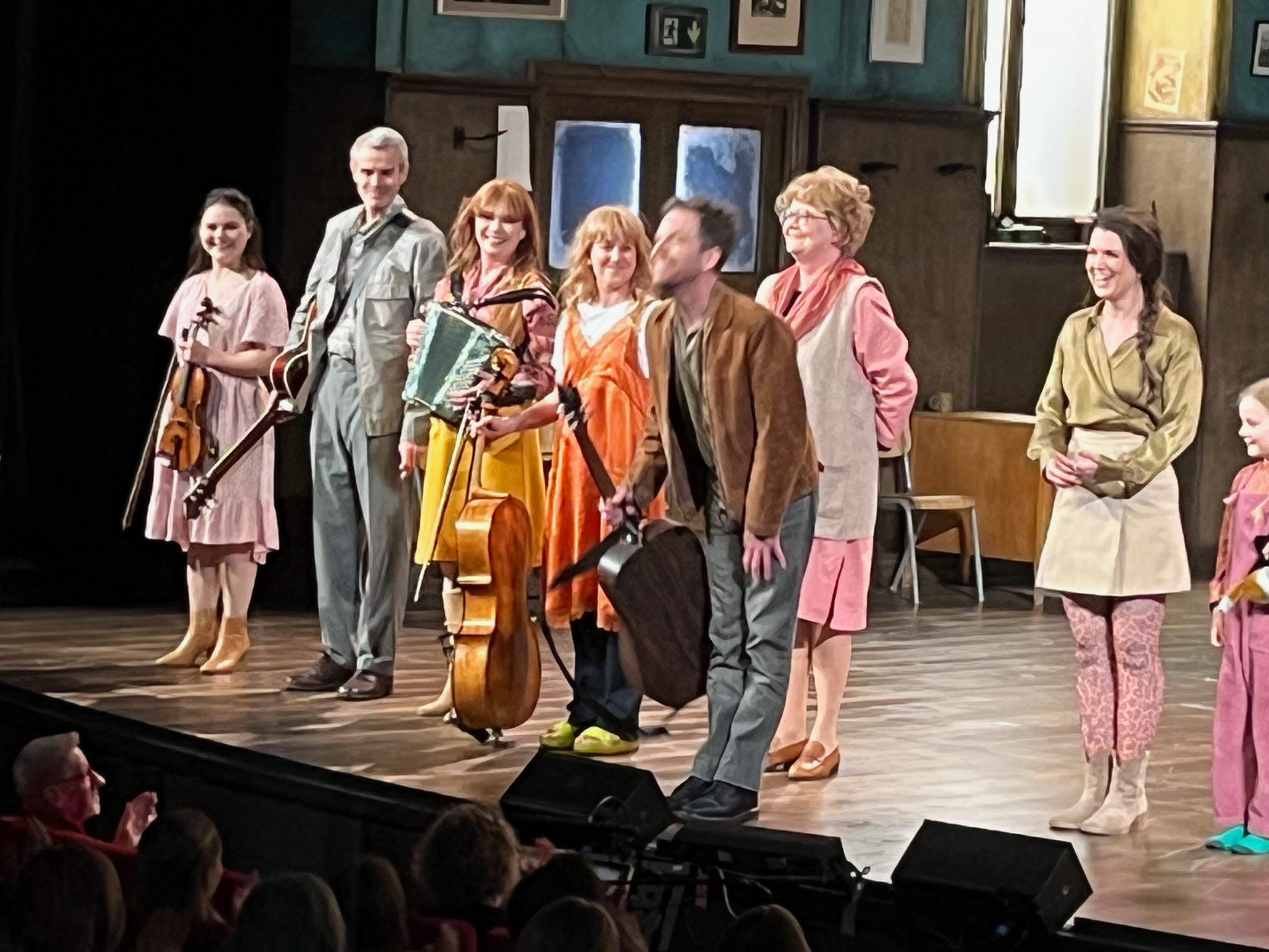 Innan föreställningen började spelade och sjöng ensemblen några välkända irländska melodier och det blev genast lite allsång. Ensemblen spelar och sjunger live under hela föreställningen.