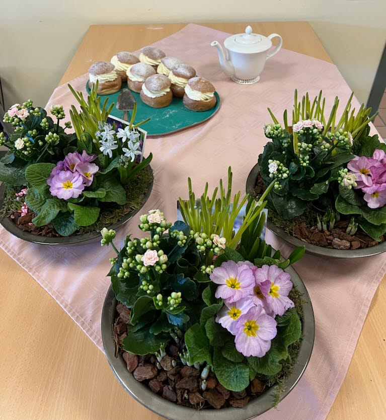 Vi bjöd på fastlagsbullar och blomstergrupper till avdelningarna.