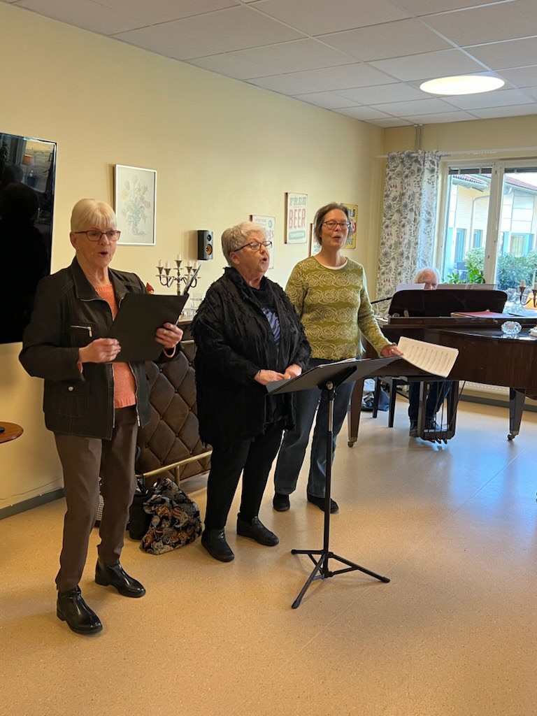 SPF:s vårfest för de boende på Björkbacken med underhållning av Kaj Wirenbook med damer som bjöd på många fina låtar.