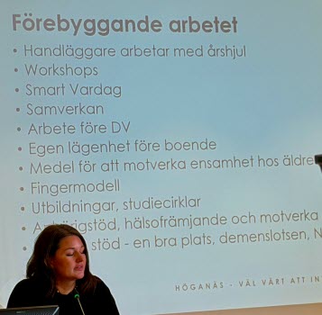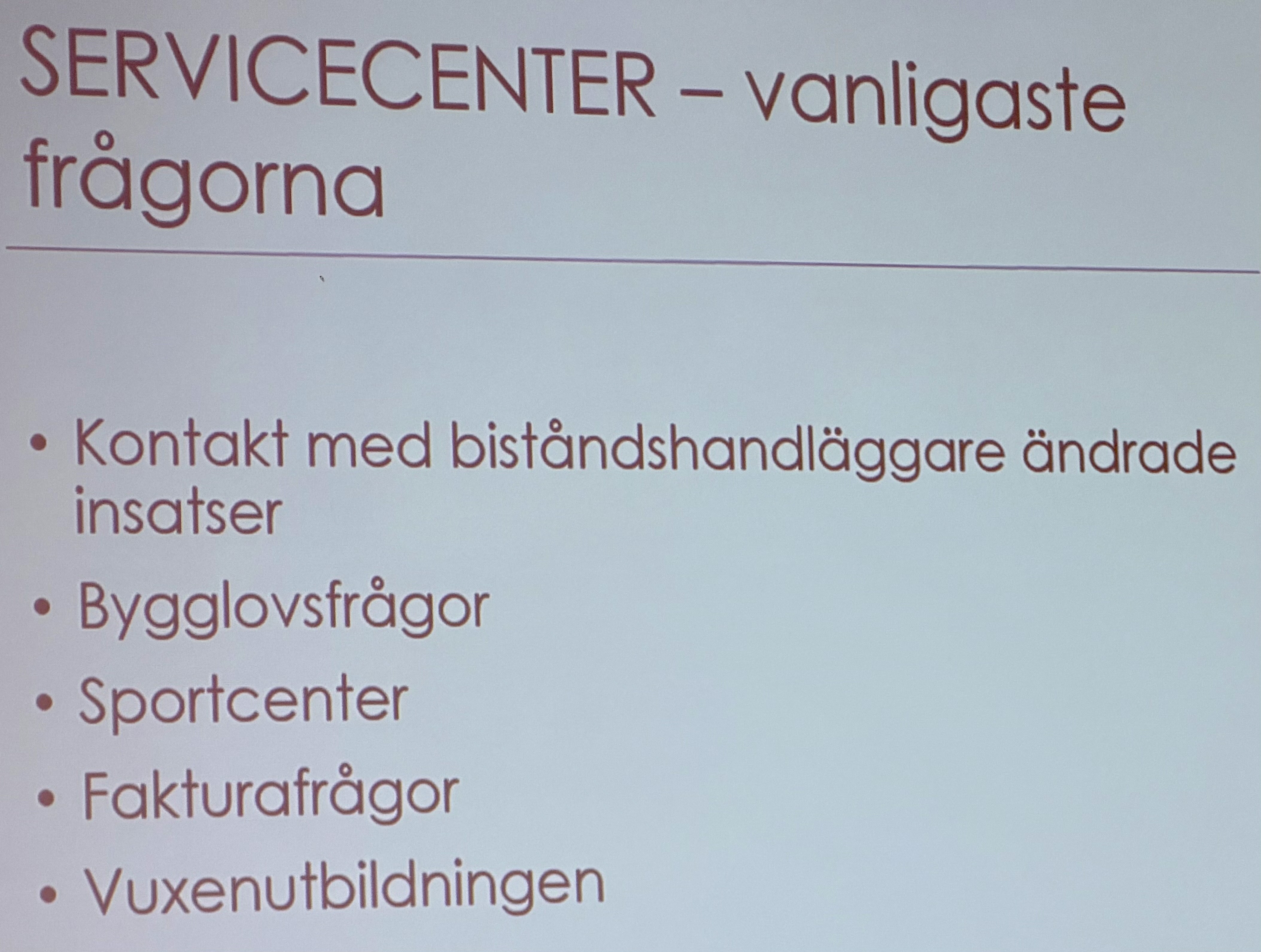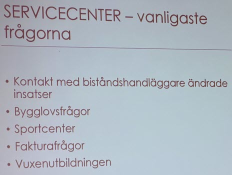 Servicecenter, som just nu finns i Stationshuset under renovering i Stadshuset, Helena Holm informerade om deras funktion. De kan svara på de flesta frågor från kommuninvånarna och är även behjälpliga med att fylla i ansökningar till olika insatser.
