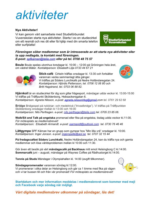 I många föreningar arbetar SPF Seniorerna för att ingen ska behöva känna sig ensam. Det stora intresset för vår kampanj ”roligare tillsammans” visar hur angeläget ämnet är. I Handen bjuds det in till aktiviteter till och med under jul- och nyårshelgerna.