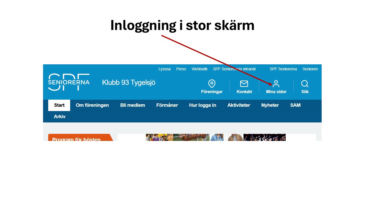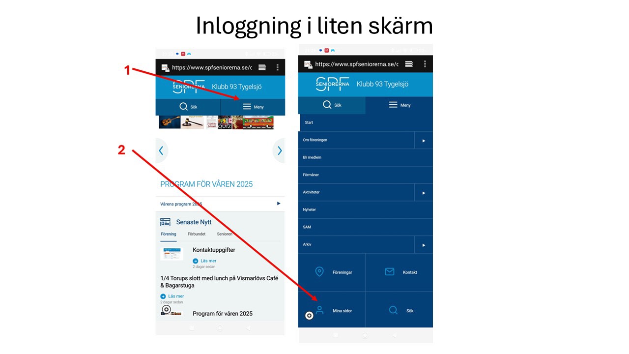 Inloggningen ser olika ut beroende på skärmstorlek och SPF-Appen har eget utseende.