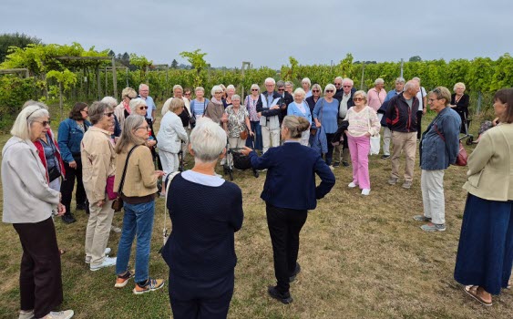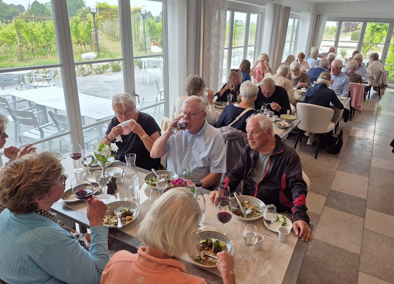 Vi åkte buss till Flädie Mat & Vingård, där vi fick komma ut i deras fina vinodling och lära oss om företaget och deras vinodling och vinproduktion. Vi provade fyra olika viner från deras egen vingård under vägledning av deras sommelier. Sedan avnjöt vi en fin lunch tillsammans.