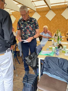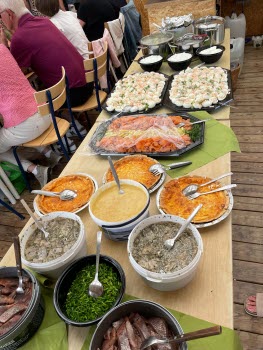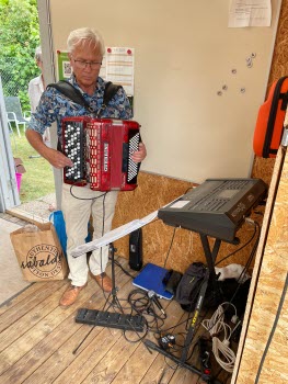 Drygt 70 medlemmar åt god sommarmat och fick härlig sommarmusik av Nisse, vår egen speleman.