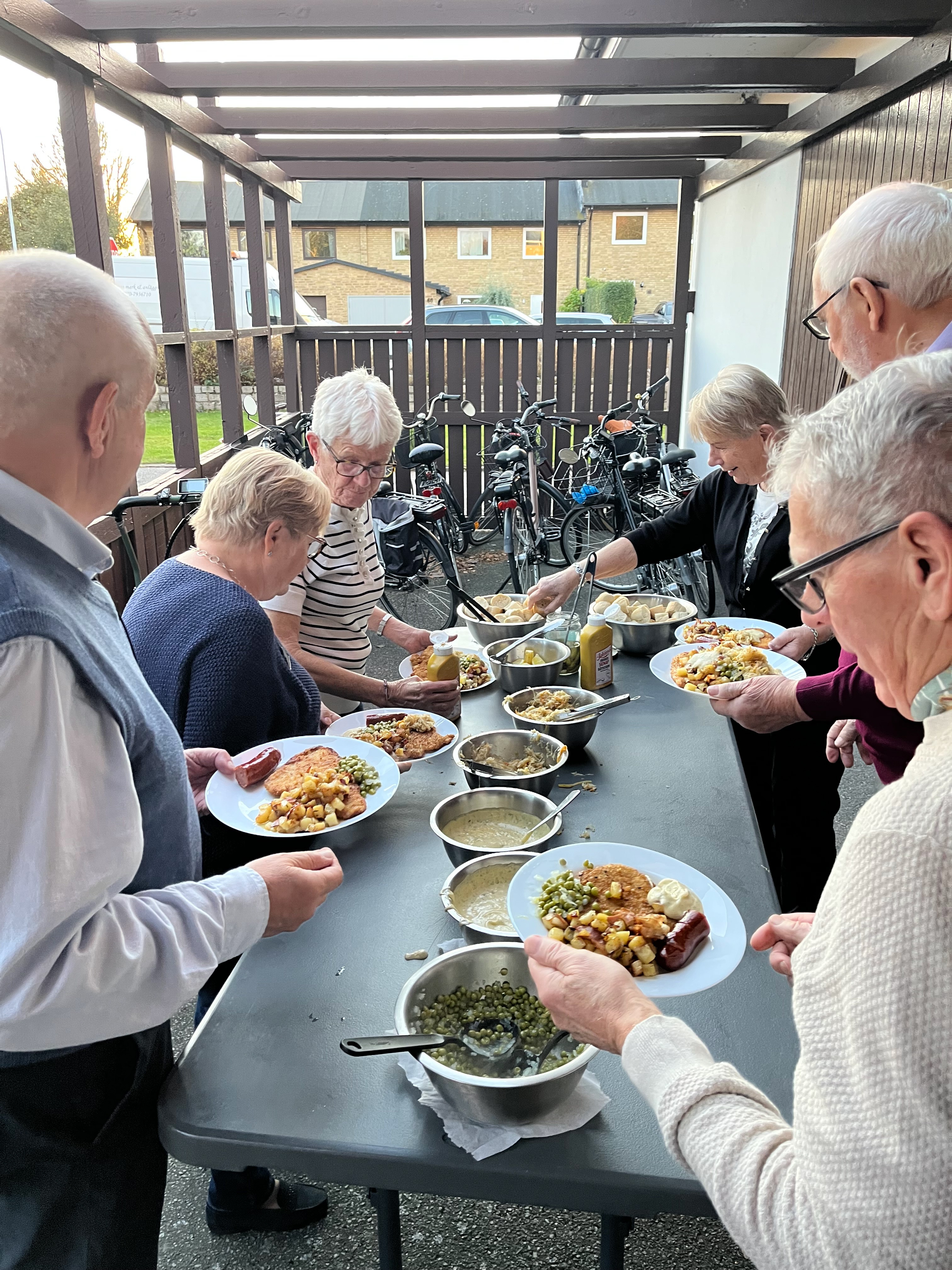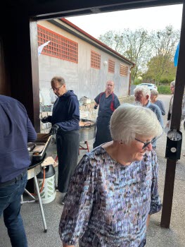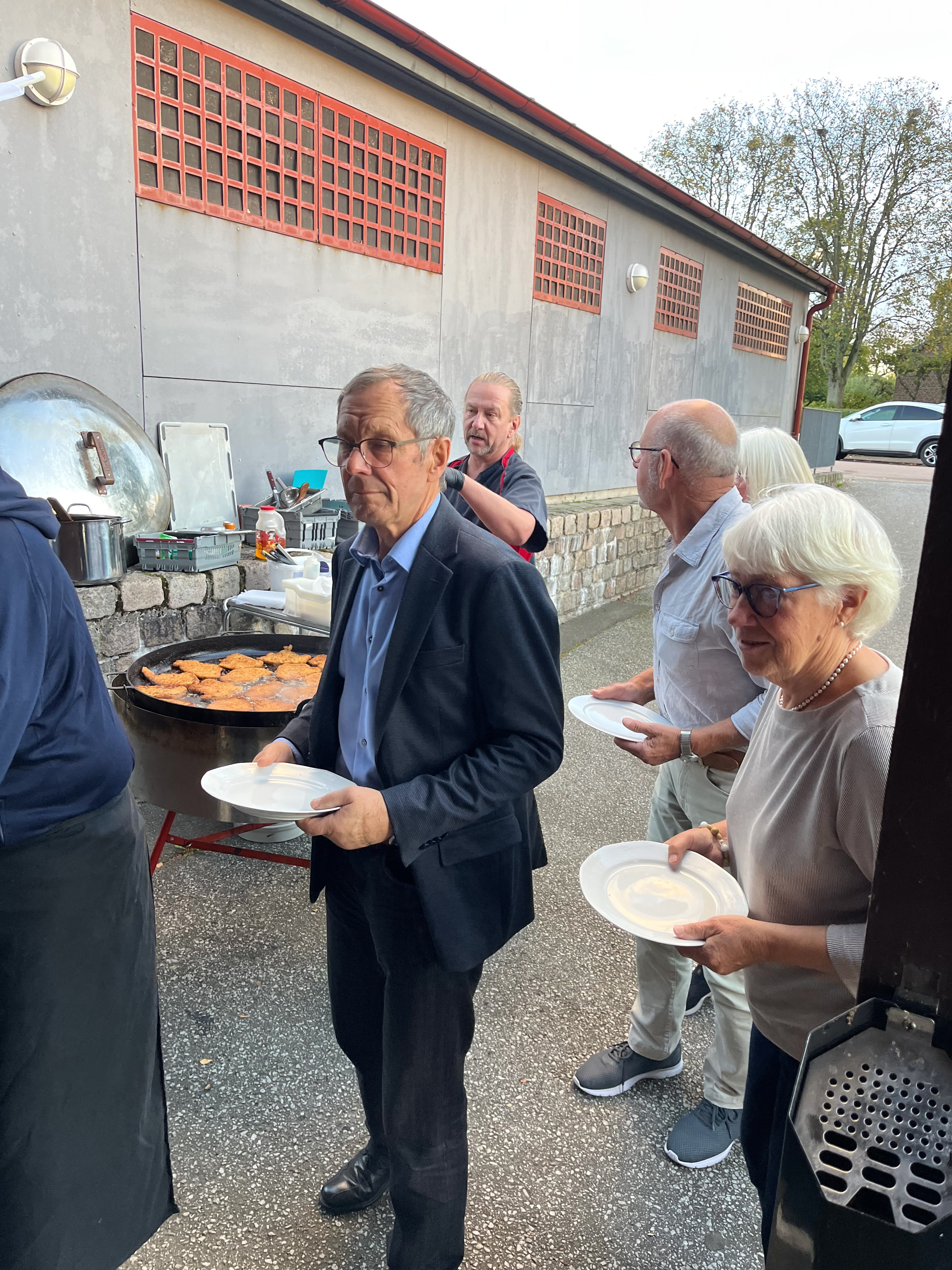 Efter provningen serverades Wienersnitzel med goda tillbehör tilllagat av Robokocken och hans medhjälpare. Som vanligt väldigt gott och rikligt.