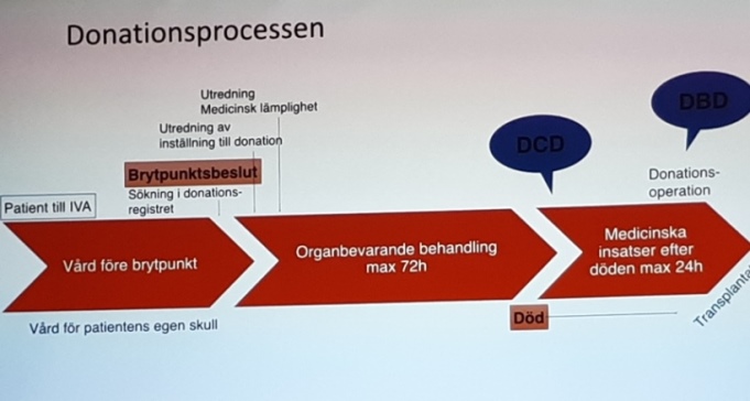 | Vi fick en ingående beskrivning av själva donationsprocessen och alla parametrar att ta hänsyn till vid brytpunktsbeslutet (finns inte mer vård att ge). |