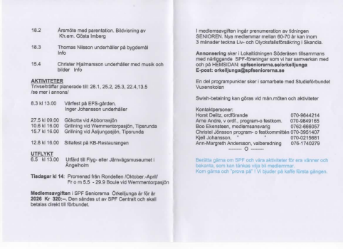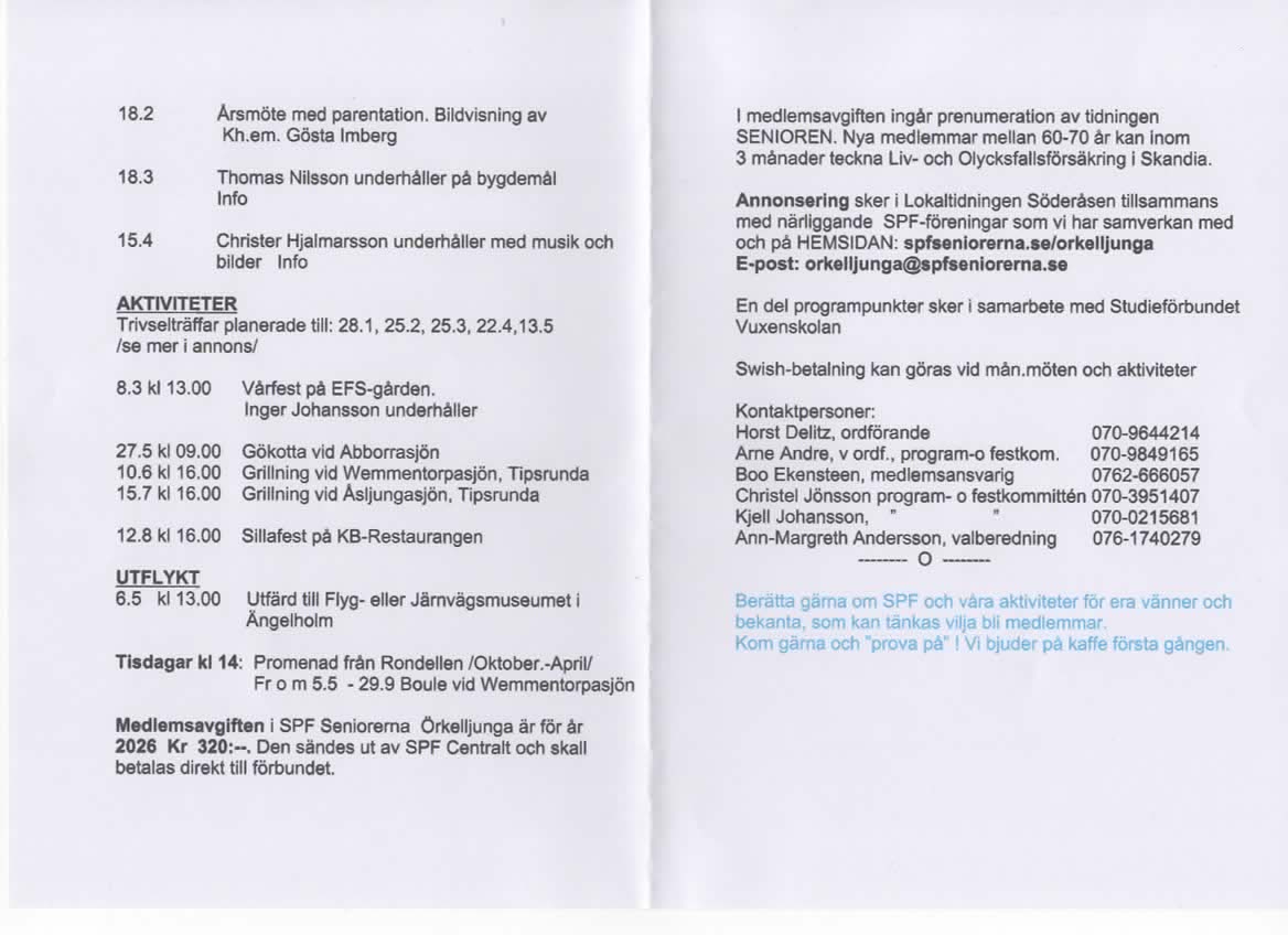 Spf Seniorerna Örkelljunga Program  2026