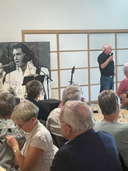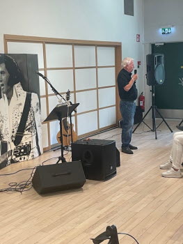 Vår inbjudna musiker för dagen är Magnus ”Elvis” Mårtensson, som framförde många Elvis-låtar, både igenkännande och några kanske lite mer okända. Härligt med medryckande musik, och Elvis är vi väl bekanta med.