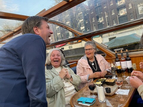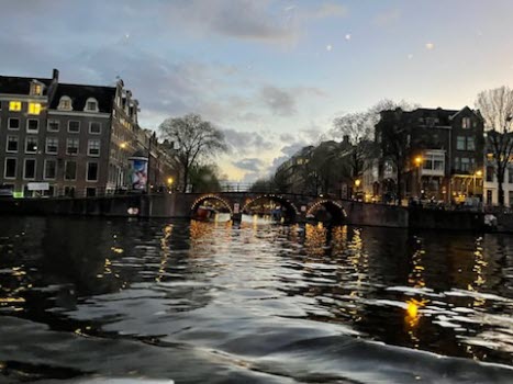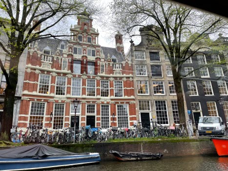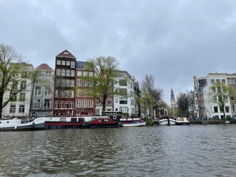Nästa morgon startade vi med en båttur på Amsterdams kanaler. Vi fick höra om husens historia, bl.a om ”Pepparhuset” som hade galler för fönsterna pga dess dyrbara pepparlager på 1600-talet, dyrare än guld.