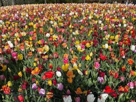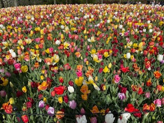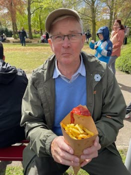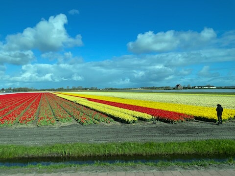 Fantastisk upplevelse med alla blommande omgivande tulpanfält. 7 miljoner lökar som gav en färgglad upplevelse. Här provsmakade många av oss nederländska lunchrätter, som pommes frites, pannkakor och våfflor.
