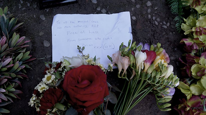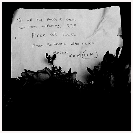 ...en minnesbukett med ett meddelande nerlagt på arkebuseringsplatsen!