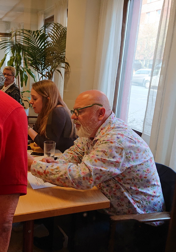 Därefter serverades det vin och tilltugg samtidigt som Joakim Bengtsson informerade om Stockholms Auktionsverk och hur det går till att sälja på auktion. han berättade också om antikviteter och hur det är att jobba som värderingsman.