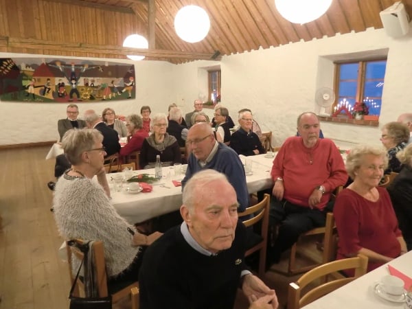 Måndagen den 11 december avslutade vi jubileumsåret med julfest på Axelgård. Efter en stunds glöggmingel väntade julbordet på oss. Där fanns det mesta man förväntar sig av traditionella julrätter.