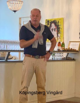 Nästa stopp blev Köpingsbergs Vingård som producerar mousserande viner. Här fick vi inblick i processen att få fram ett gott vin och innehavaren hade verkligen talets gåva. Vi fick provsmaka ett vin som hade ett års lagringstid och ett som var lagrat i sju år. Tyvärr hade inte vingården fått tillstånd att sälja ännu, så vi kunde tyvärr inte köpa något med hem.