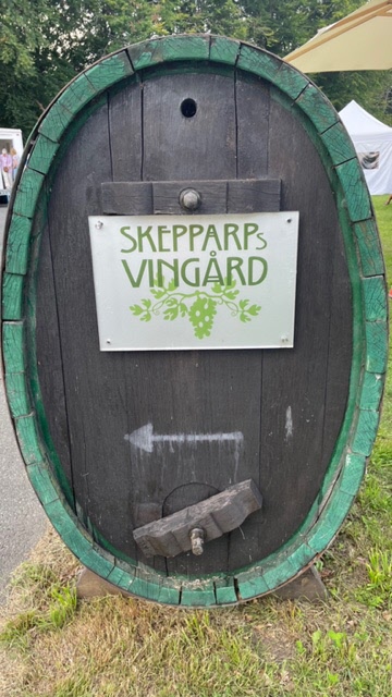 Väl framme på Skeppars Vingård fick vi var sin påse med en förteckning över de 14 vingårdarna och deras 54 olika vinsorter, 10 vinprovningsbiljetter, lunchkupong och en flaska vatten i värmen.