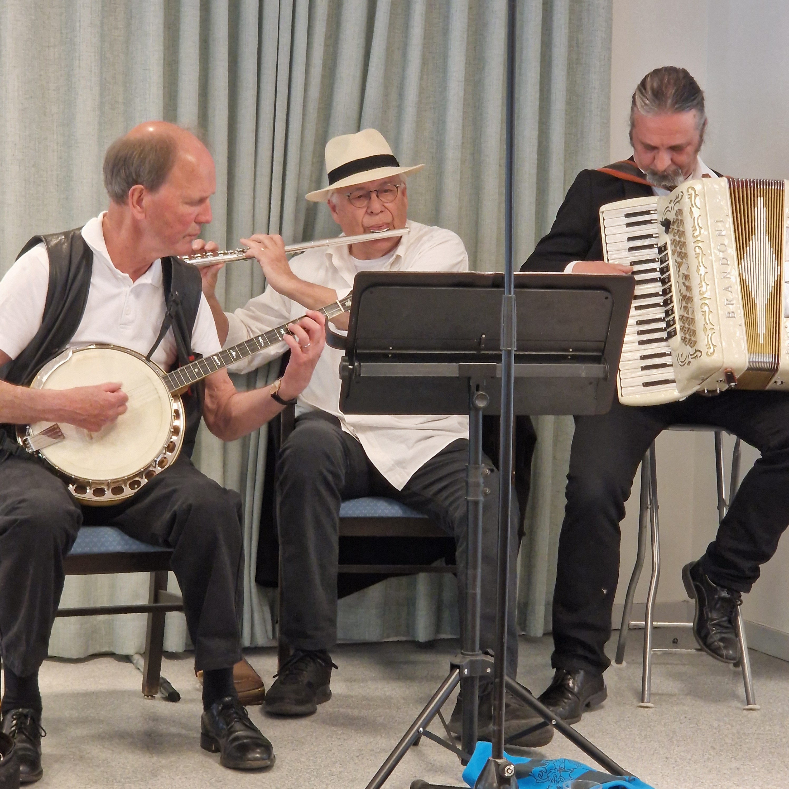 I månadsmötet med föreningen den 14 maj underhöll Sillatrion med sin medryckande folkmusik och gladjazz så att publiken ryktes med.