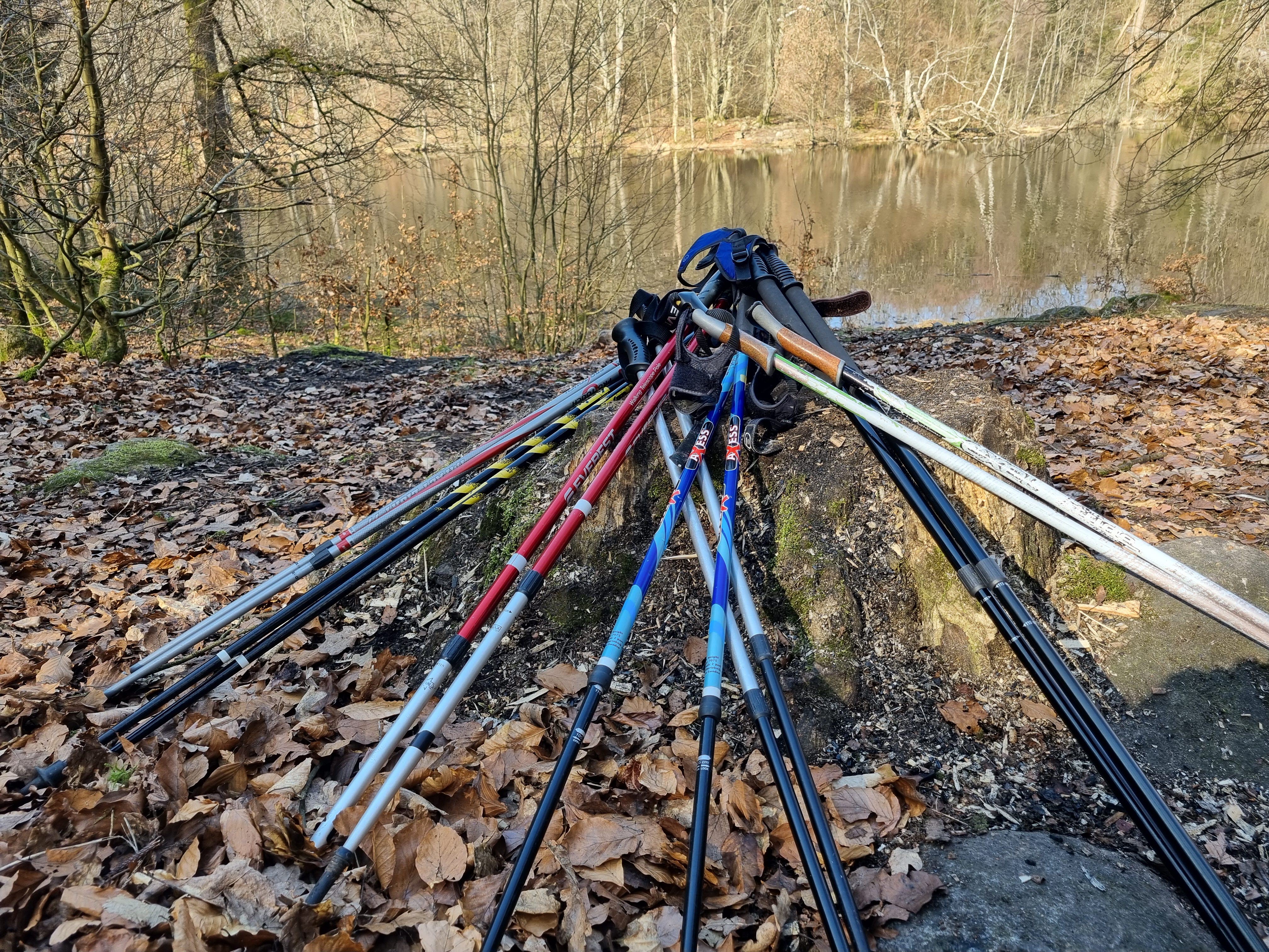 Vår och höst går vi med stavar på de olika stigarna som hör till Nybodammslingan (elljusspåret) och stannar efter vägen för att göra några enkla och sköna gymnastiska övningar.