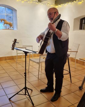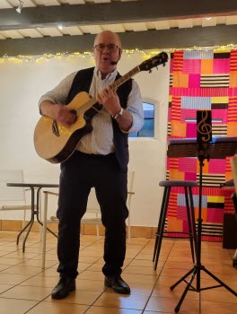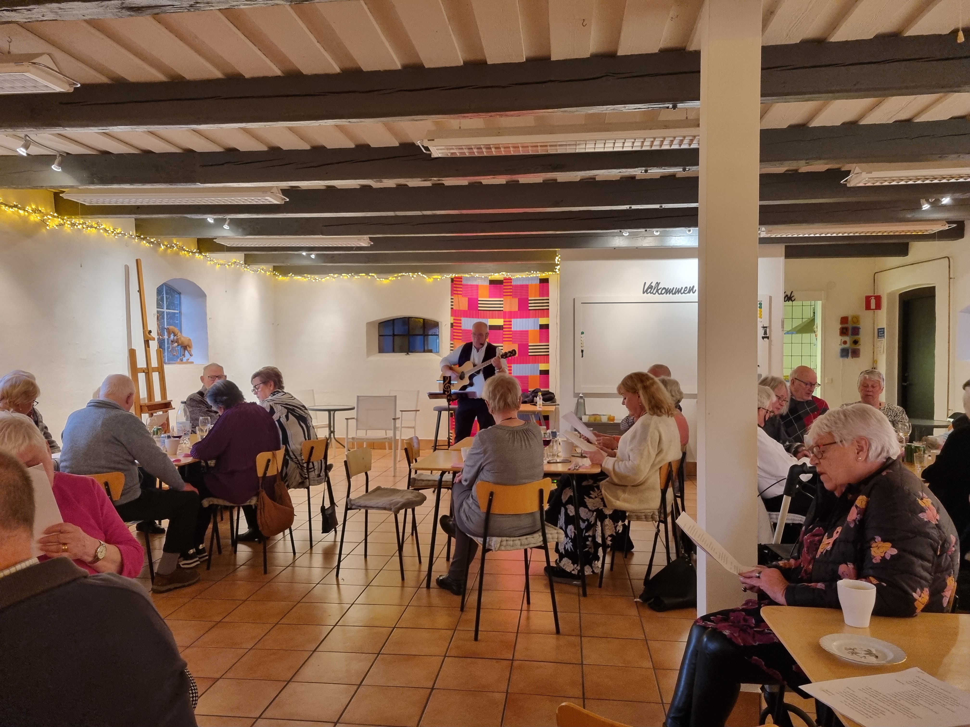 Den 18 mars serverades buffé, öl/vin, kaffe och kaka till självkostnadspris. När alla var mätta och nöjda var det dags för Birger Glader att underhålla med trevliga låtar. Publiken fick också vara med och sjunga... och vi var överens om att Glader var ett passande namn på vår trubadur!