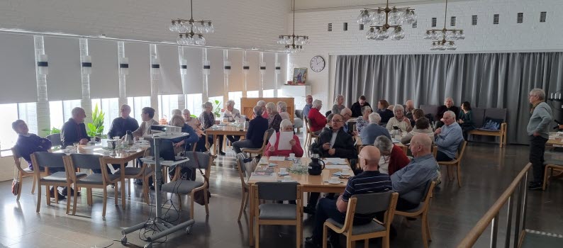 Det blev fullt i församlingshemmet när över 40 personer kom på årsmötet. Kanske var det de goda fastlagsbullarna eller att Bengt Wikström stod för musikunderhållningen som lockade? Hur som helst blev det ett bra årsmöte och en mumsig och trevlig eftermiddag.