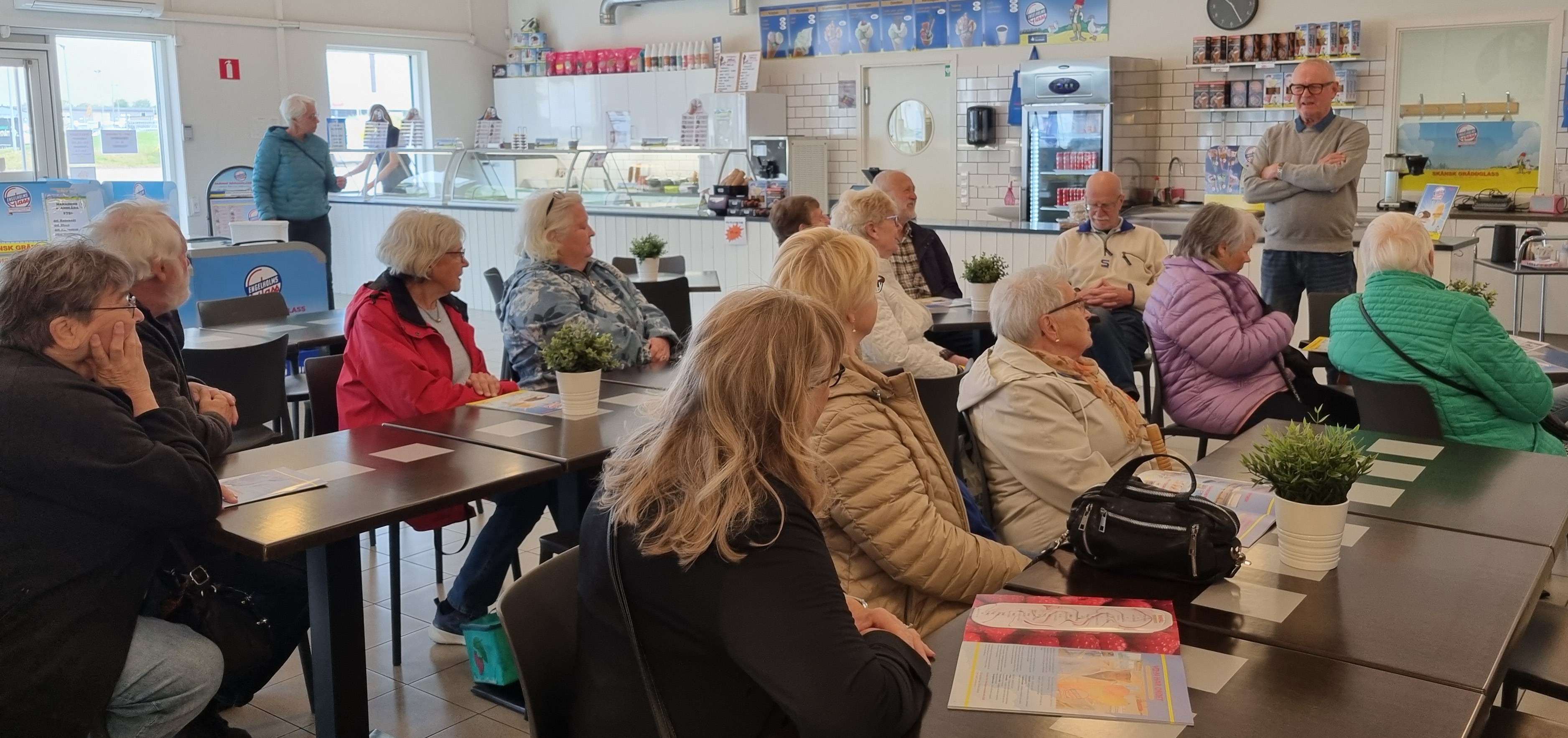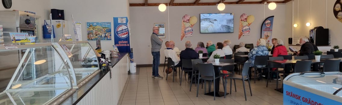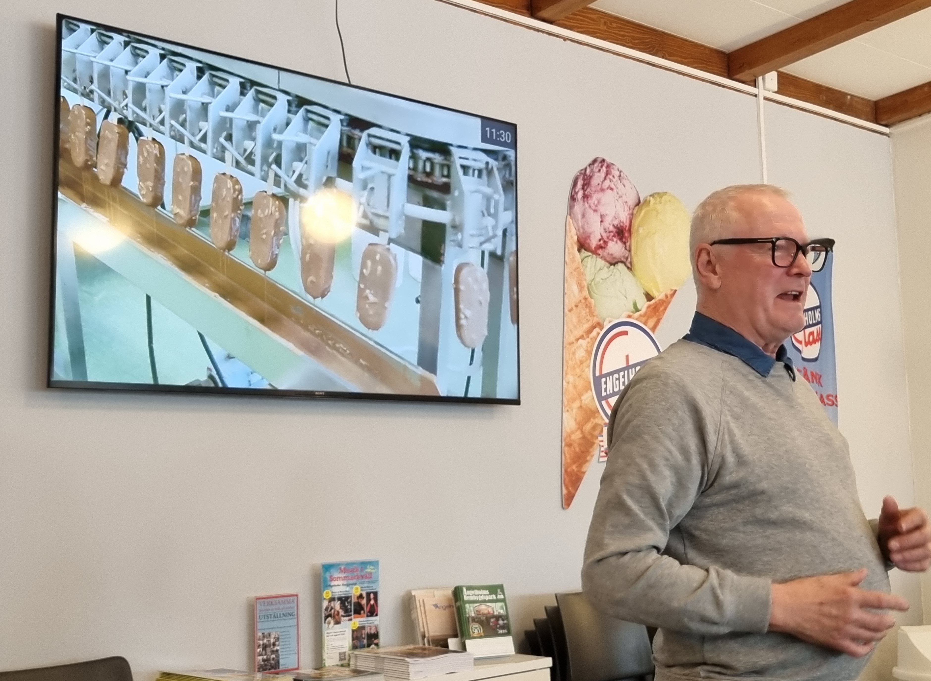 Vi som var med på studiebesöket till Engelholms Glass fick inte bara smaka på god glass. Vi fick också intressant information, trevligt framförd av VD:n Calle Gudmundsson.