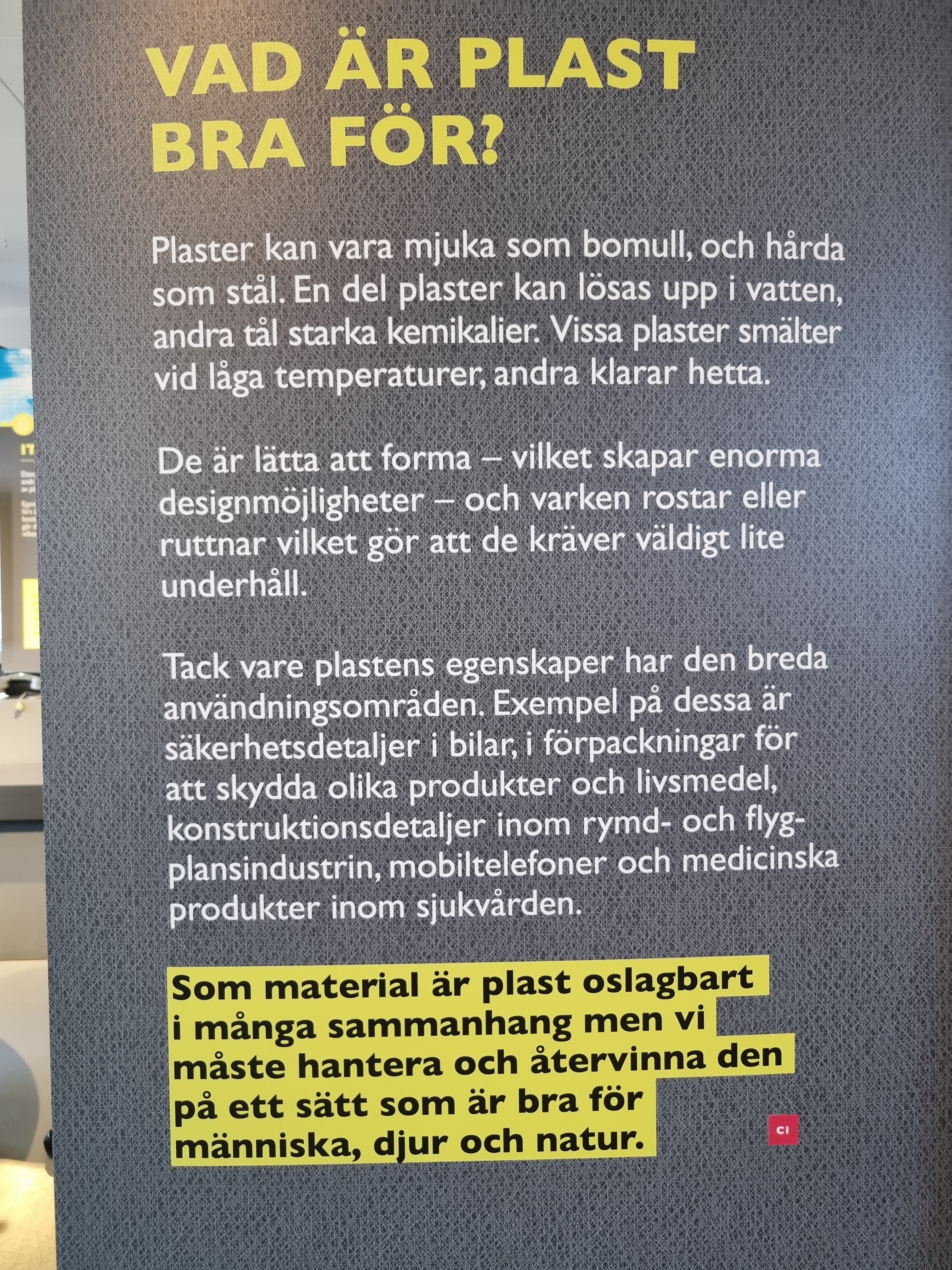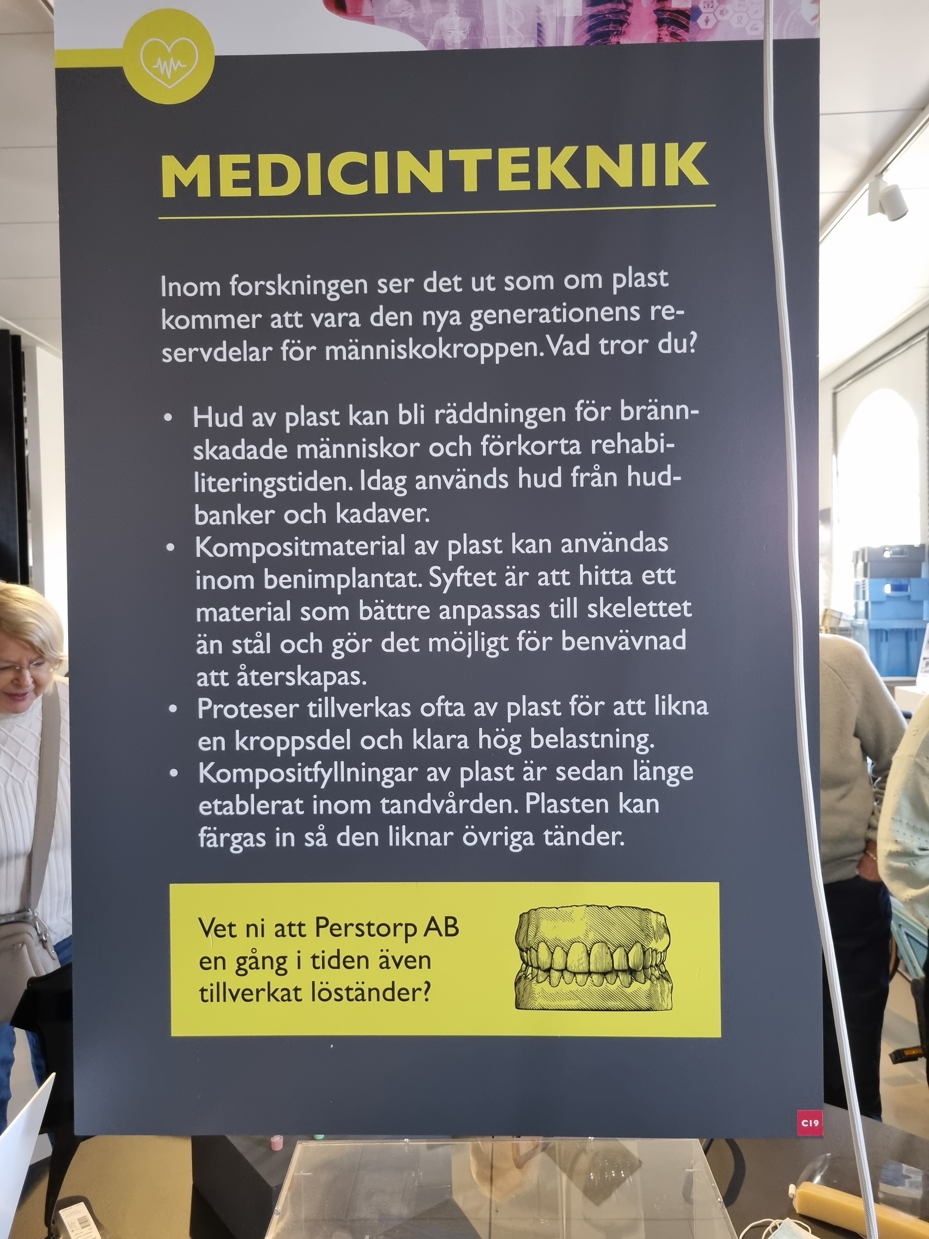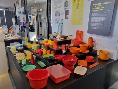 1918 uppfanns Isolit, som liknar bakelit, som bl a användes till telefoner och strömbrytare. Efter andra världskriget kom Perstorpsplattan, fabrik byggdes i Brasilien och på 70-talet blev företaget en storkoncern. En mängd produkter utvecklades... som vår guide Mats Olofsson berättade om och som du kan se på bilderna och läsa mera om på faktaspäckade skyltar.
