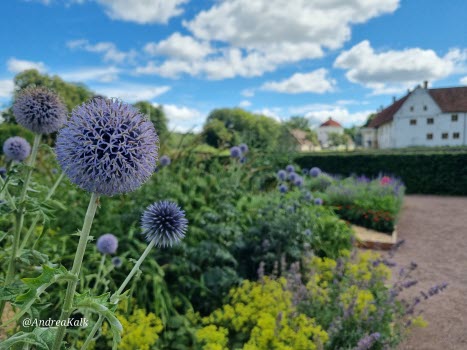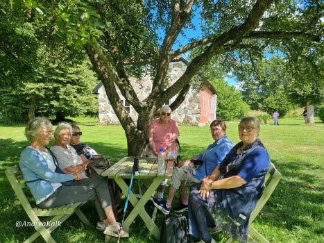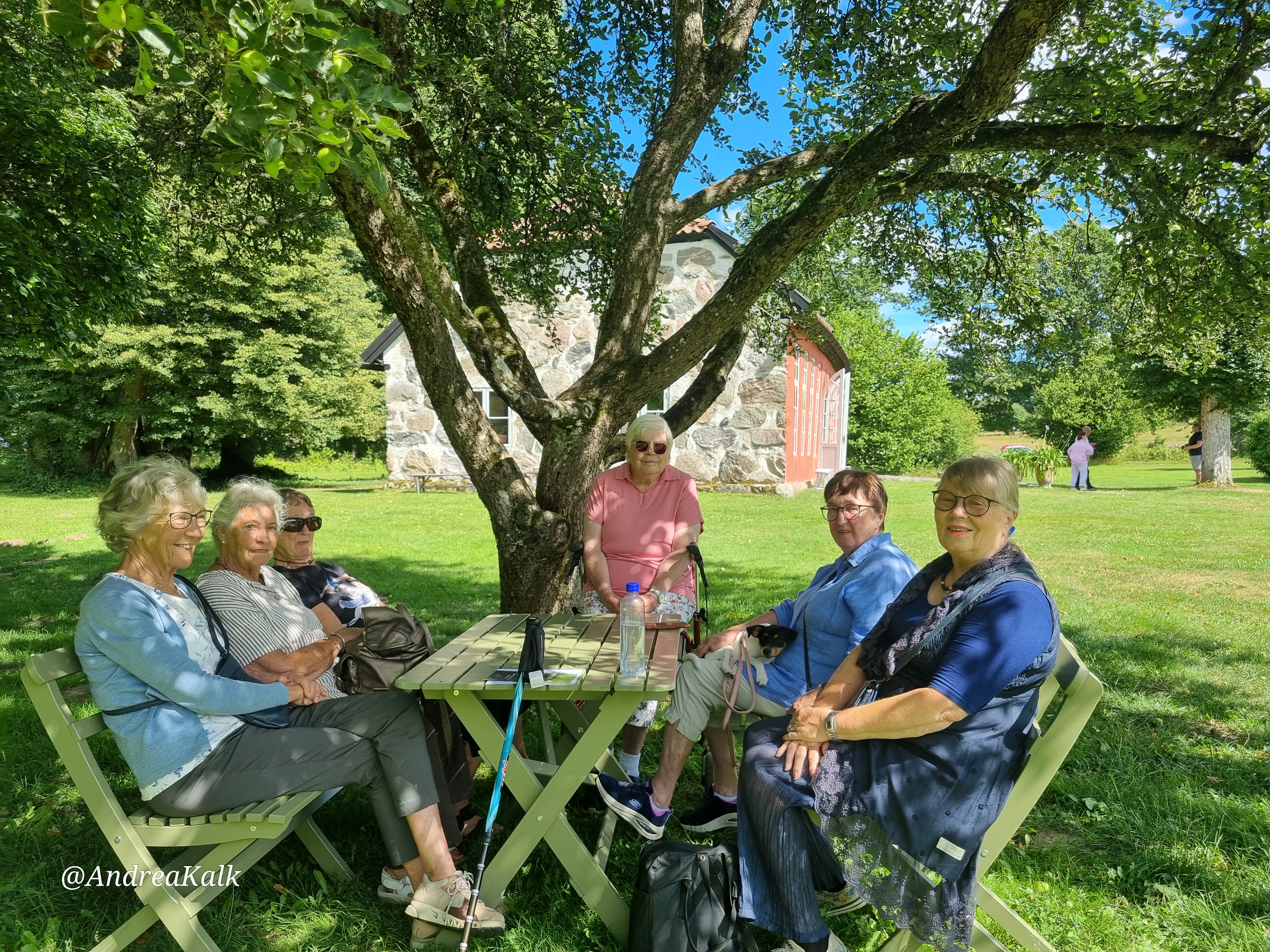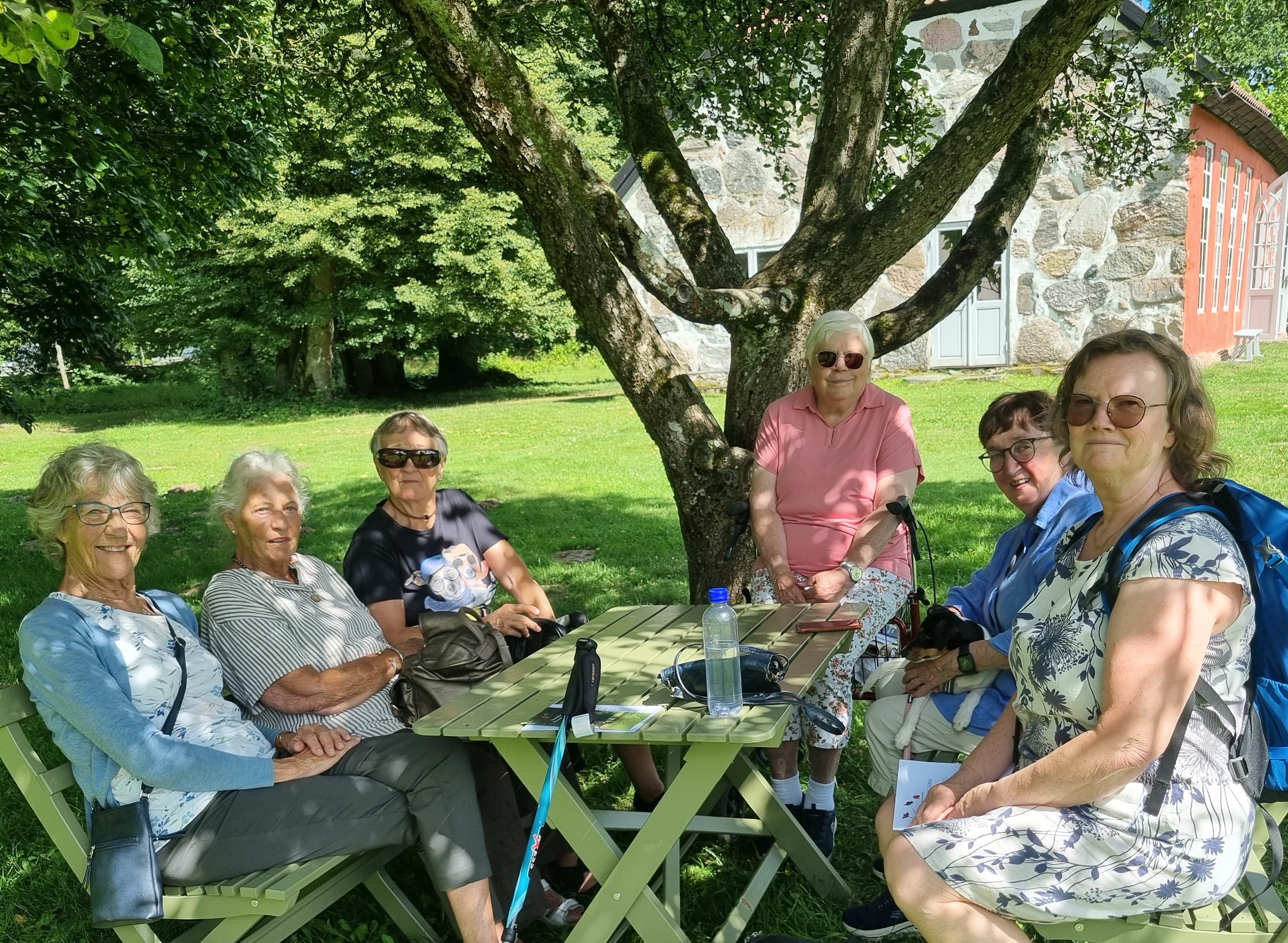 Den andra sommarutflykten 2025 gick till Hovdala Slott. Slottet har anor från 1500-talet och har en spännande historia. Vi utforskade slottsparken och beundrade de vackra stenbyggnaderna. Vi njöt en god lunch utomhus i det vackra vädret. Vi imponerades av köksträdgården och tittade in i orangeriet. Men allra trevligast var kanske den sista timmen då vi satt i skuggan, bredvid det sällsynta Pimpernöt-trädet. Mycket prat och skratt avslutade denna fina utflyktsdag.
