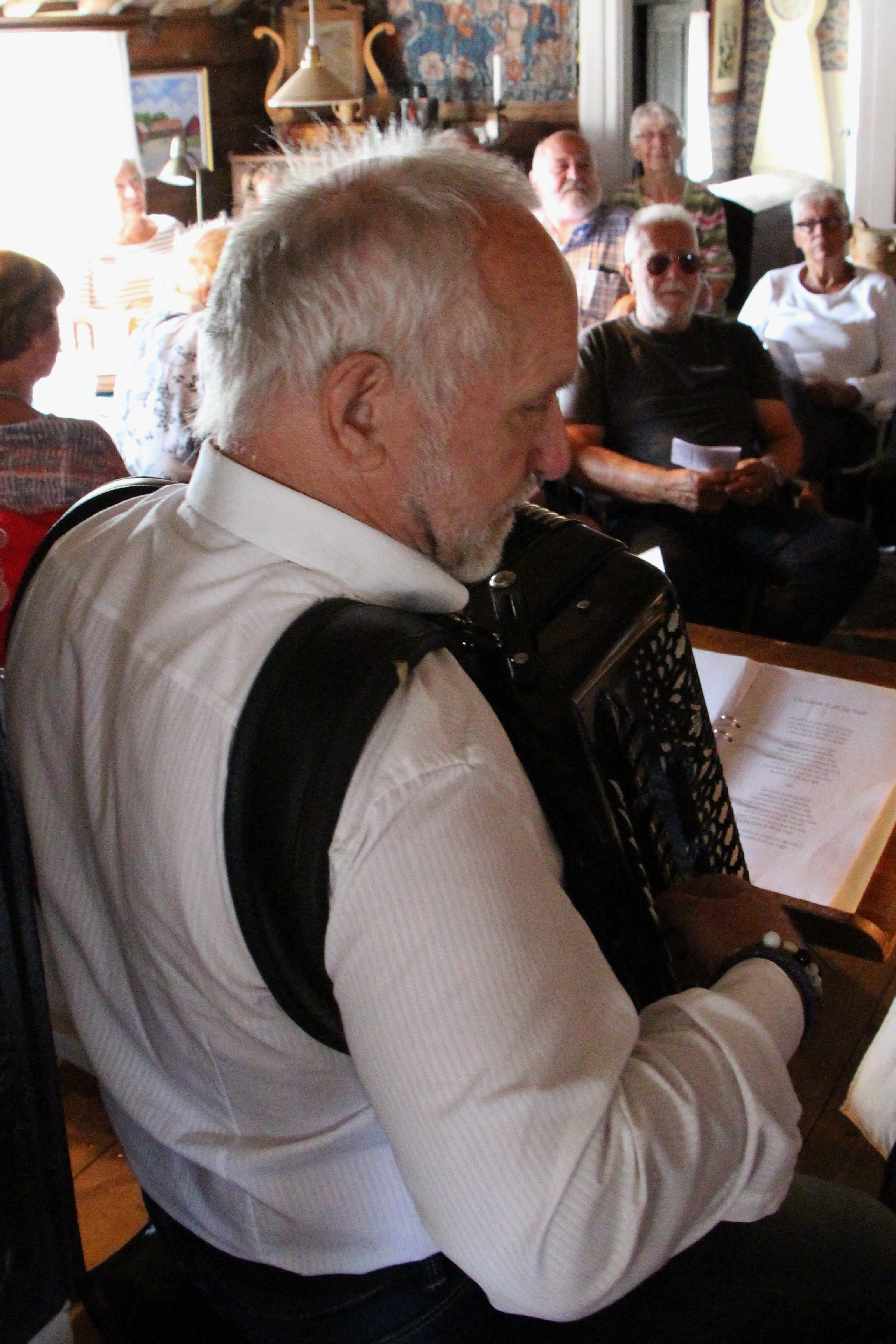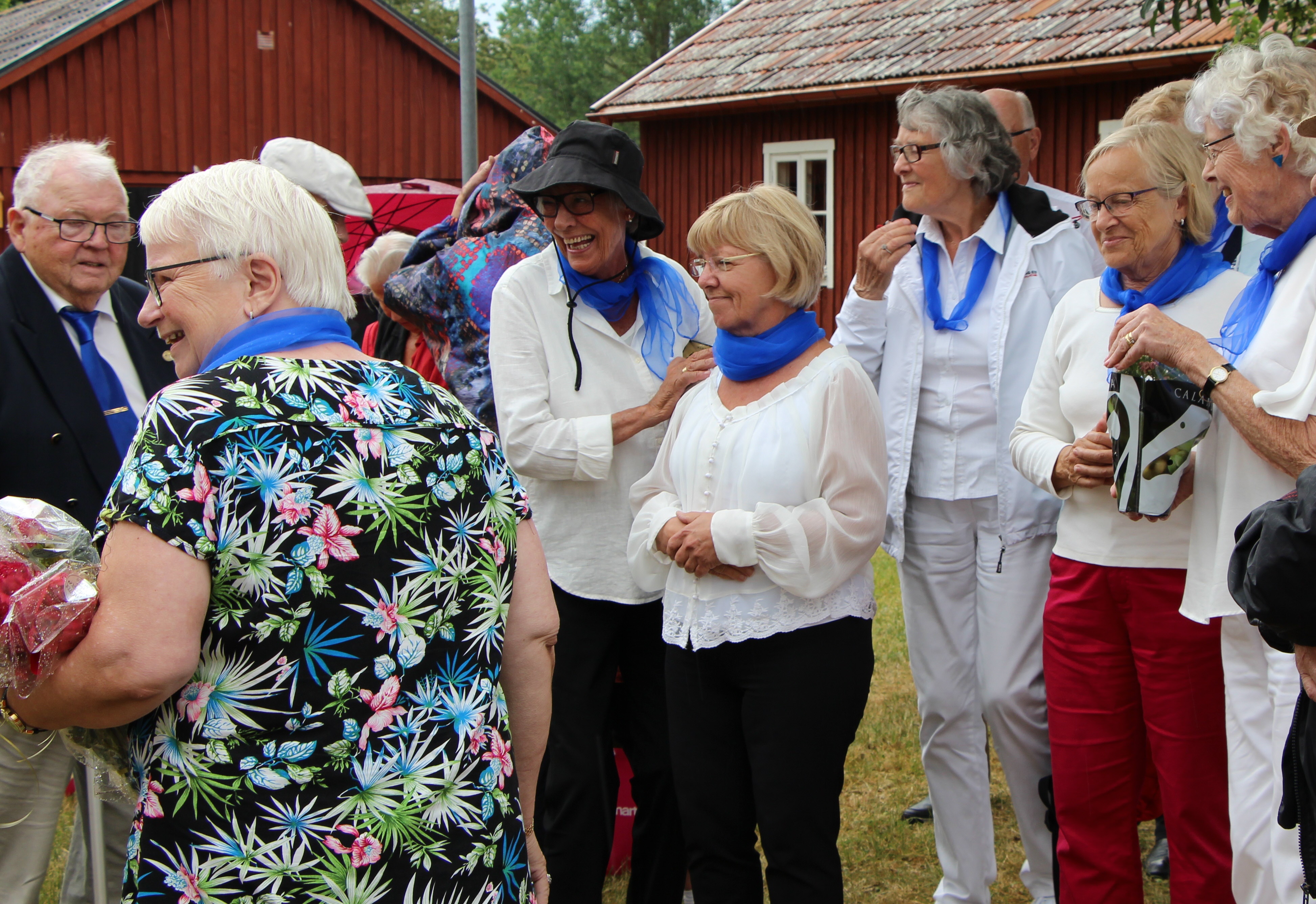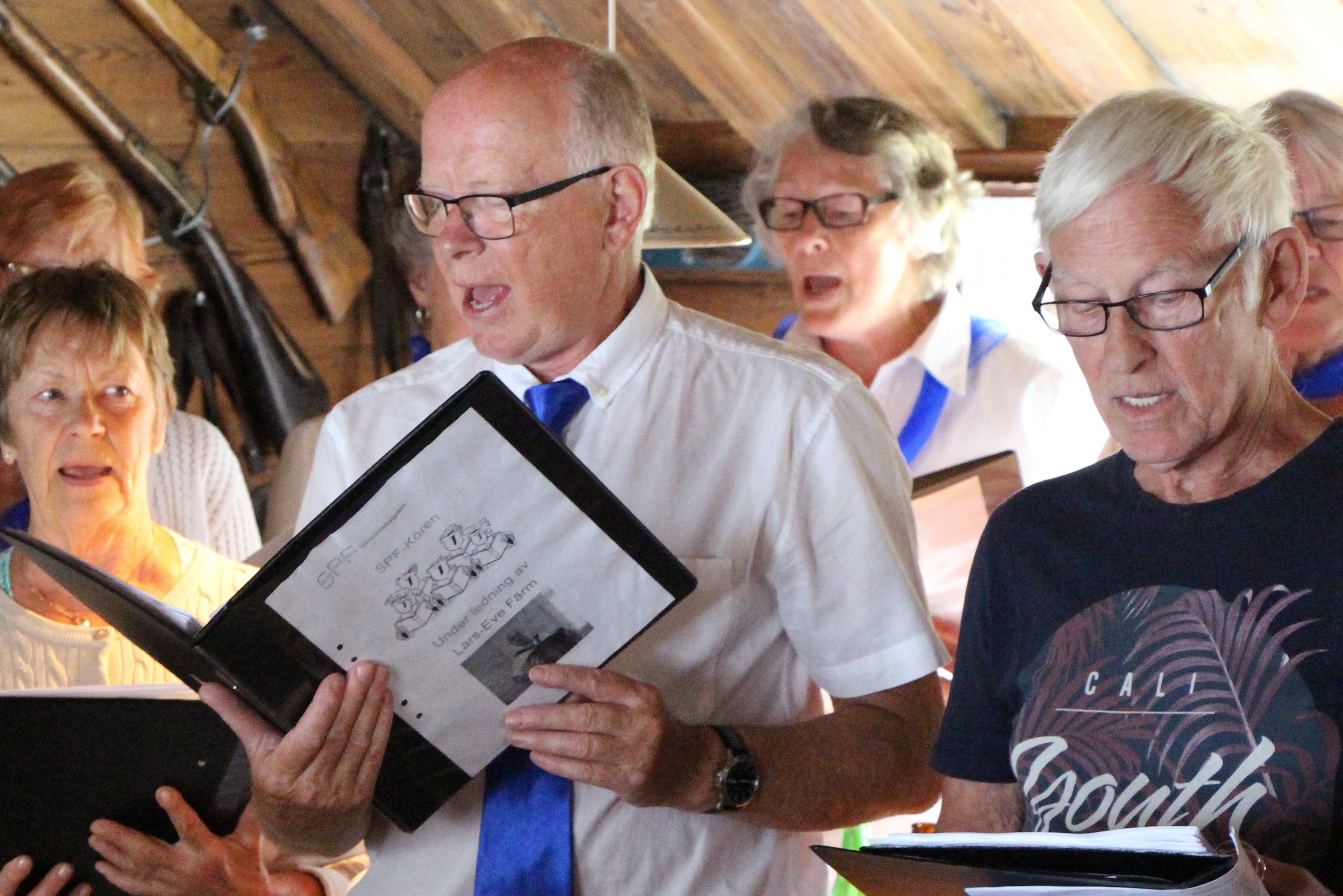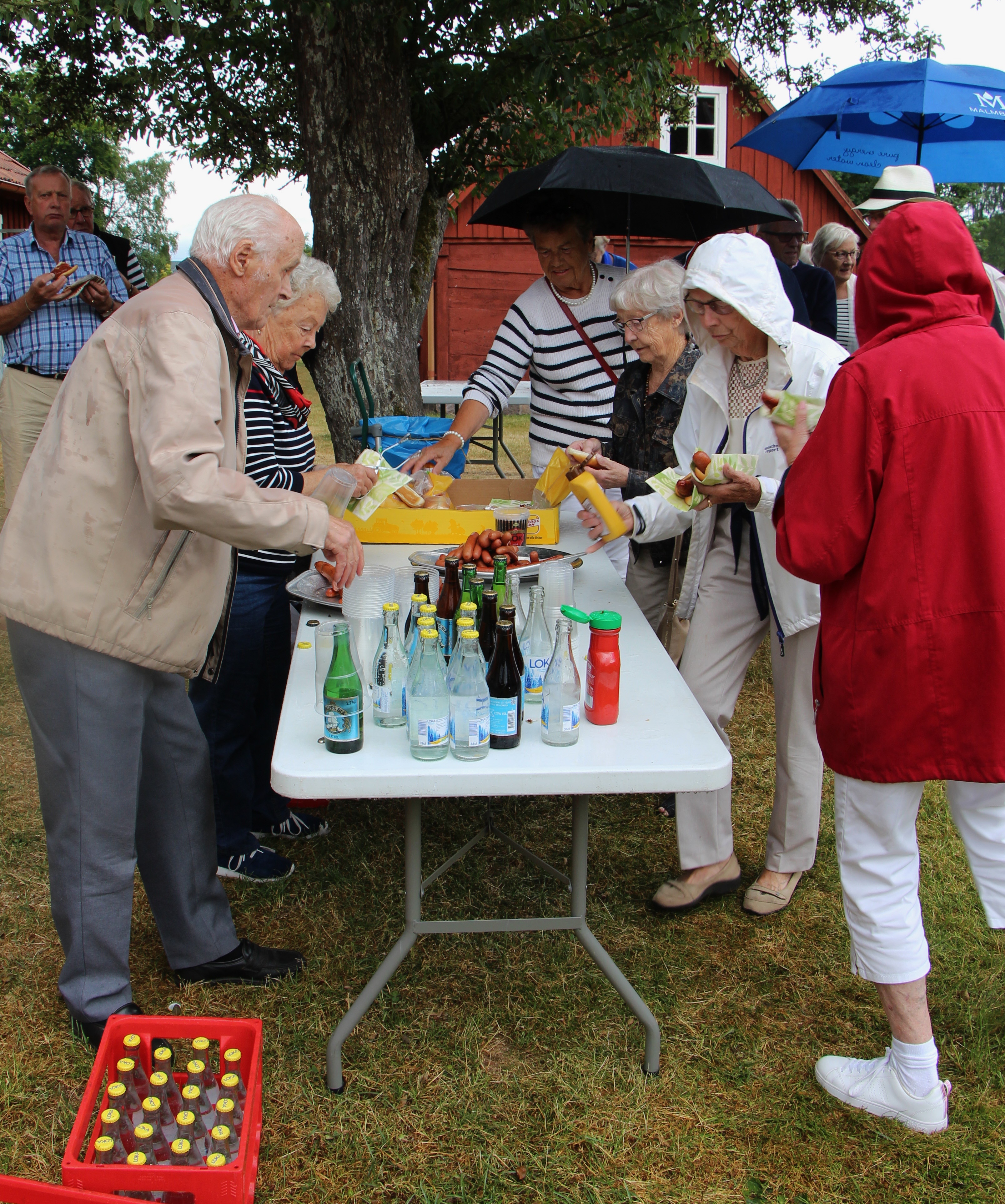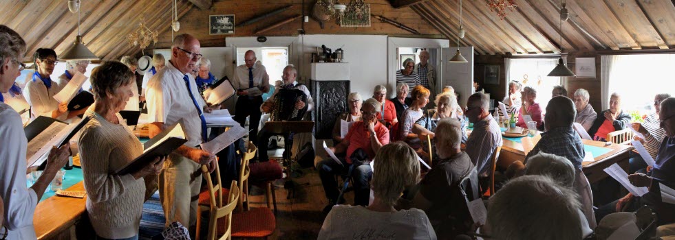 Terminsavslutning med korvgrillning och underhållning av SPF kören på Västergårda i Vinslöv den 10 juni. Majvädret och början av juni med klart solskensväder men just de timmarna vår avslutning skulle gå av stapeln kom regnet. Storstugan fick bli plats för vår skönsjungande kör. Mysigt och trivsamt!
