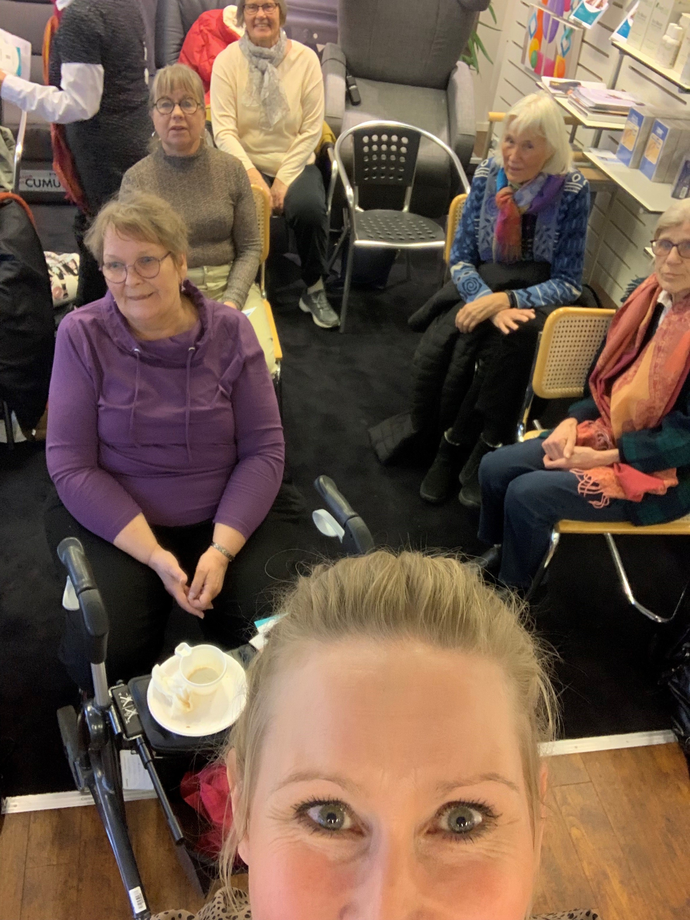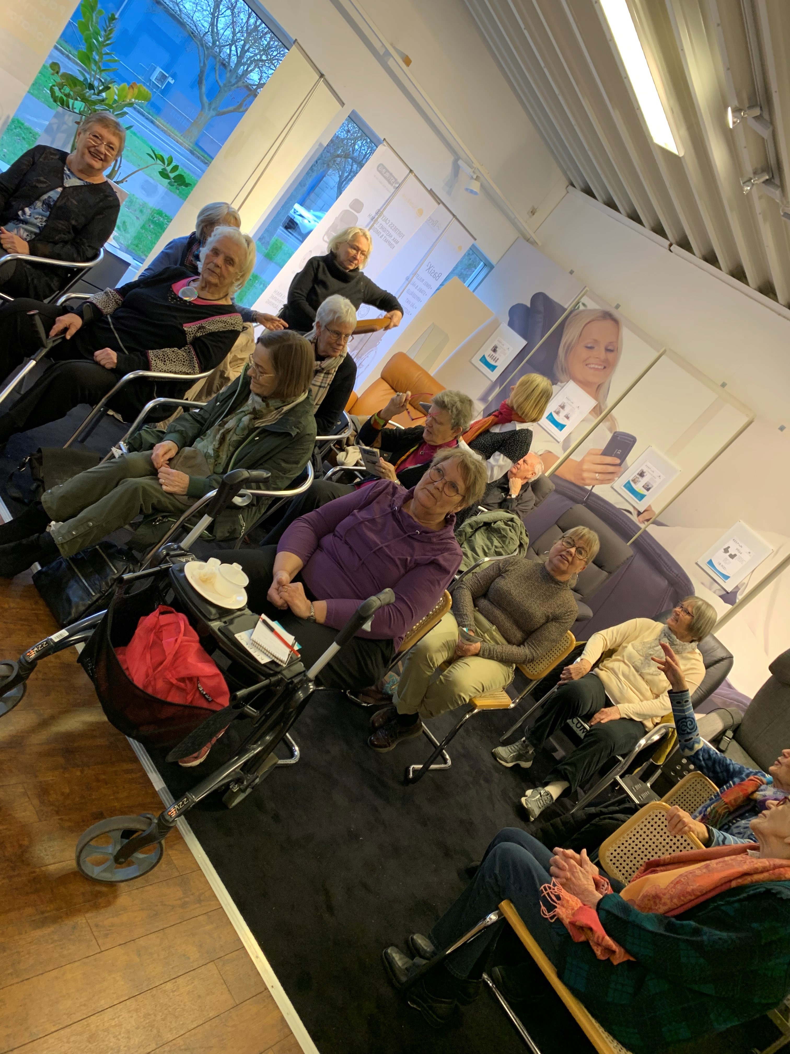 Tisdagen den 15 november gjorde Öppet Hus-deltagarna en utfärd till KeepOn Hjälpmedelsteknik i Kristianstad för att uppdatera oss om vilka nya hjälpmedel som finns den dagen vi kan behöva något. Besöket blev väldigt uppskattat och Elena på KeepOn visade oss många innovativa lösningar på såväl rollatorer, käppar, draglakan som övriga hjälpmedel som underlättar i vardagen. Besöket avslutades med en lätt lunch på Café Boulevard, innan Sydbuss tog oss tillbaks till Ystad. Bilderna har Elena tagit.
