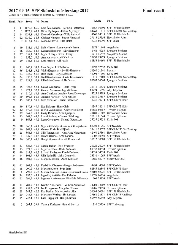 När SPF Seniorerna 159 Hässleholm med hjälp av Hässleholms bridgeklubb för tredje gången på fyra år arrangerade DM, blev det åter hemmavinst! NU finns fullständig resultatlista.