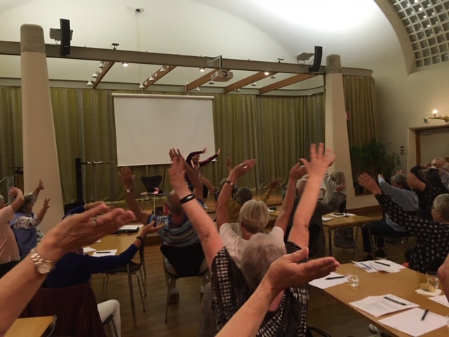 Sandra Olsson, projektledare i dans, berättade om dansens gynnsamma effekter och hur dans kan användas i olika sammanhang för ökat välmående. Deltagarna fick även prova på lite rörelser som en uppvärmning för dagen.