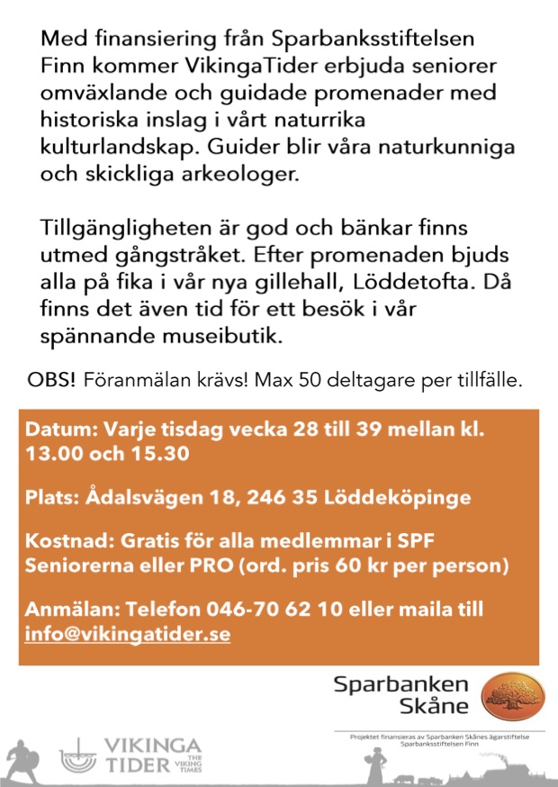 Det kom ett trevligt tips på guidade kåserivandringar i kultur och natur för seniorer, anordnad av VikingaTider. Det är i Löddeköpinge varje tisdag eftermiddag under hela sommaren. Vandringarna är kostnadsfria för medlemmar i SPF men man måste föranmäla sig. Läs mer i inbjudan nedan!