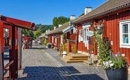 Efter besöket på museet ska vi se på de små röda stugorna i Smedbyn som ursprungligen byggdes för arbete åt Husqvarna Fabriken, innan de blev bostäder