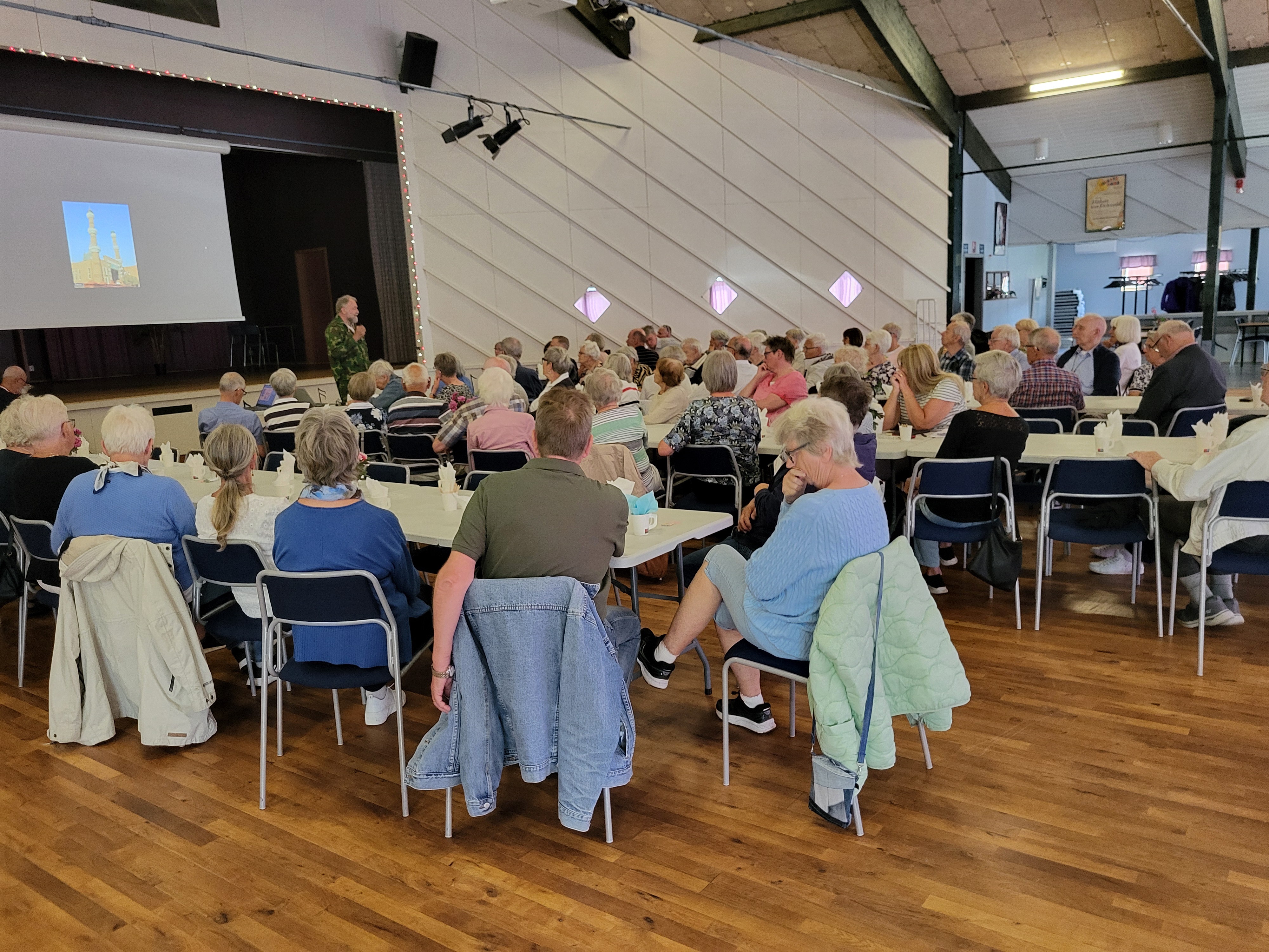 SPF Falköpings månadsträff för juni samlade nästan 70 medlemmar i Folkets Park. Roland Nilsson hälsade välkommen och vände sig speciellt till Tomas Eklund och Gunnar Kronenberg. Tomas berättade om att han gärna tar emot frågor kring butikernas olika tillgänglighet för seniorer och andra relevanta konsumentfrågor som han sen avser ta upp med handeln ifråga. Därefter var det Gunnars tur att berätta om sin och några kamraters resa på motorcykel genom Kina för några år sedan. Det var en fascinerande berättelse om hur de färdades utmed den c: a 2000 år gamla ”Sidenvägen” och alla fantastiska sevärdheter de stötte på utmed vägen. Han beskrev även de enorma strapatser de fick genomgå med hetta och krånglande motorer. Med hjälp av mycket vänliga och välvilligt inställda kineser lyckades de oftast på något finurligt sätt hitta en lösning så att de kunde åka vidare. Språket och oftast total avsaknad av vägskyltar gjorde färden ännu mer osäker och spännande. Vi fick höra en levande berättelse som kompletterades av ett stort antal fina bilder från resan.